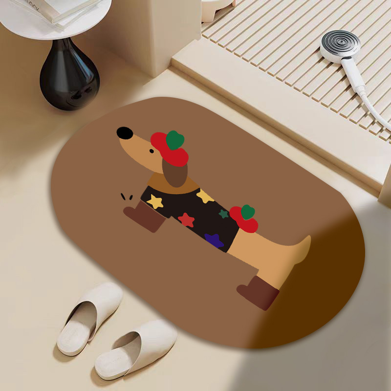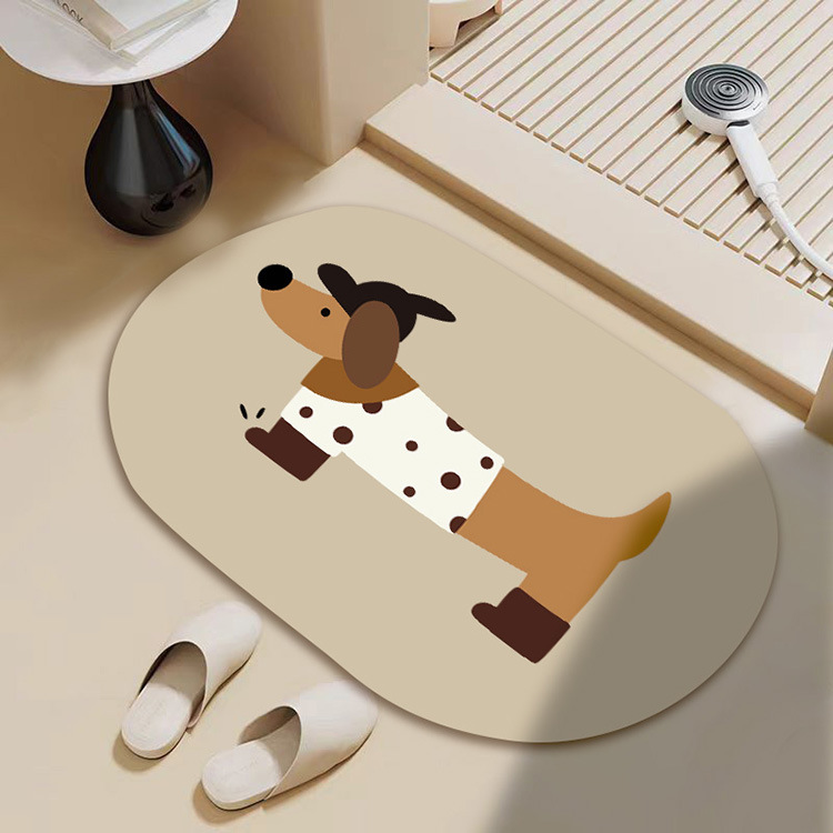 Dachshund 욕실 바닥 매트 Diatom 진흙 Upholered 매트 강한 흡수성 비 슬립 빠른 건조 실리콘 화장실 문 먼지 방지스토어 가기
