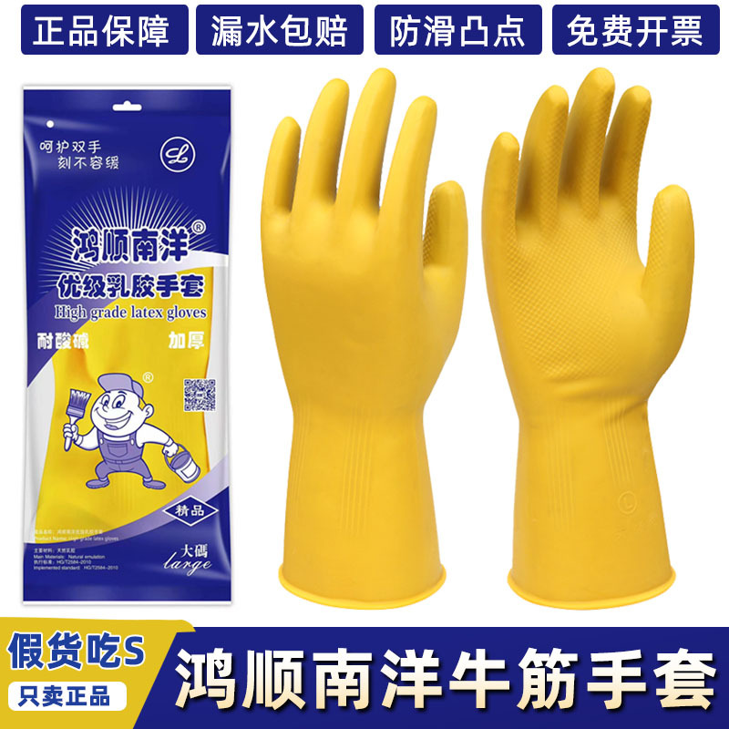 홍순 난양 두꺼운 고무 가죽 쇠고기 텐돈 라텍스 장갑 방수 미끄럼 가정용 접시 세척 노동 보호 가정용 장갑