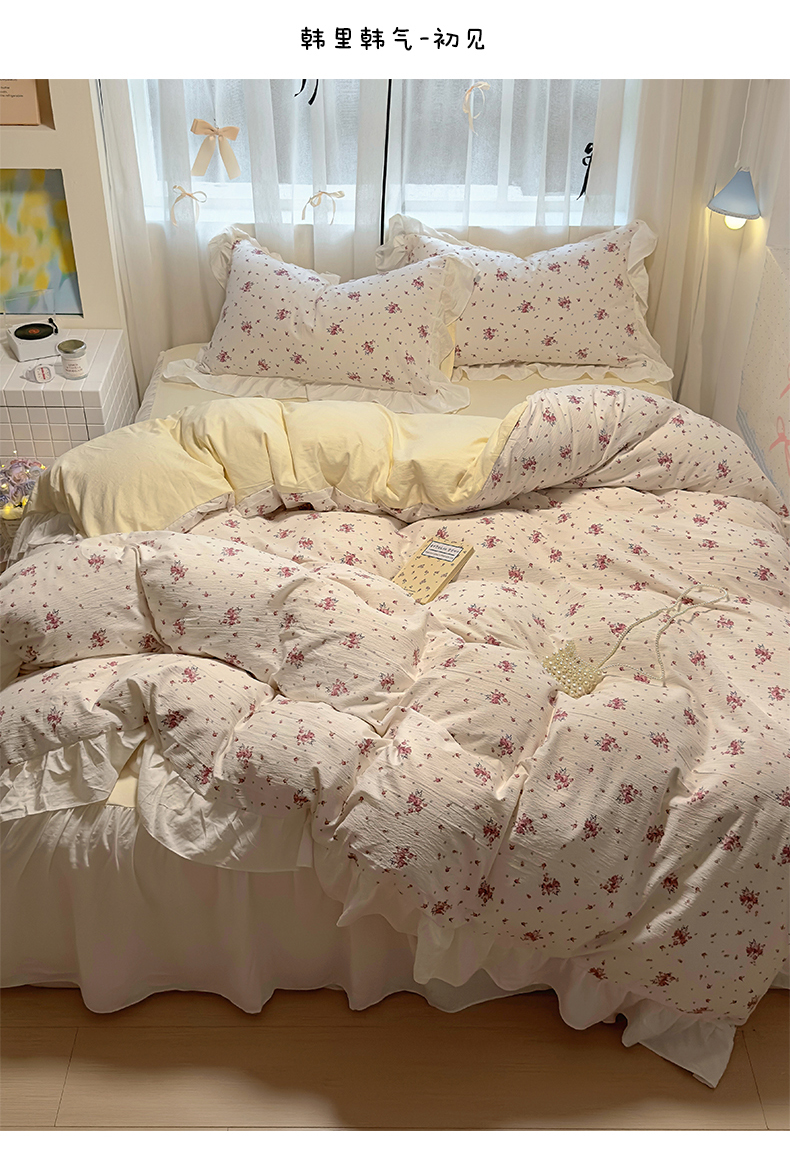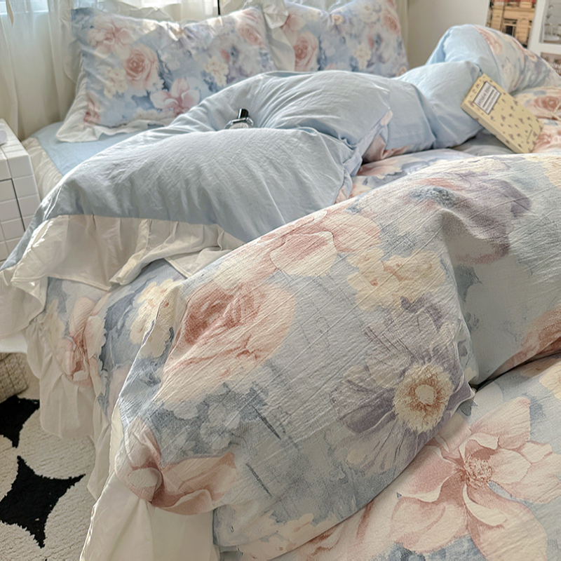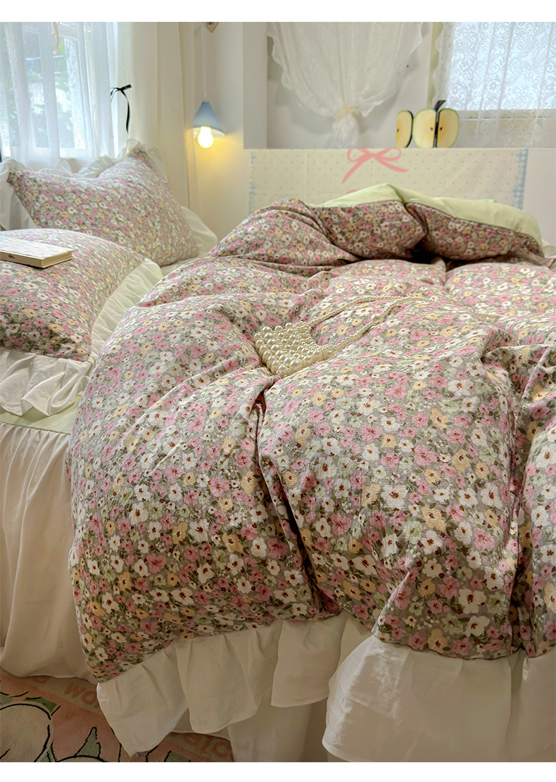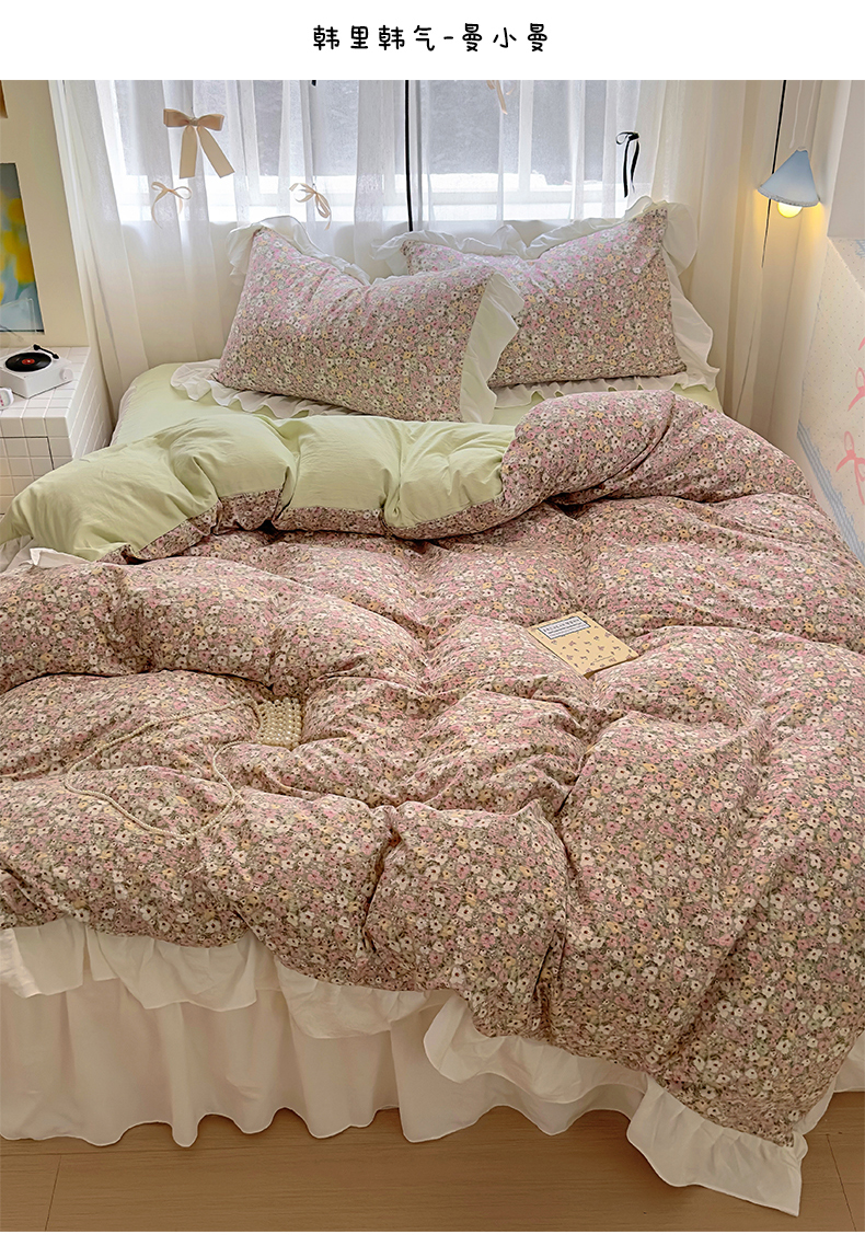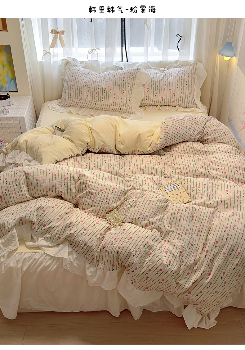 • Hanli Hanqi-Pink Mist Sea [슈퍼 소프트 워싱 코튼 한국 레이스 디자인]