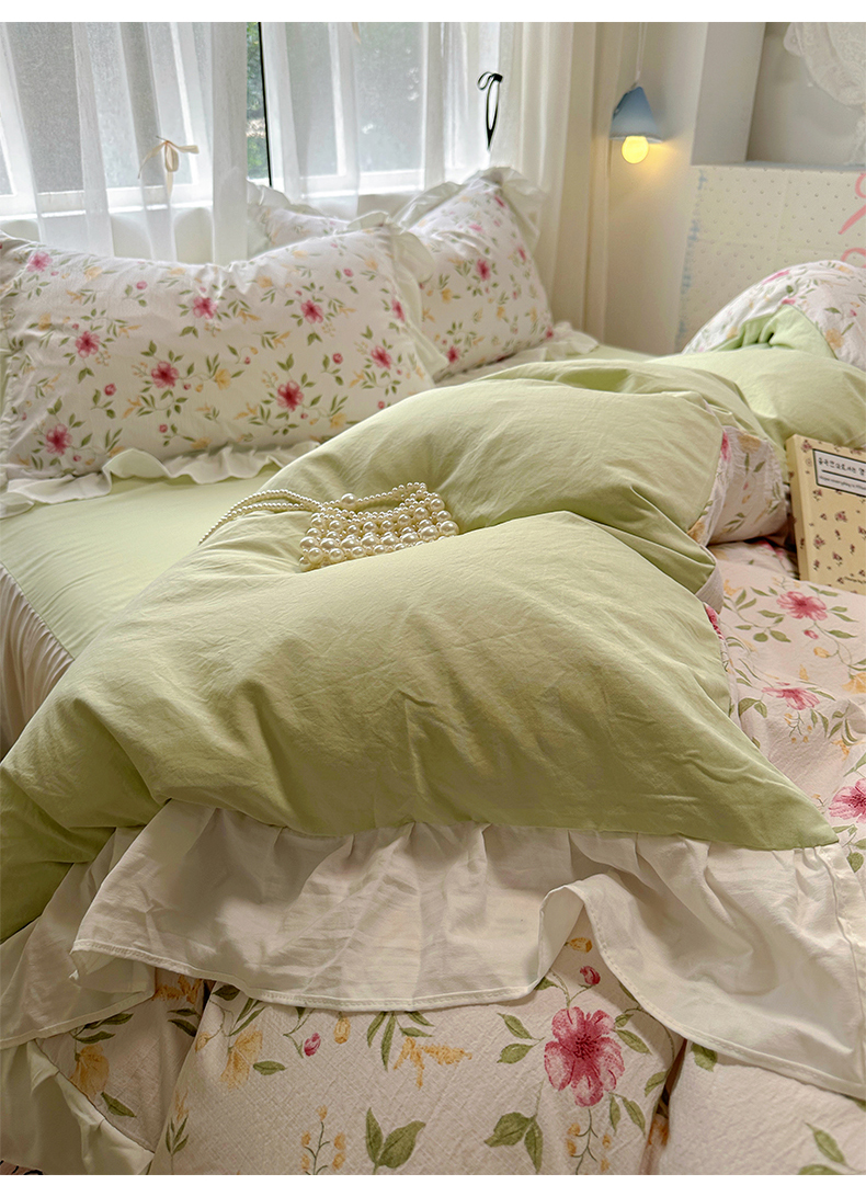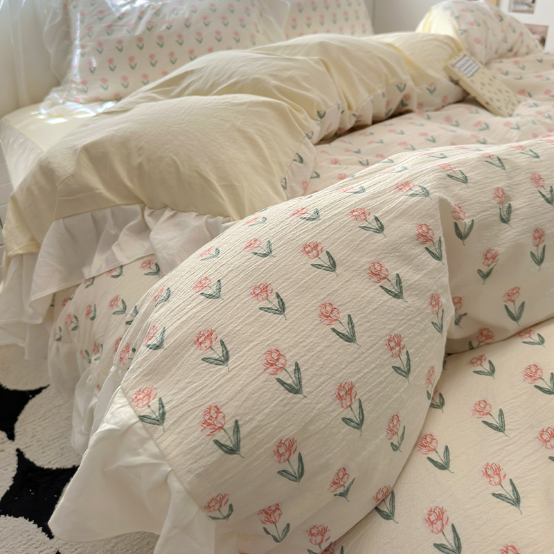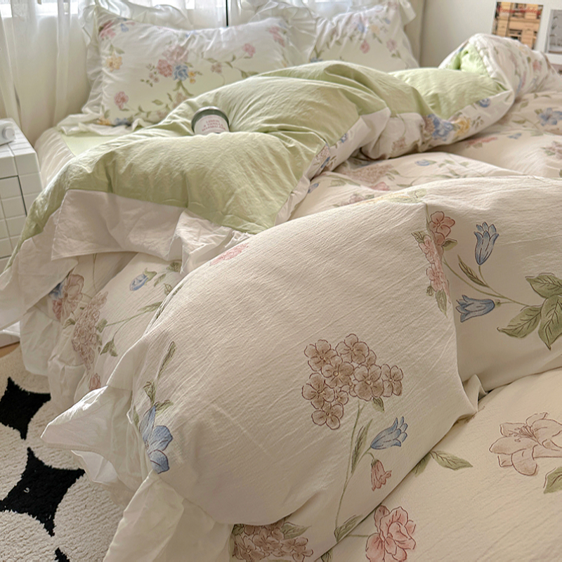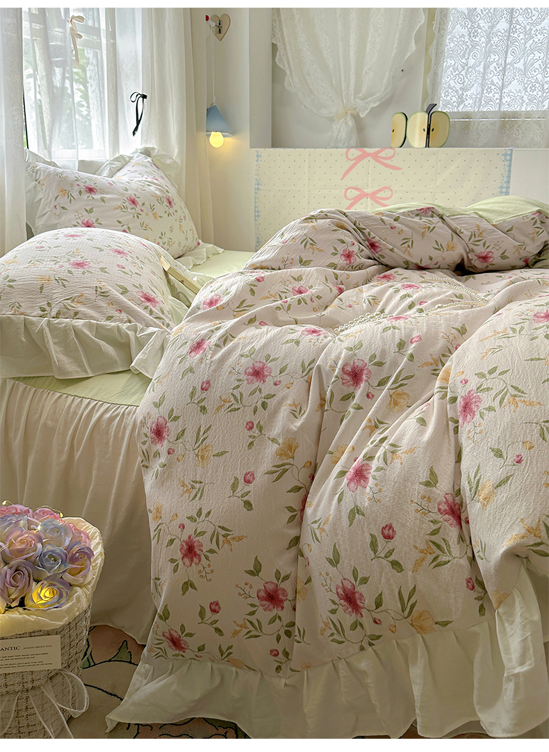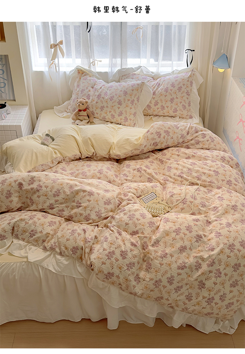 • Hanli Hanqi-Pink Mist Sea [슈퍼 소프트 워싱 코튼 한국 레이스 디자인]