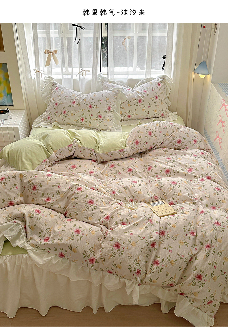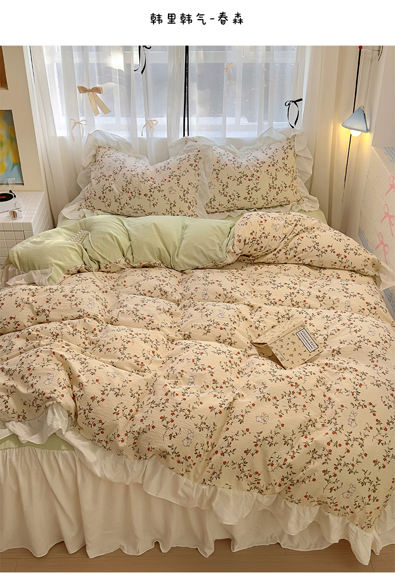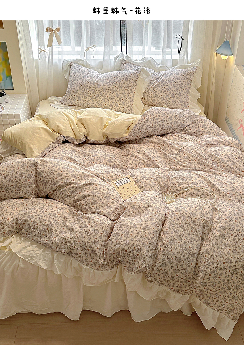 공주 스타일 침구 4 피스 세트 2024 새로운 코튼 이불 커버 침대 시트 소녀의 침대 스커트 3 피스 세트스토어 가기
