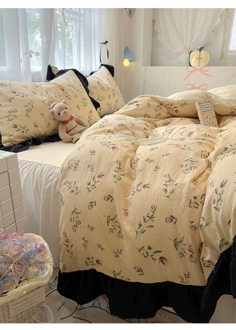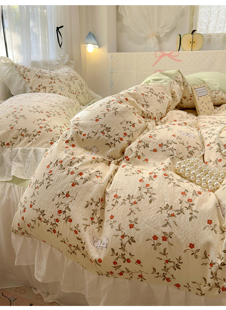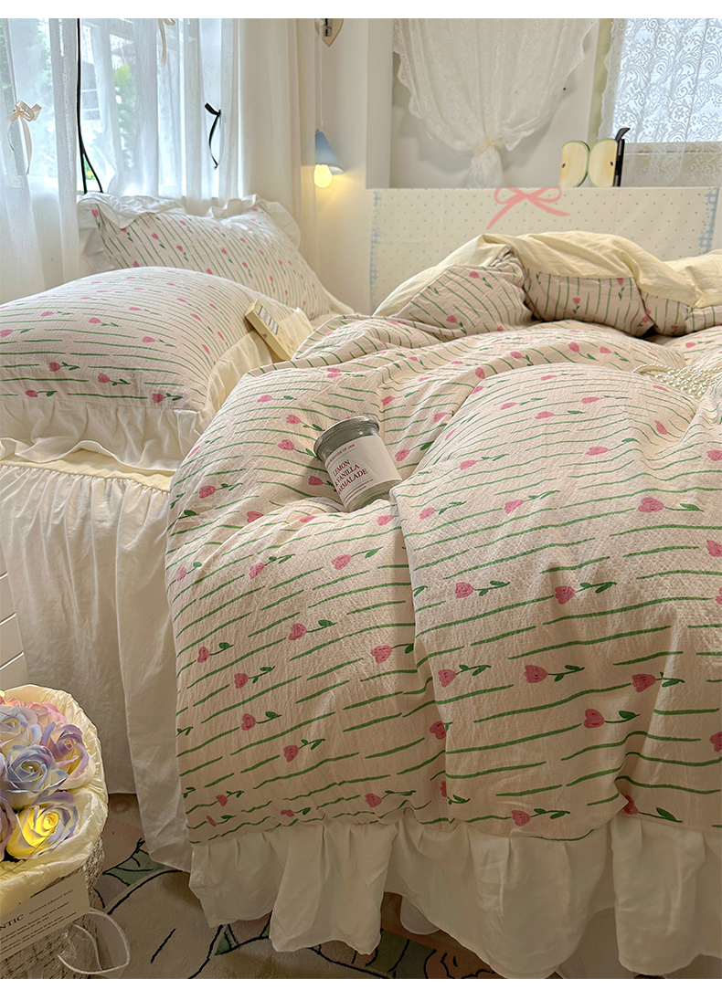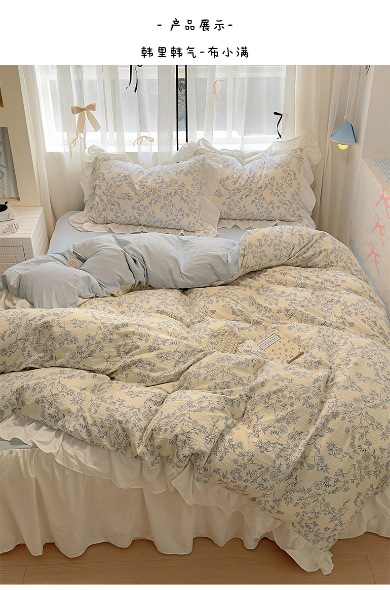공주 스타일 침구 4 피스 세트 2024 새로운 코튼 이불 커버 침대 시트 소녀의 침대 스커트 3 피스 세트스토어 가기