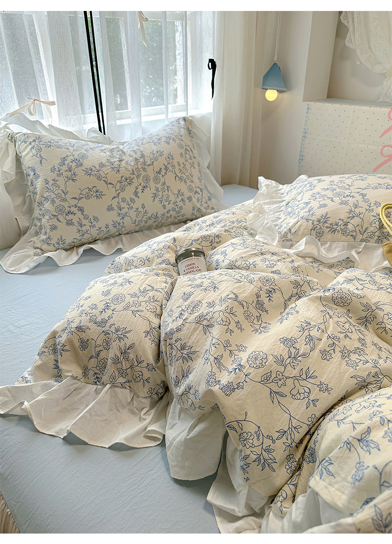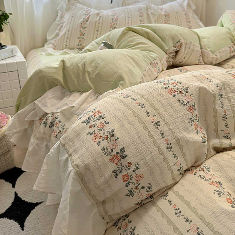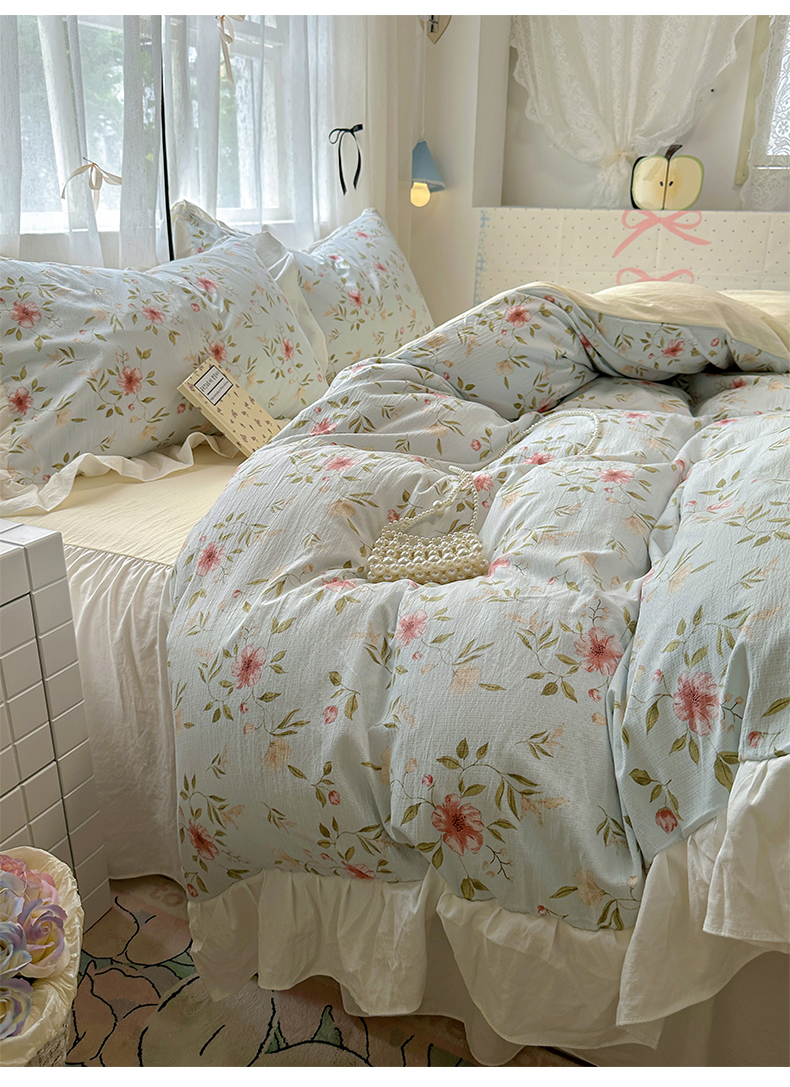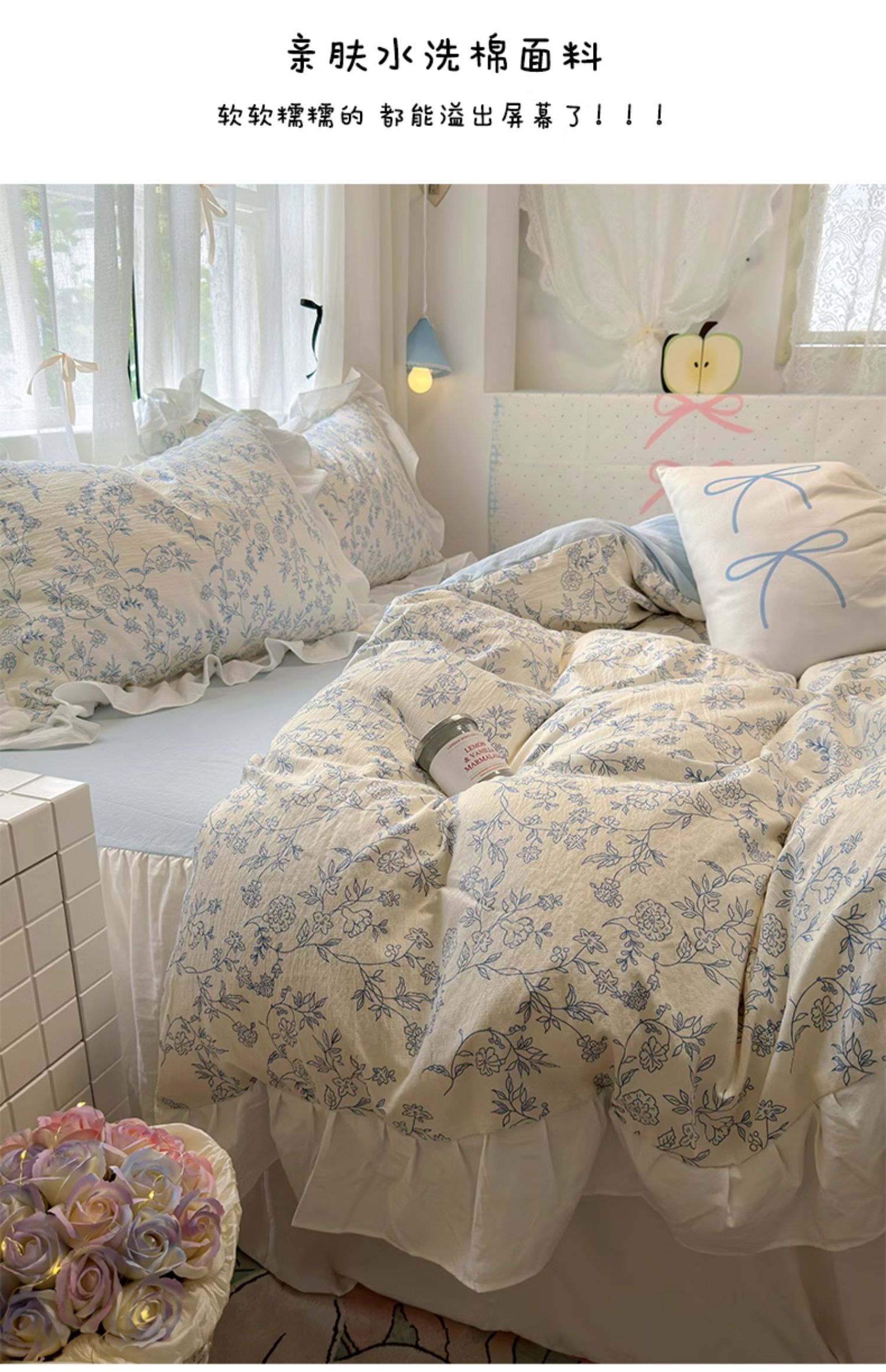 공주 스타일 침구 4 피스 세트 2024 새로운 코튼 이불 커버 침대 시트 소녀의 침대 스커트 3 피스 세트