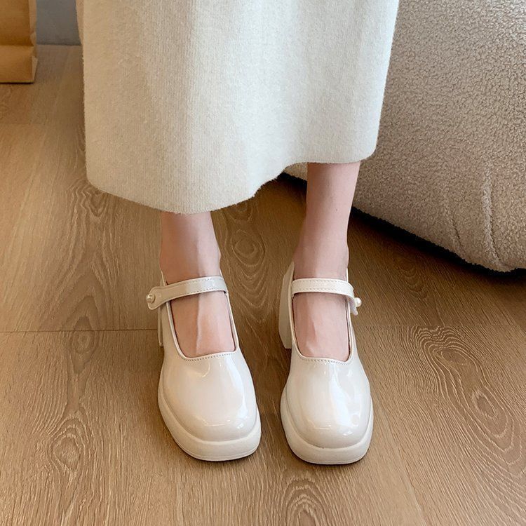 작은 샤넬 스타일 우아한 메리 제인 신발 프랑스 순수한 욕망 스타일 싱글 버튼 신발 올매치 젠틀 얕은 입 청키 힐 하이힐 신발스토어 가기