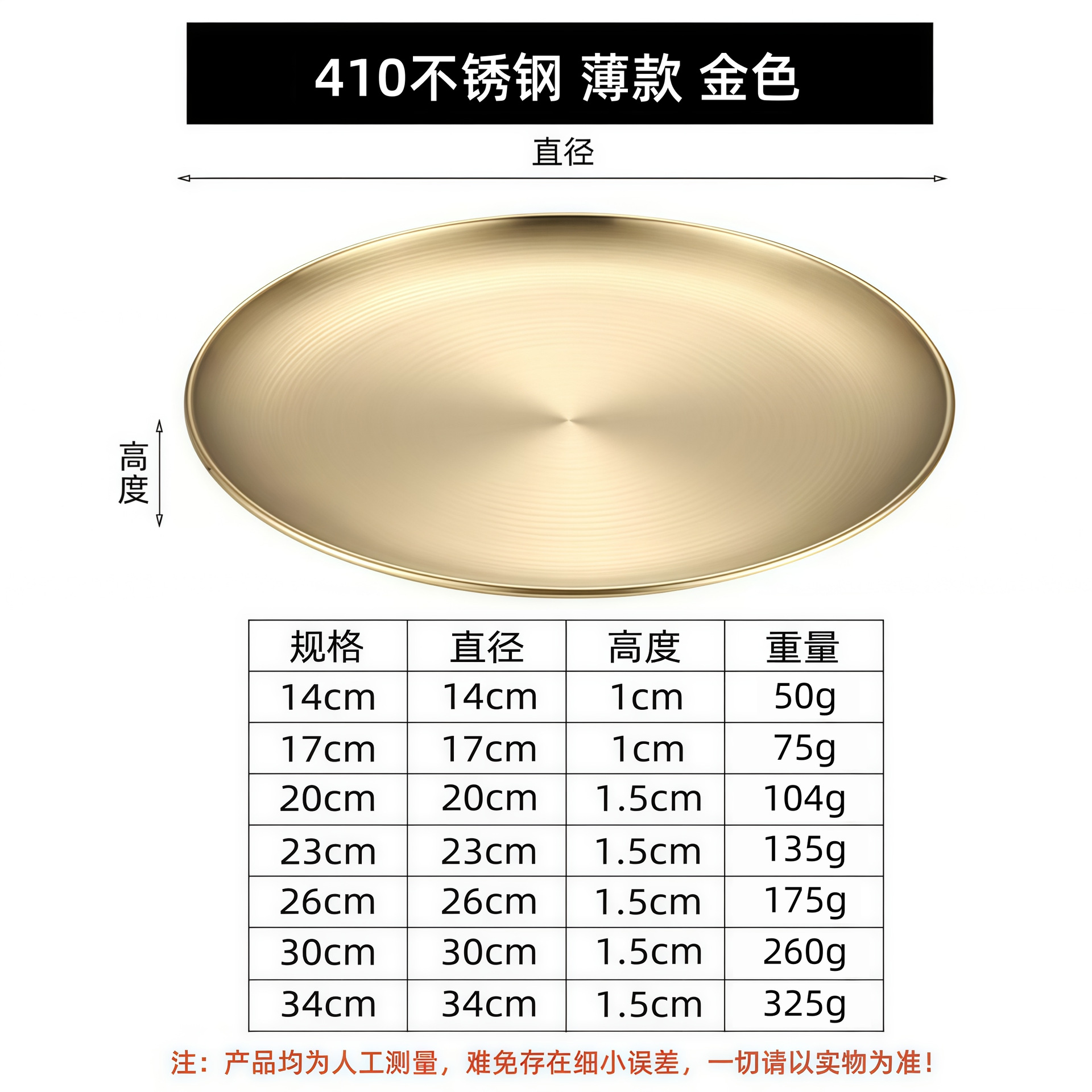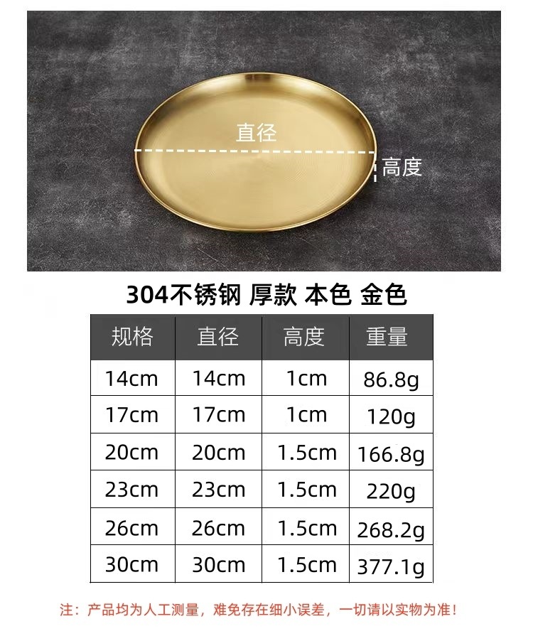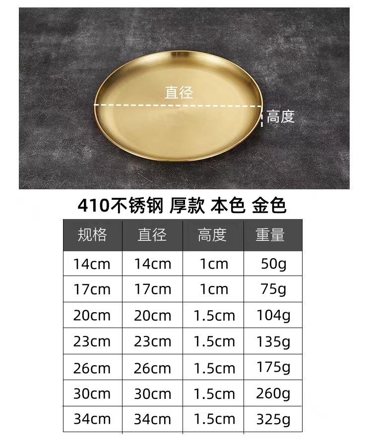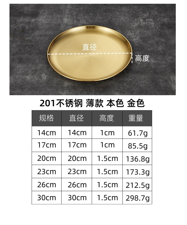 한국 스타일 304 스테인레스 스틸 골든 디스크 두꺼운 트레이 과일 플레이트 케이크 플레이트 상업용 뼈 플레이트 바베큐 플레이트 얕은스토어 가기