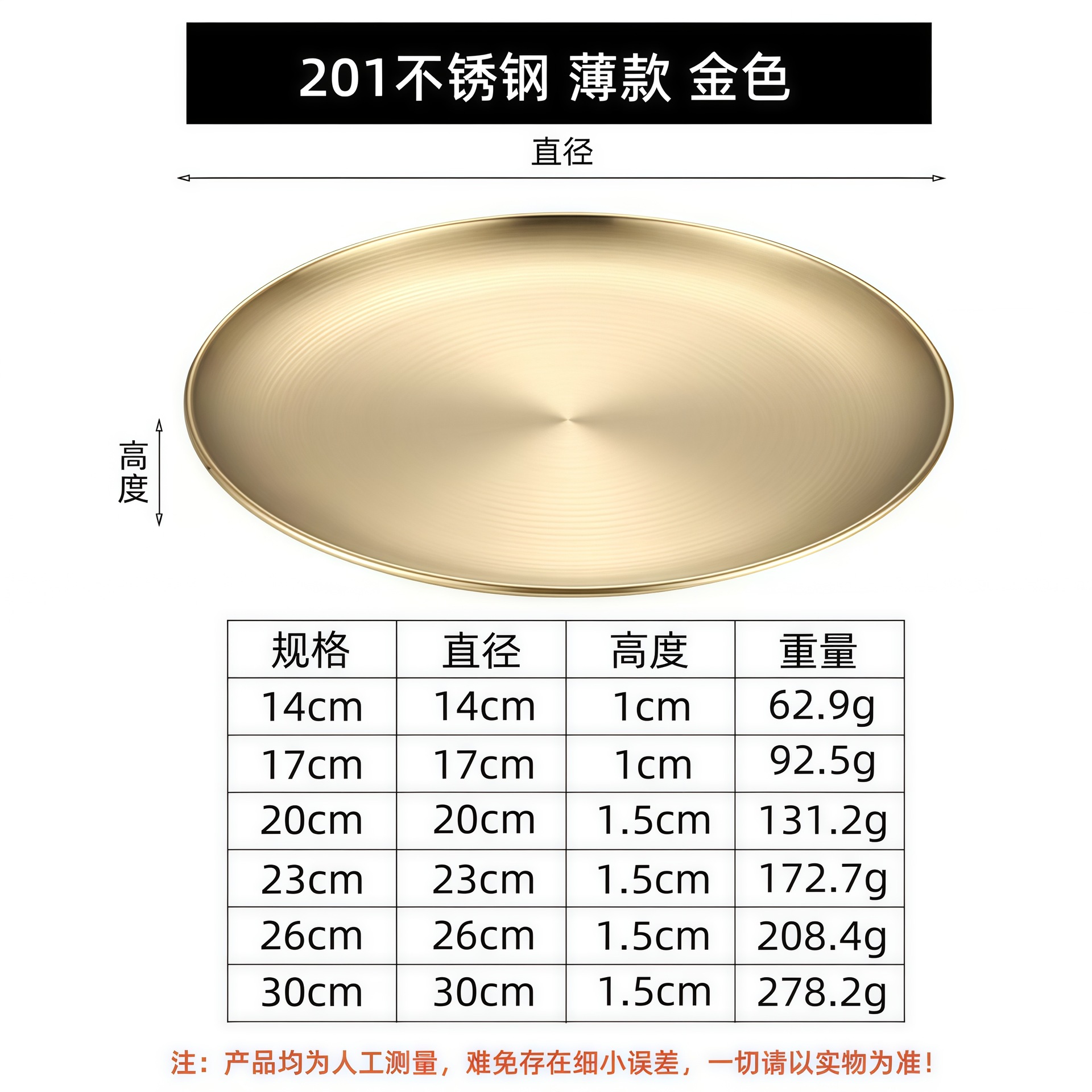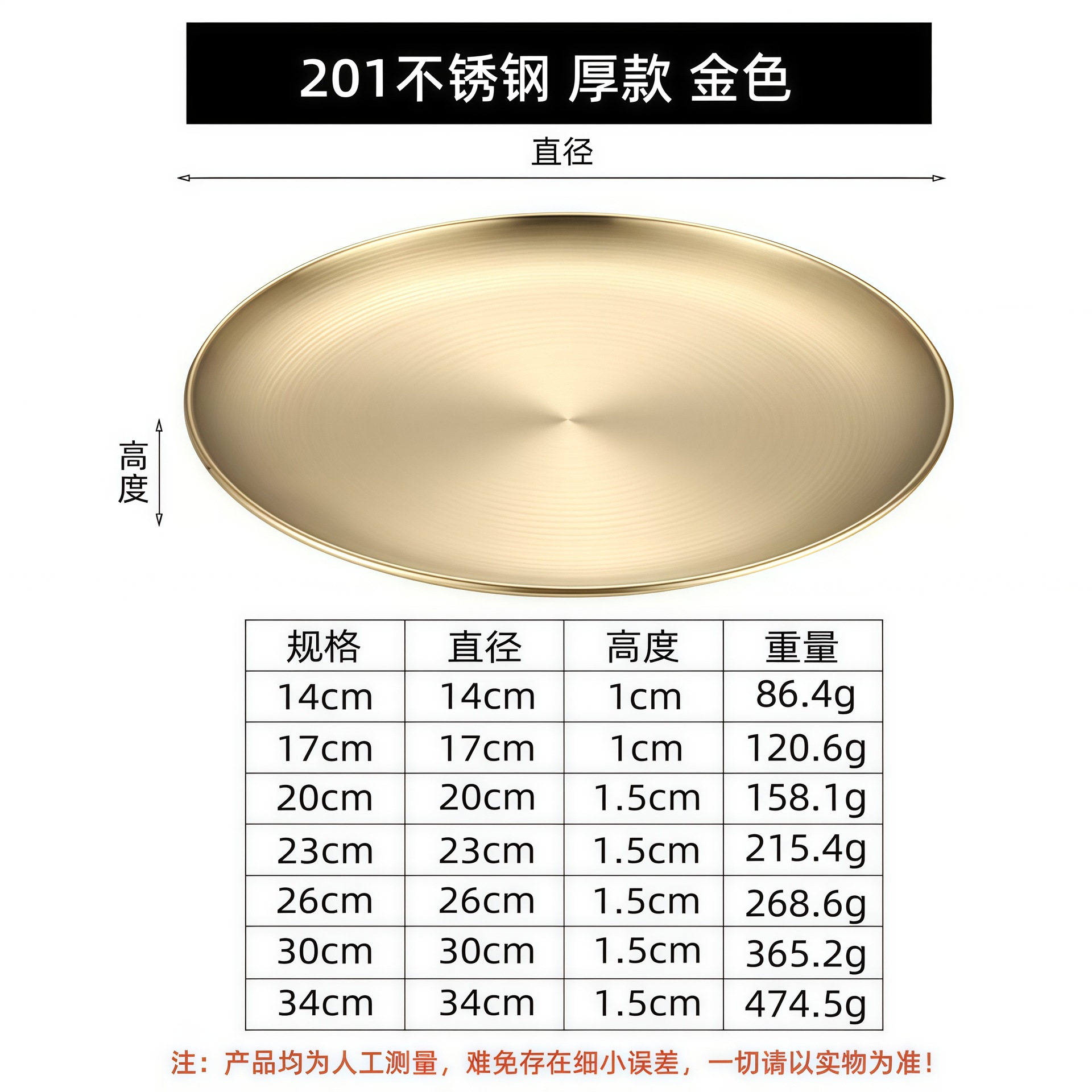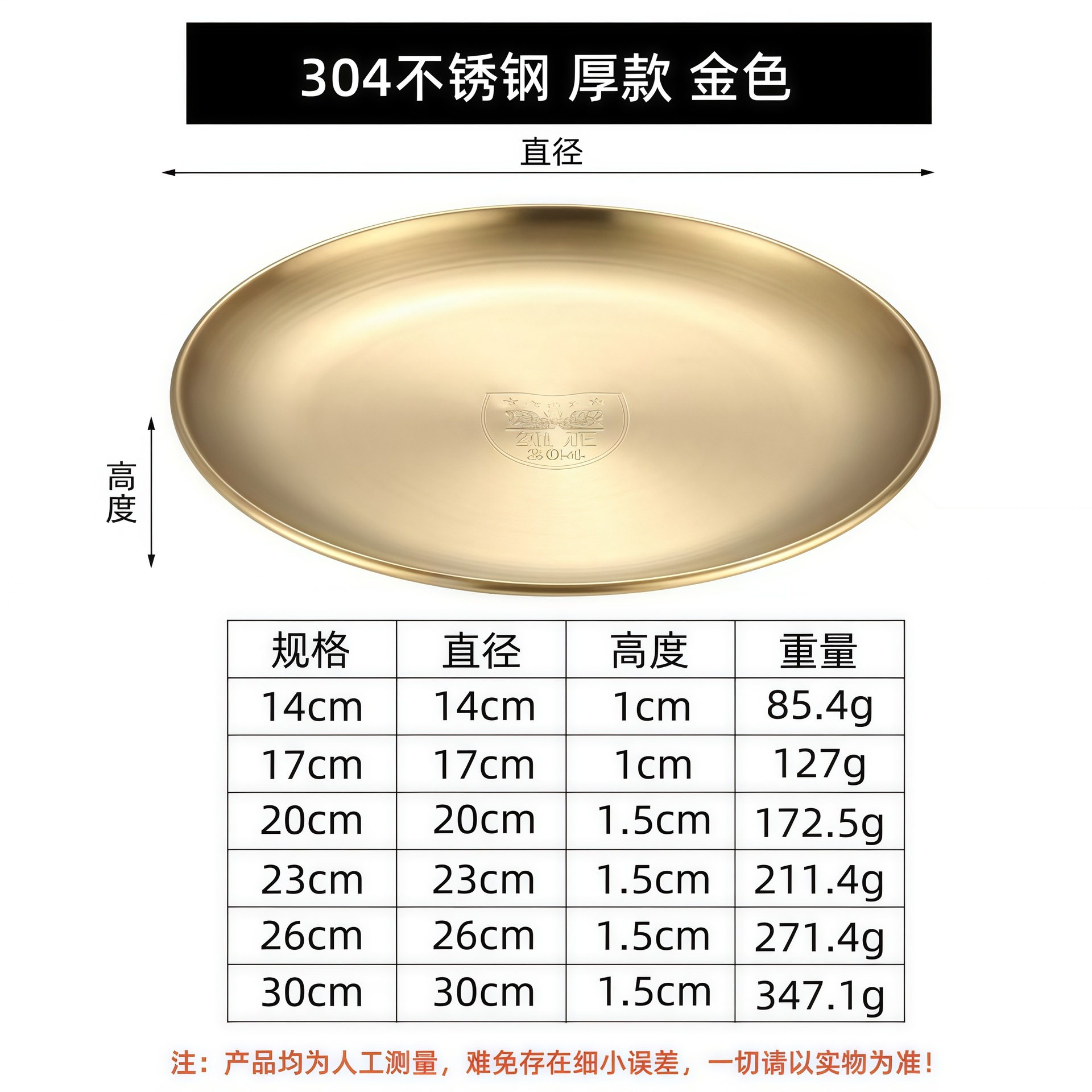 한국 스타일 304 스테인레스 스틸 골든 디스크 두꺼운 트레이 과일 플레이트 케이크 플레이트 상업용 뼈 플레이트 바베큐 플레이트 얕은스토어 가기