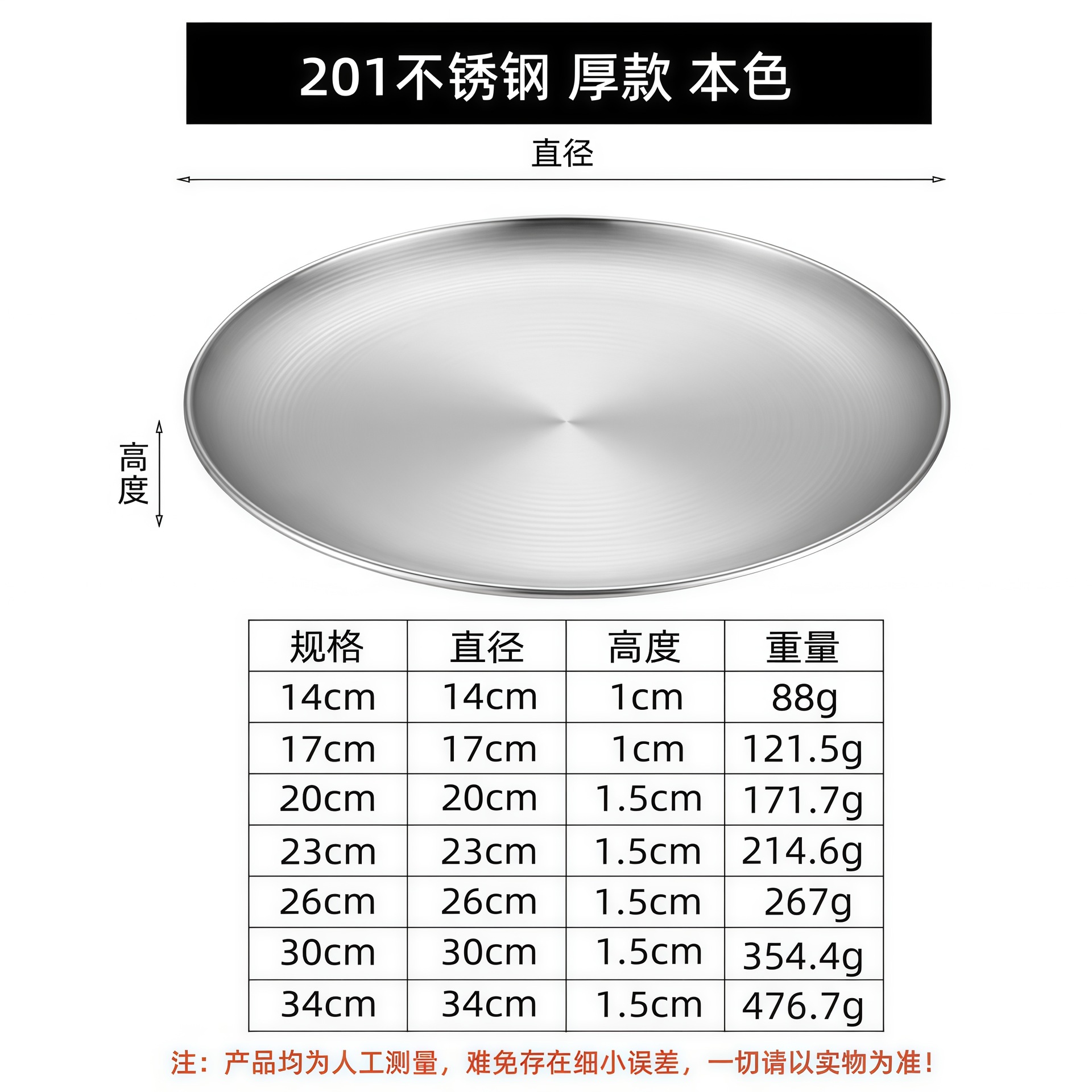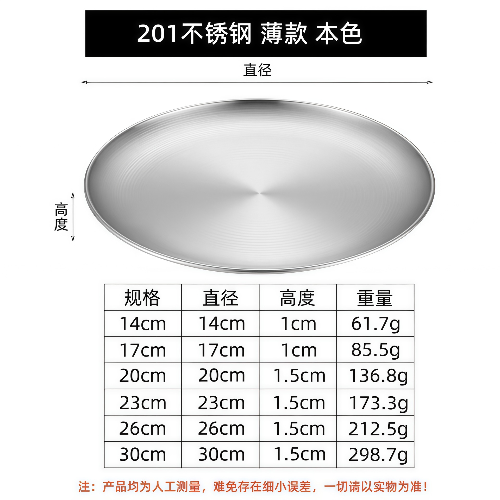 • 201 스테인리스 스틸 [본색] 얇은 타입