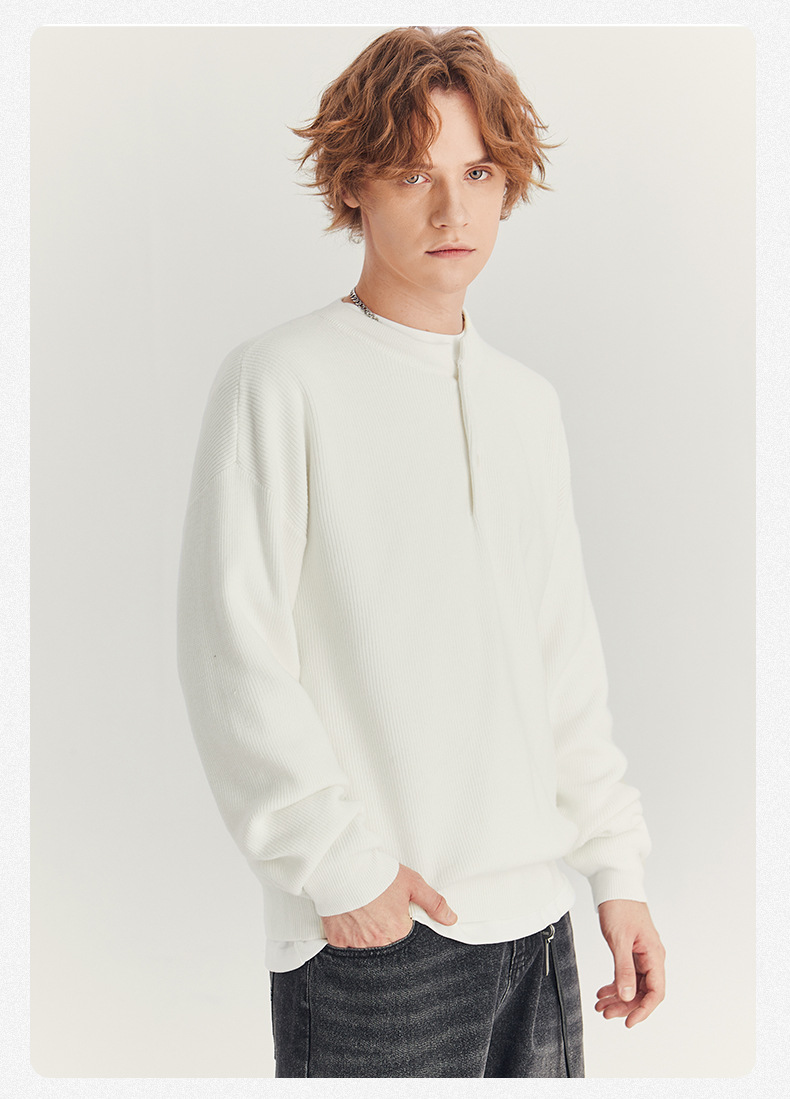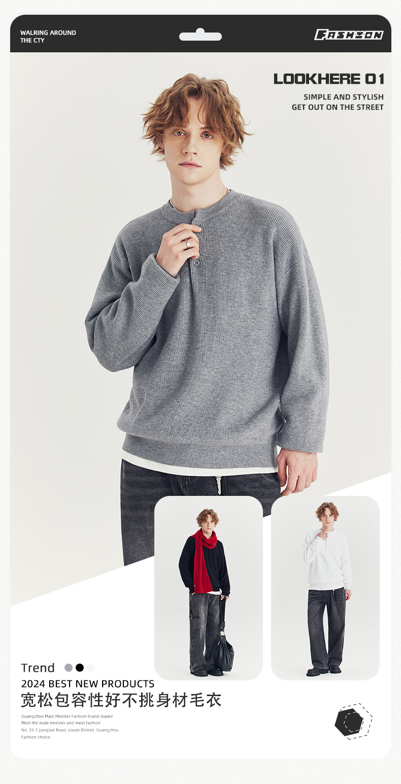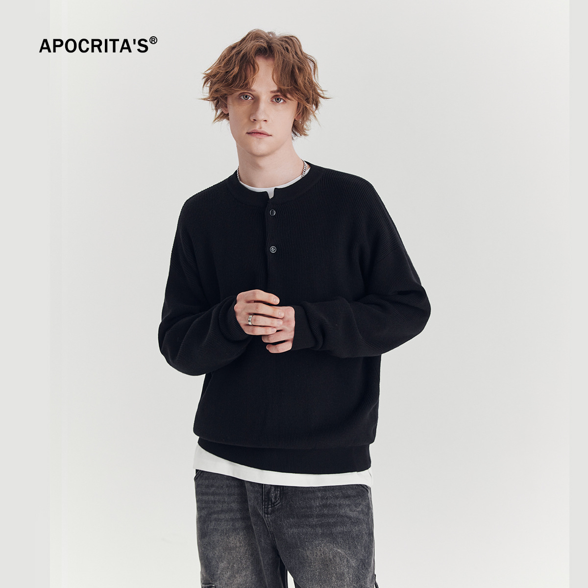 APO 남성복 | 가을과 겨울 반 오픈 넥 스웨터 남성 패션 브랜드 하이 엔드 센스 루즈 터틀넥 니트 셔츠 긴 소매