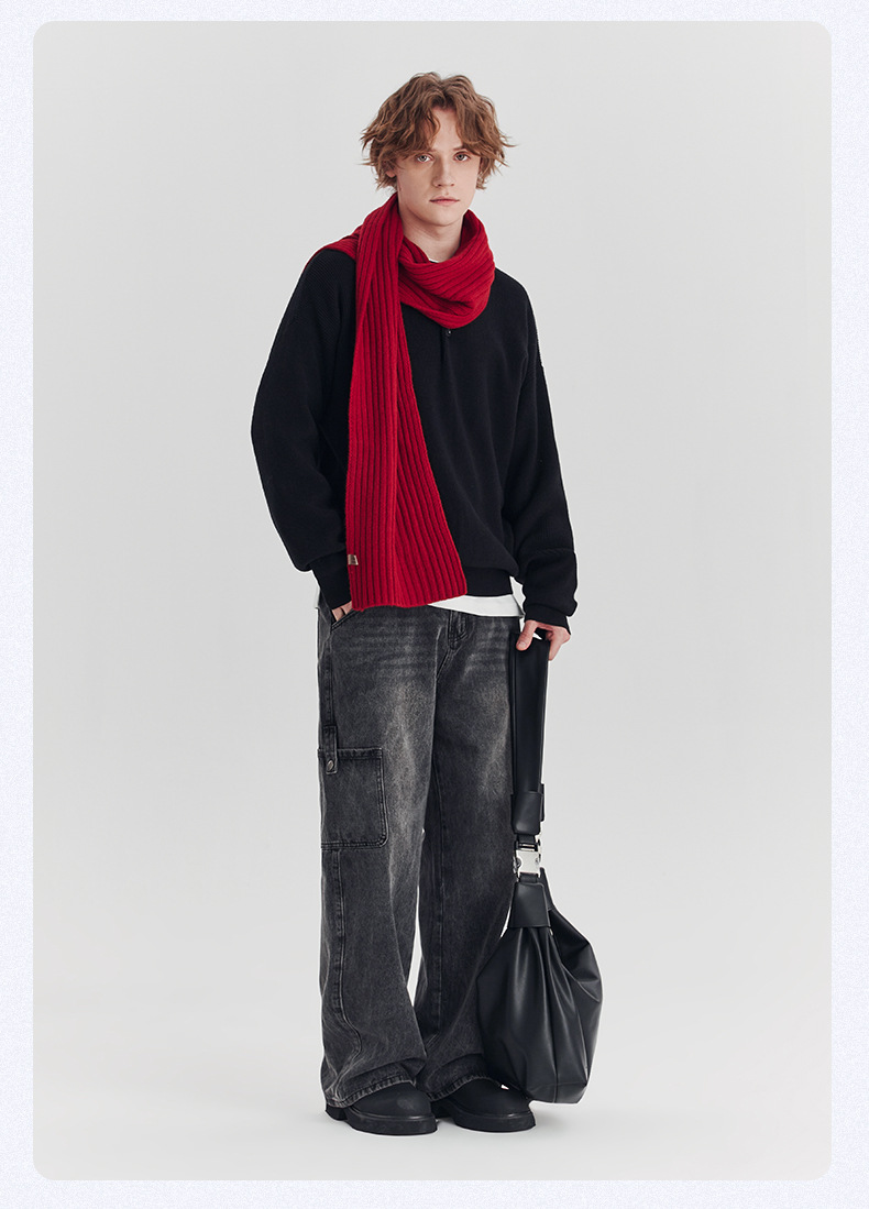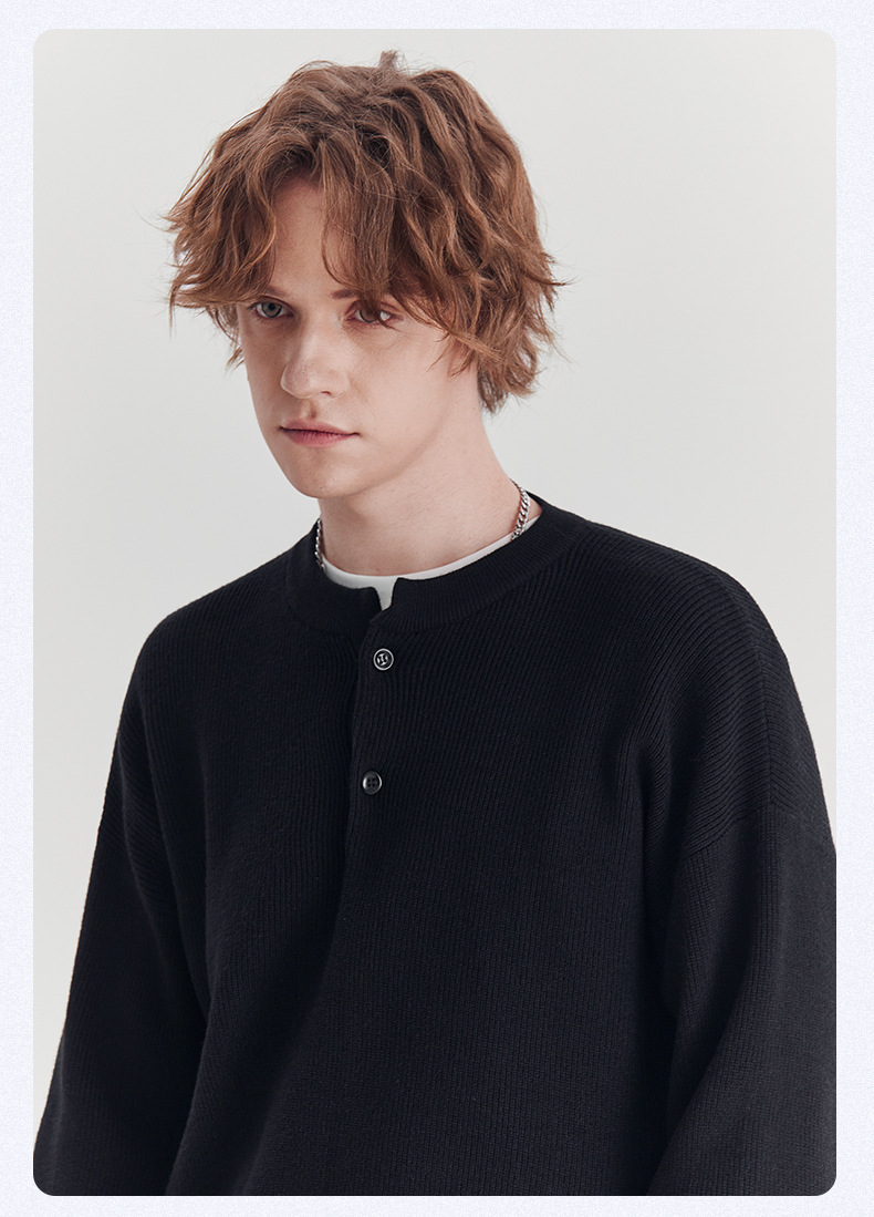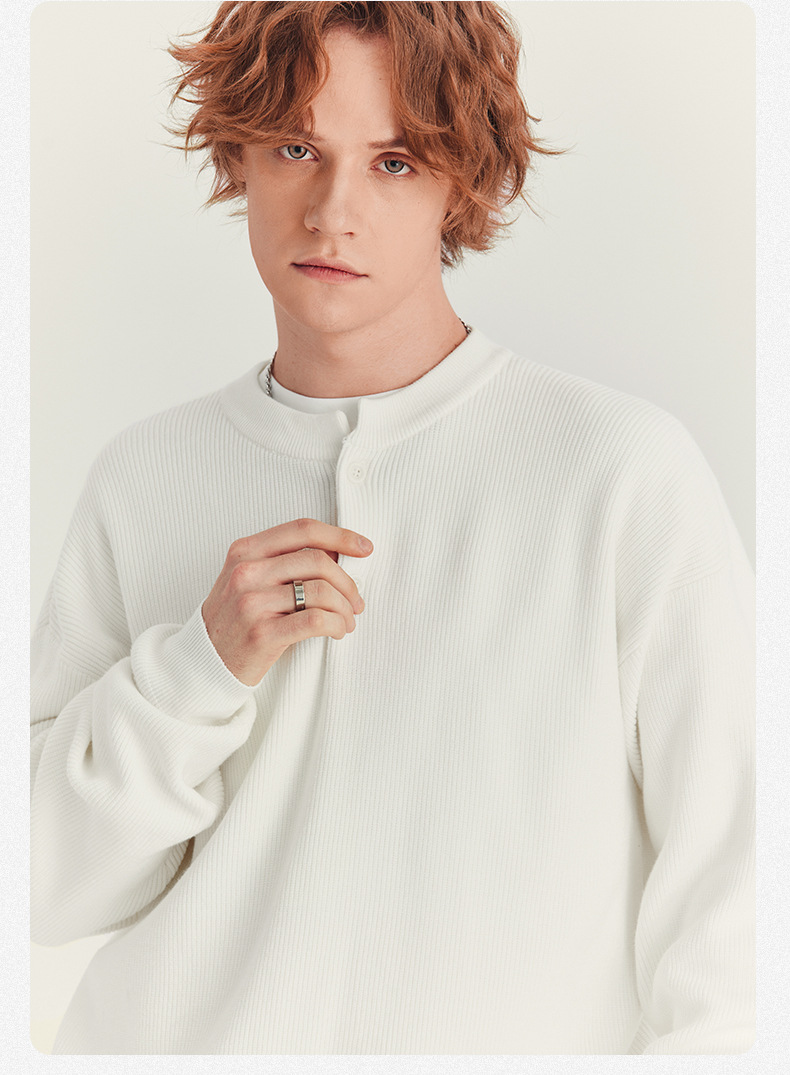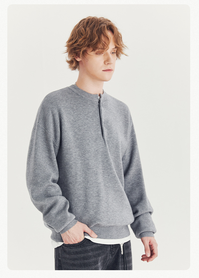 APO 남성복 | 가을과 겨울 반 오픈 넥 스웨터 남성 패션 브랜드 하이 엔드 센스 루즈 터틀넥 니트 셔츠 긴 소매