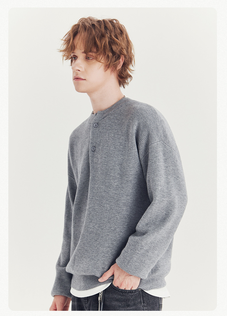 APO 남성복 | 가을과 겨울 반 오픈 넥 스웨터 남성 패션 브랜드 하이 엔드 센스 루즈 터틀넥 니트 셔츠 긴 소매스토어 가기