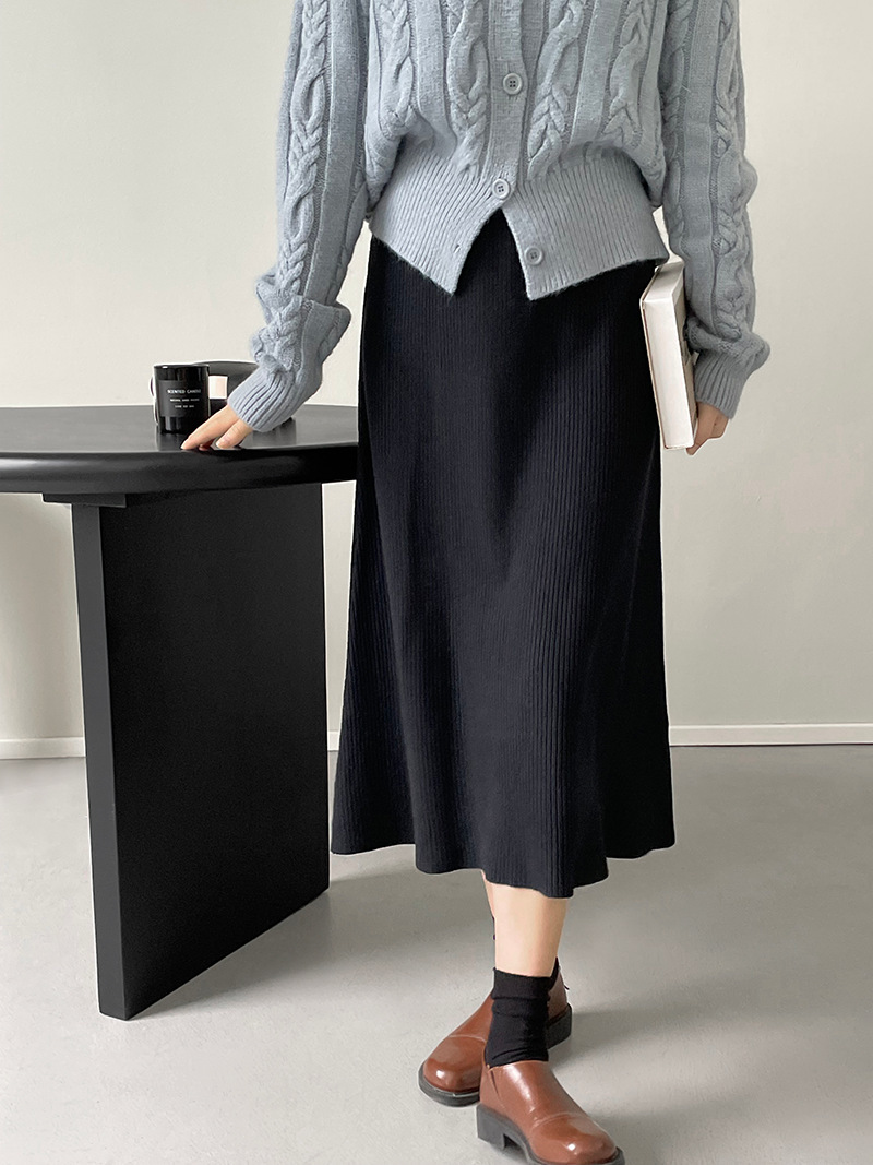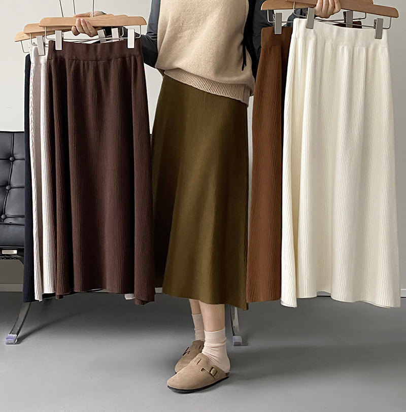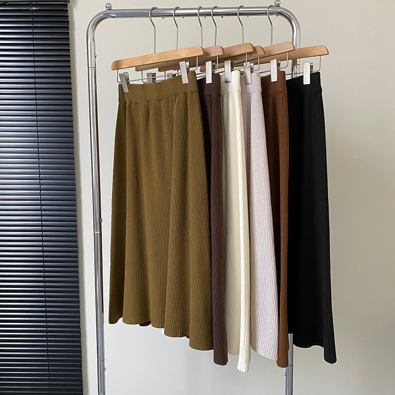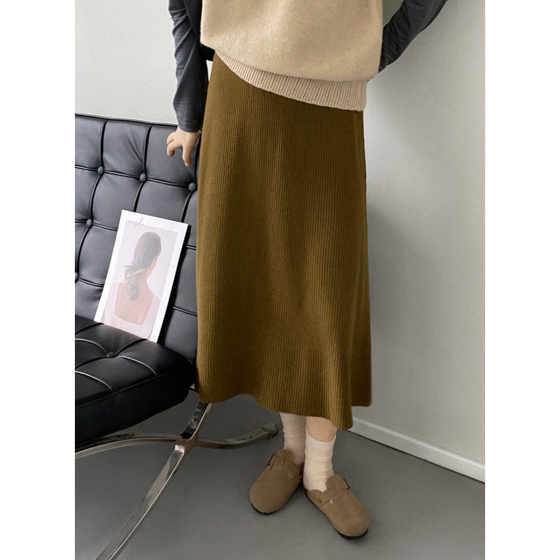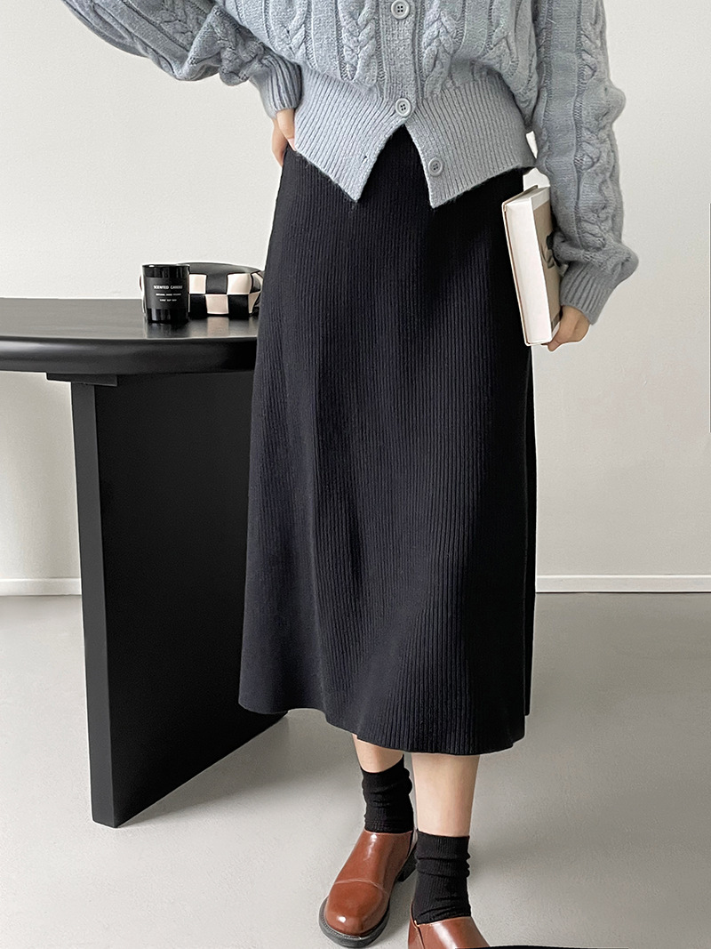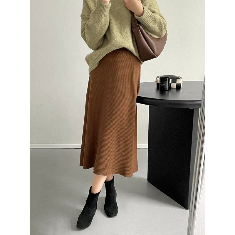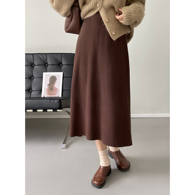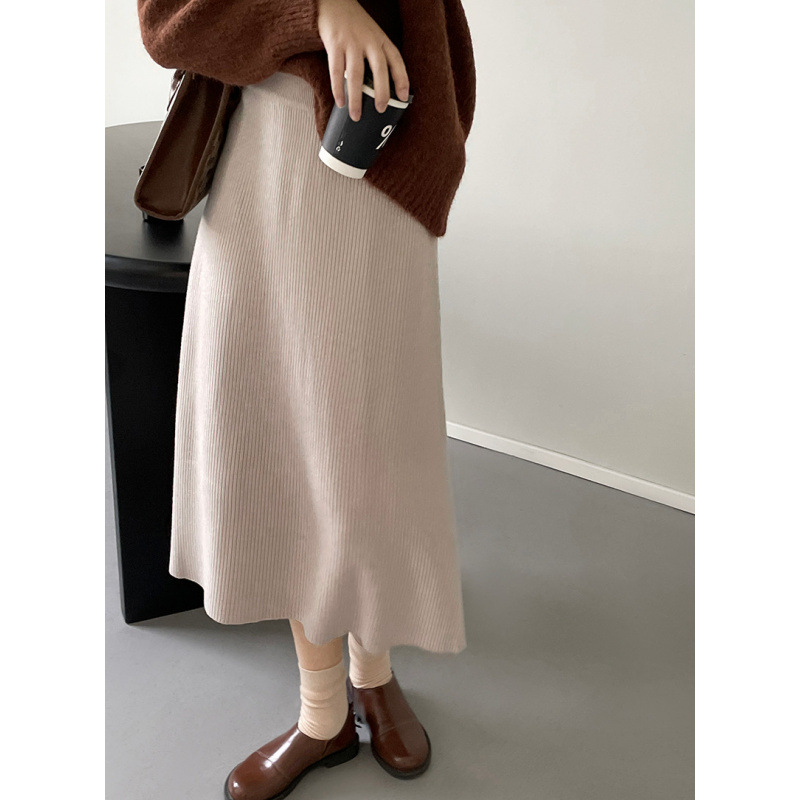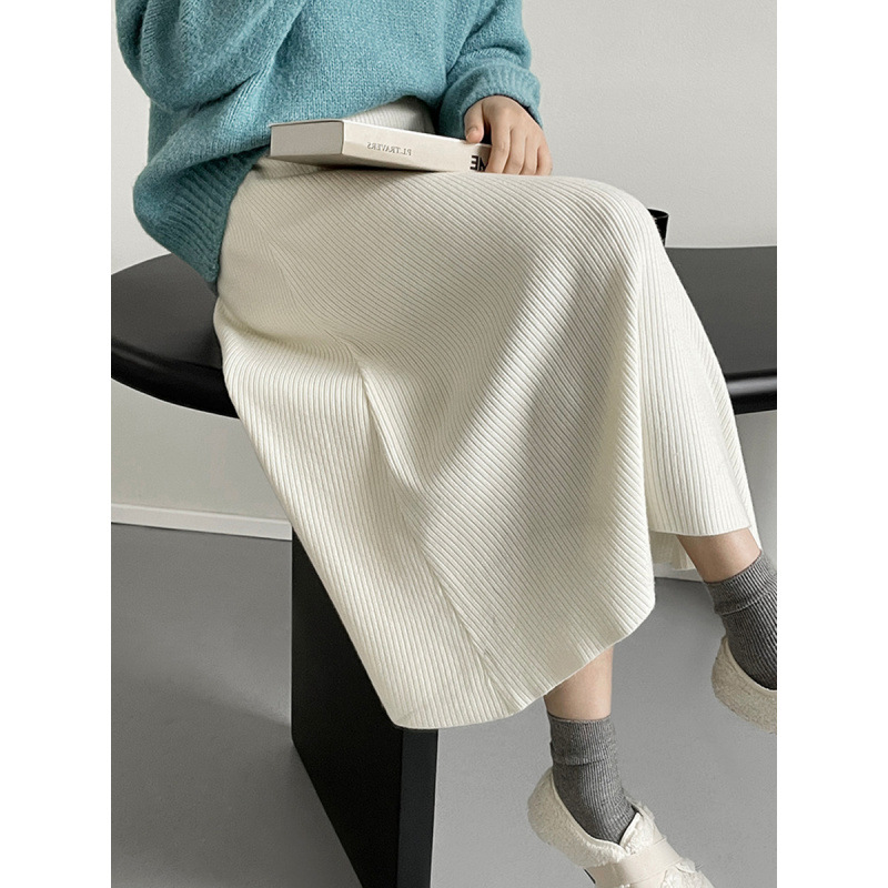 사교계 복용량 니트 스커트 여성의 2024 년 새로운 가을과 겨울 높은 허리 슬리밍 엉덩이 커버 A-라인 스커트 트렌디스토어 가기