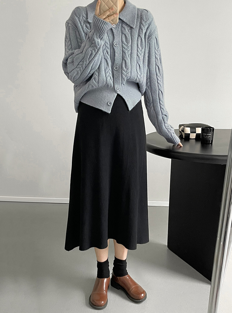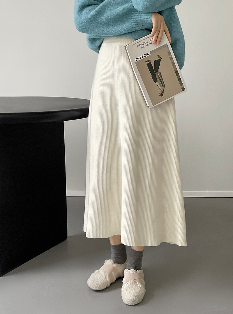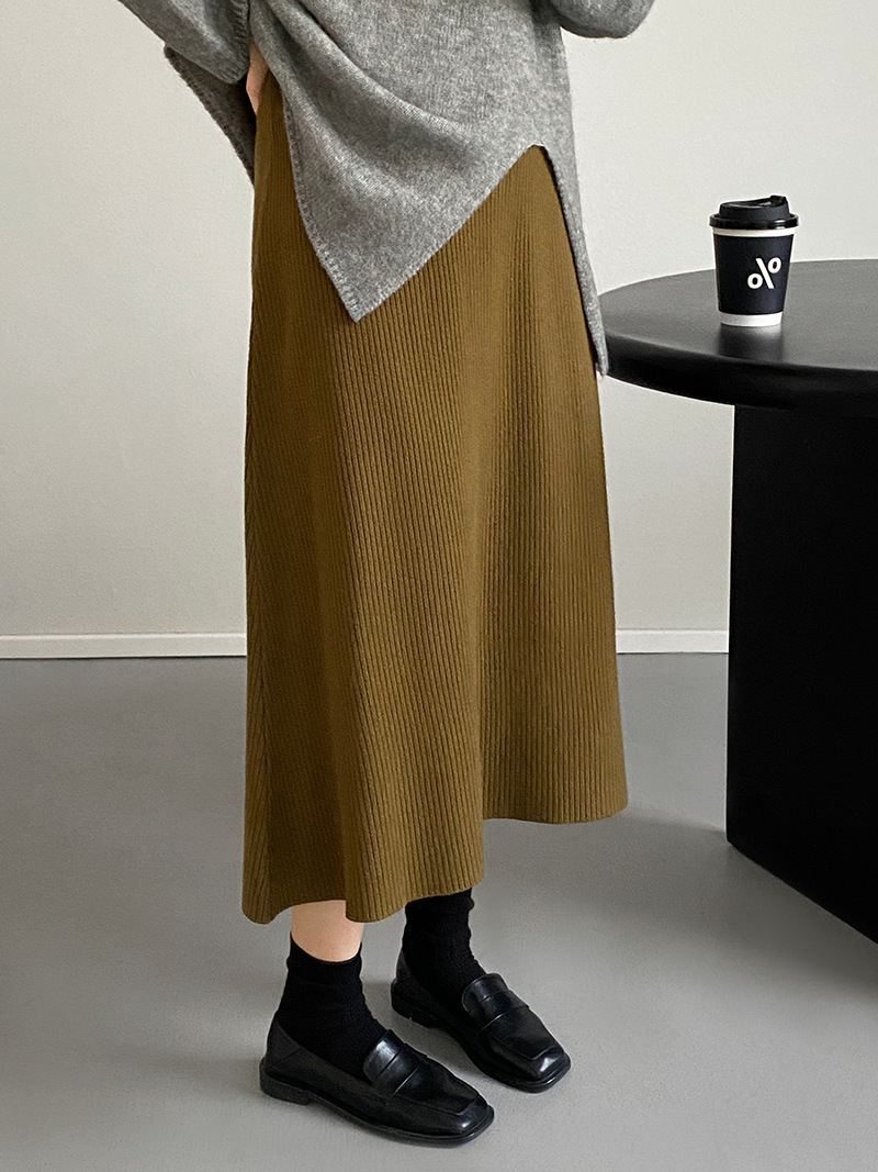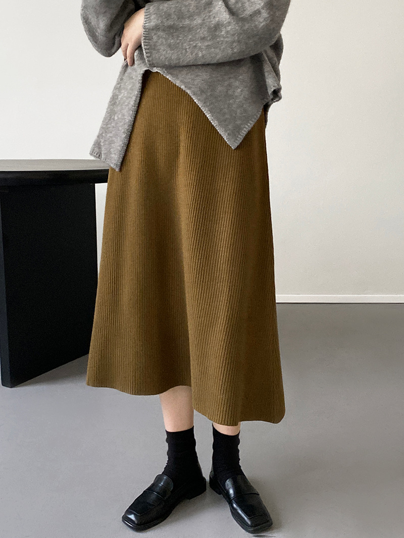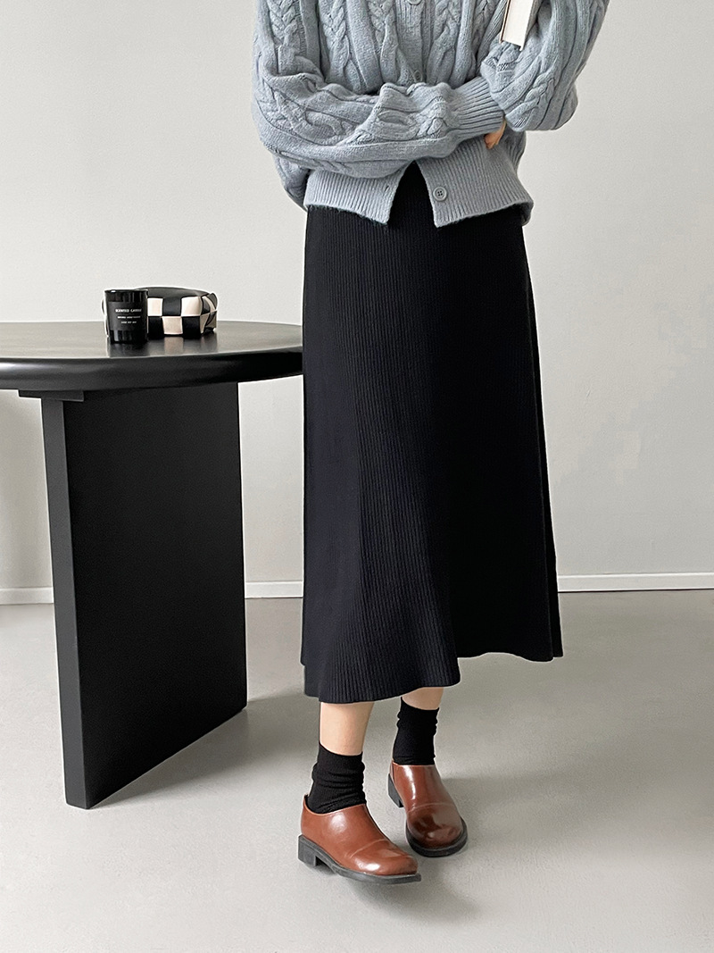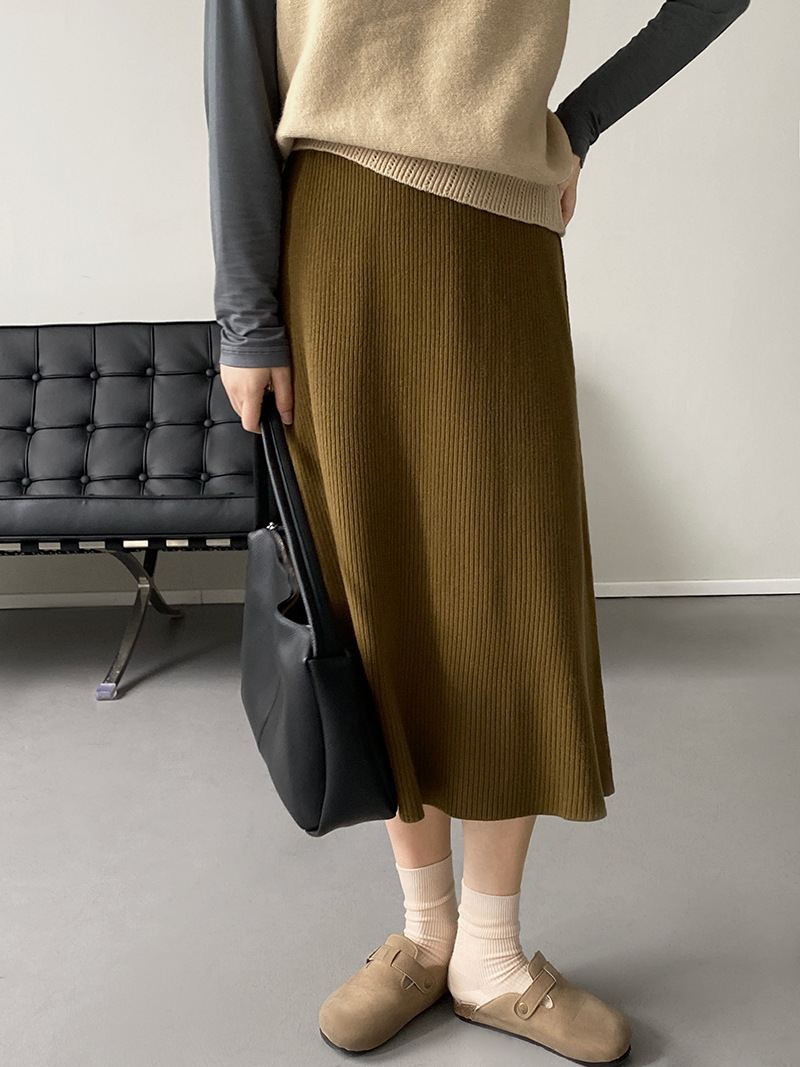사교계 복용량 니트 스커트 여성의 2024 년 새로운 가을과 겨울 높은 허리 슬리밍 엉덩이 커버 A-라인 스커트 트렌디스토어 가기