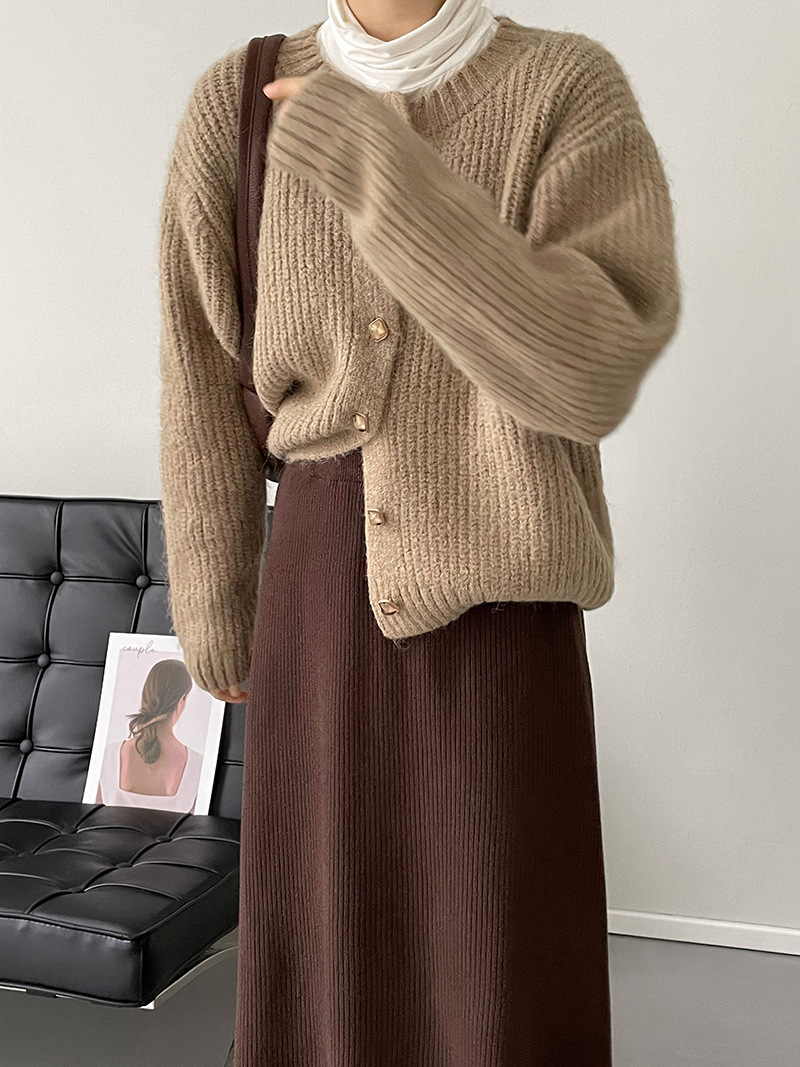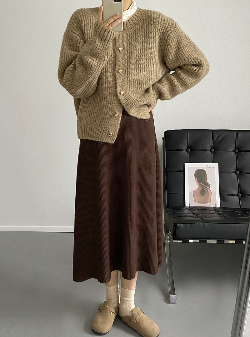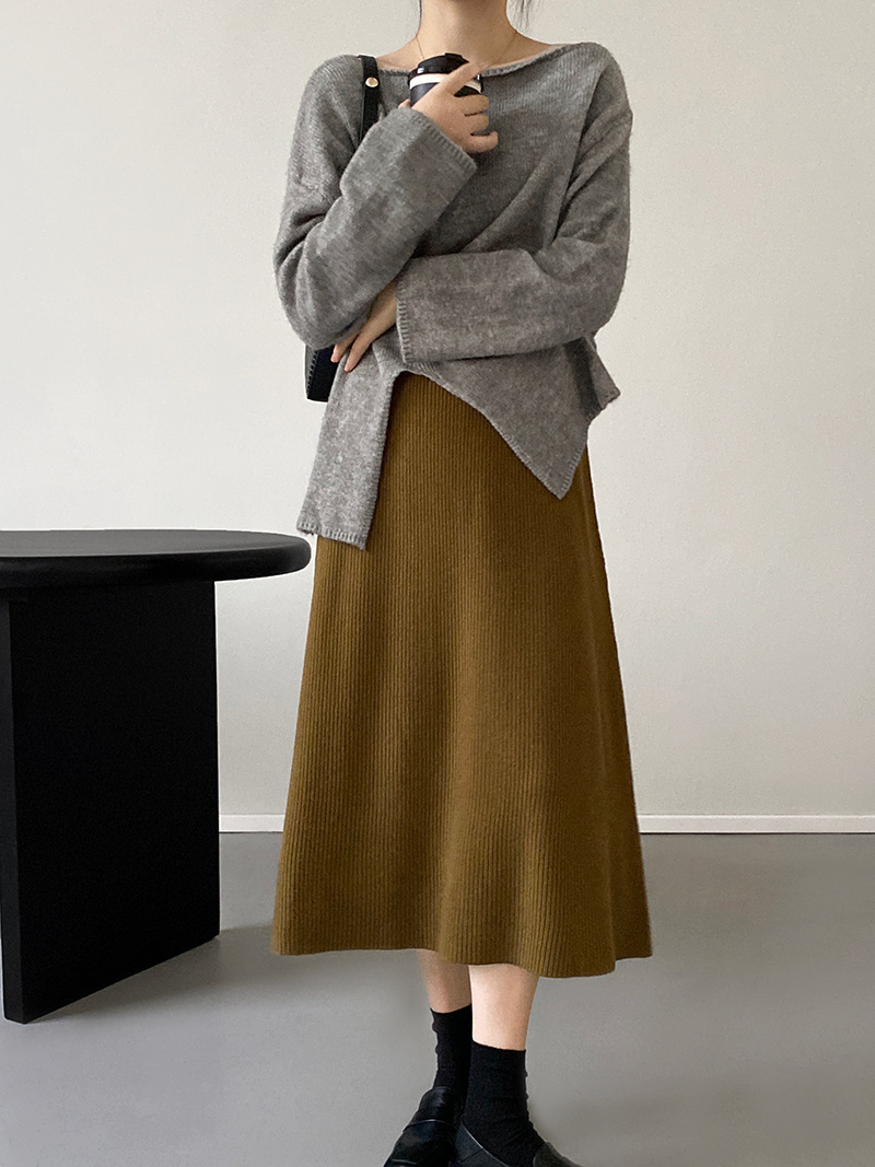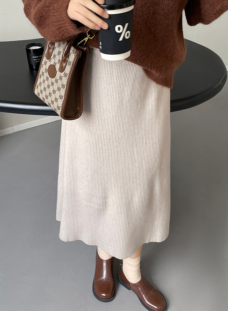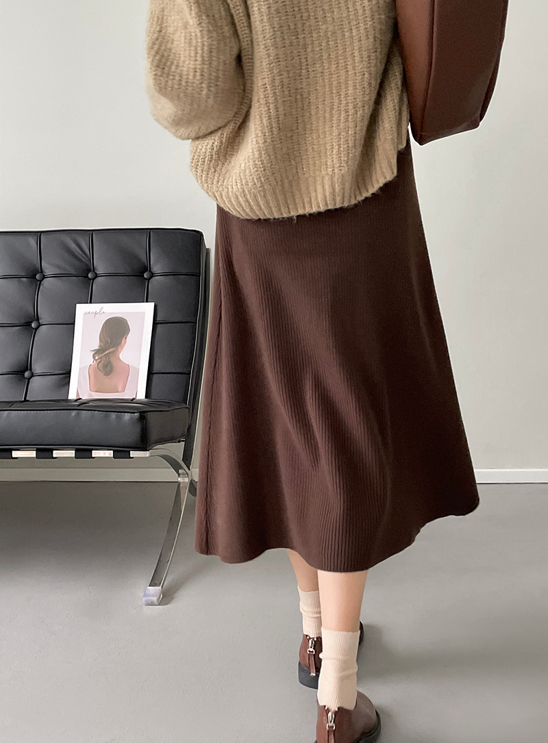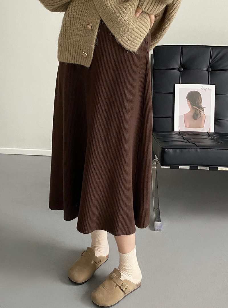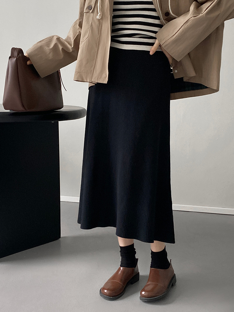 사교계 복용량 니트 스커트 여성의 2024 년 새로운 가을과 겨울 높은 허리 슬리밍 엉덩이 커버 A-라인 스커트 트렌디스토어 가기