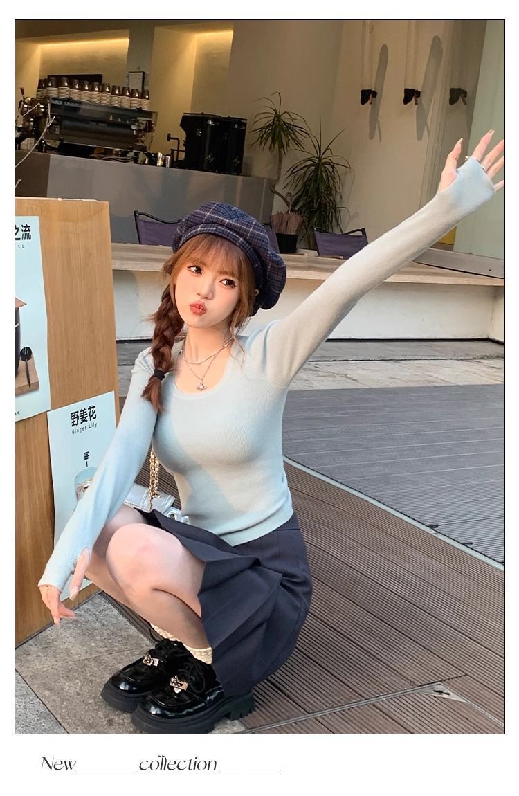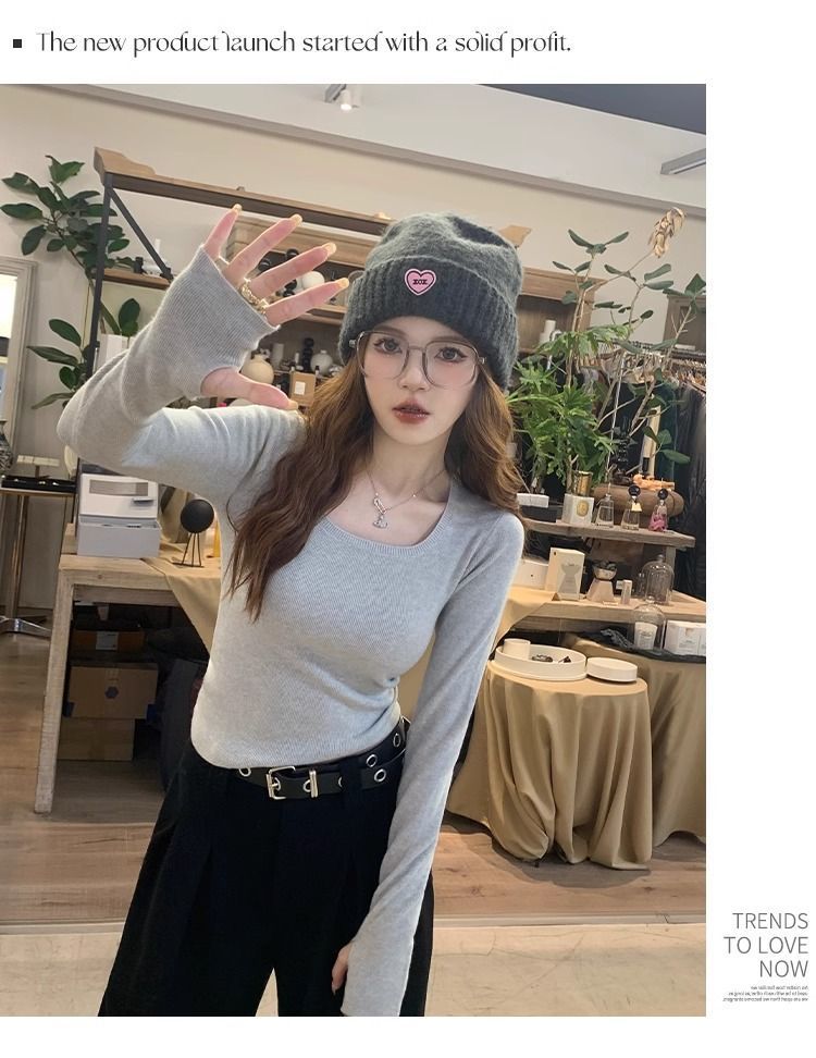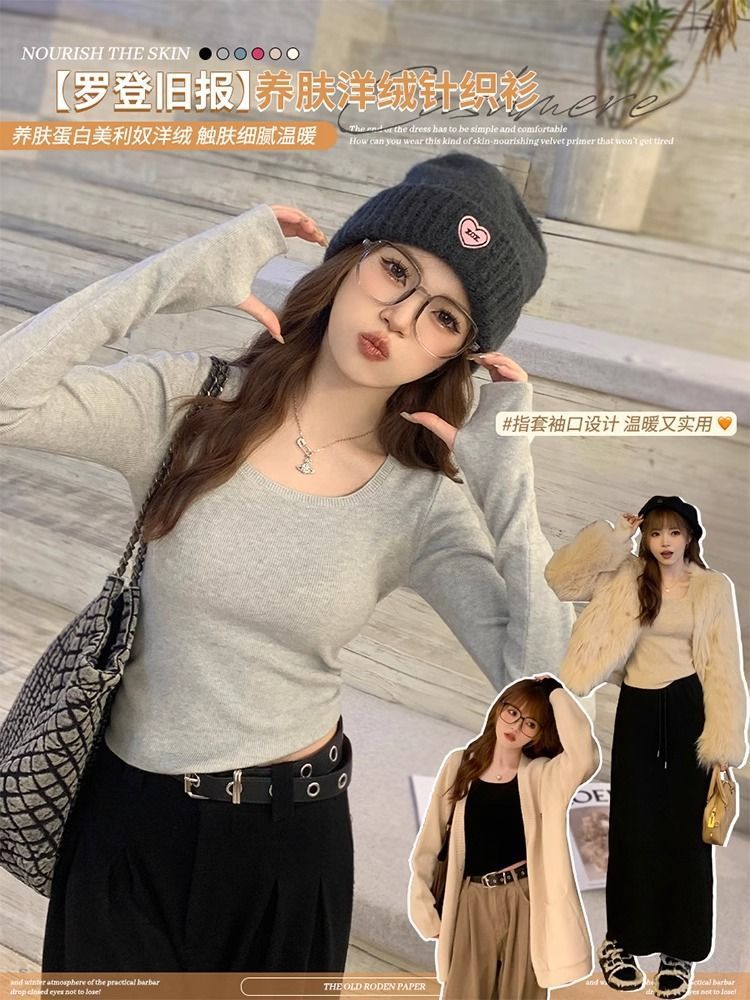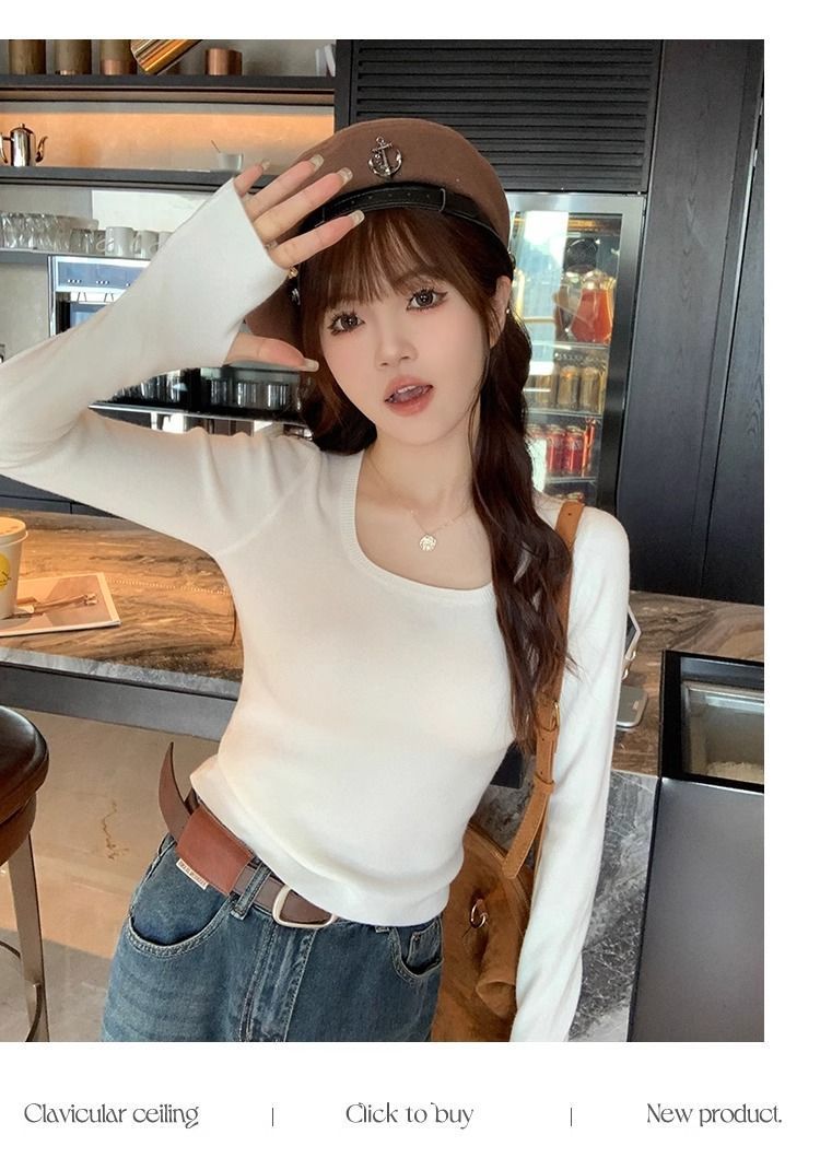 Base Women's 2024 새로운 가을 및 겨울 스웨터 스퀘어 칼라 슬림 핏 탑 올 매치가있는 긴팔 하이 엔드 스웨터스토어 가기
