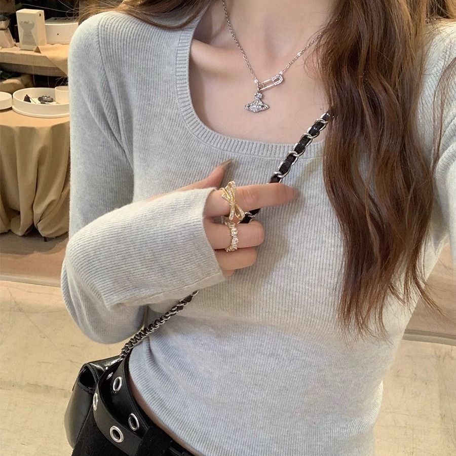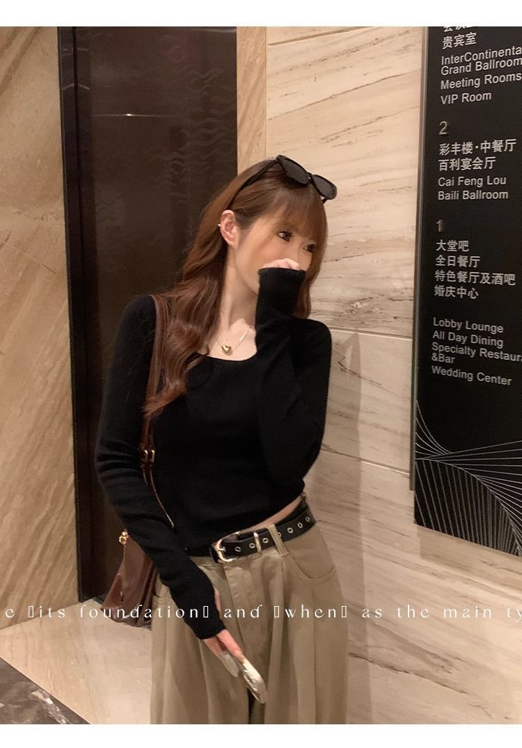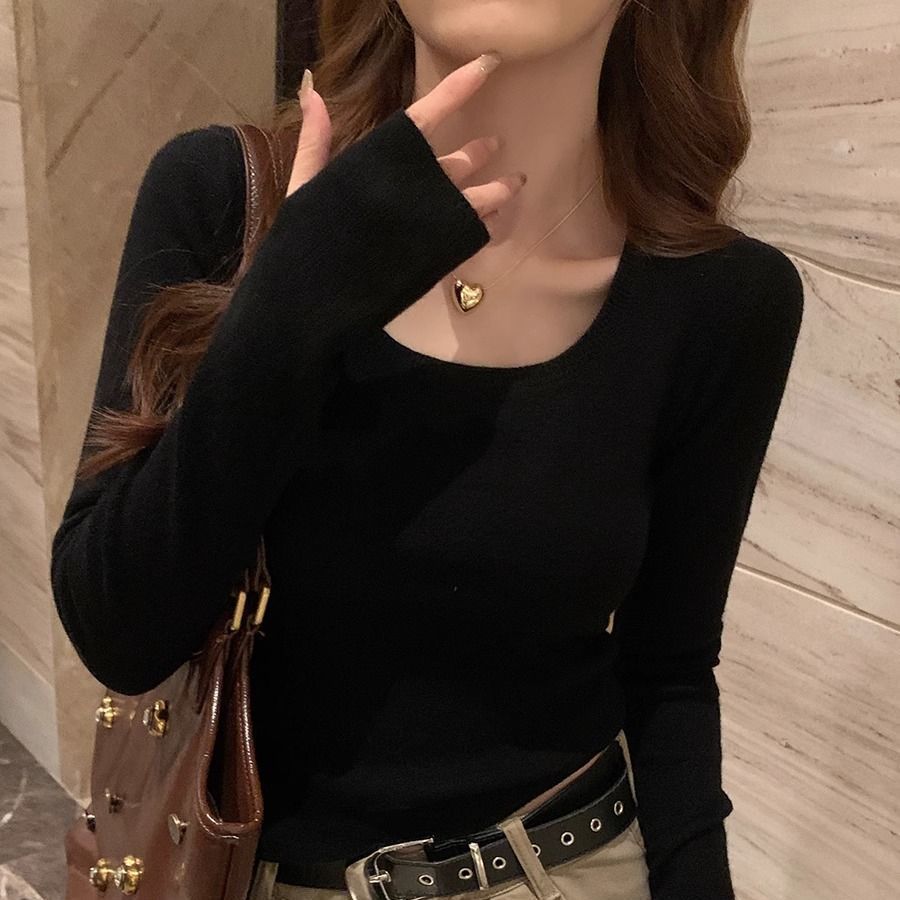 Base Women's 2024 새로운 가을 및 겨울 스웨터 스퀘어 칼라 슬림 핏 탑 올 매치가있는 긴팔 하이 엔드 스웨터
