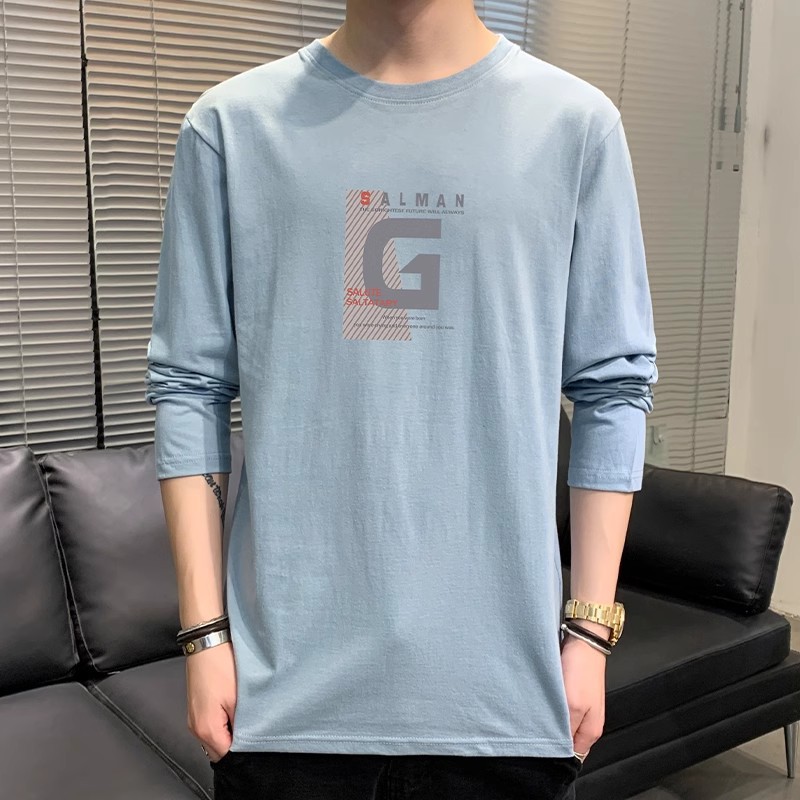 가을 뉴 남성 긴팔 티셔츠 프린트 올 매치 티셔츠 슬림 핏 크루 넥 가을베이스 셔츠 남성 패션스토어 가기