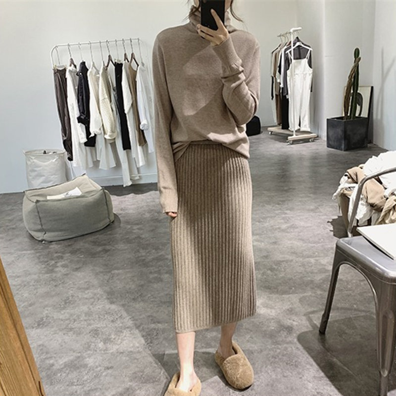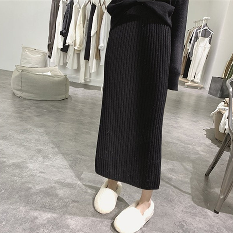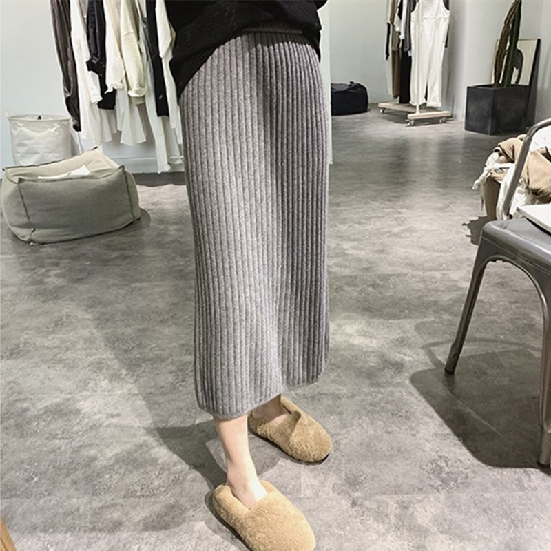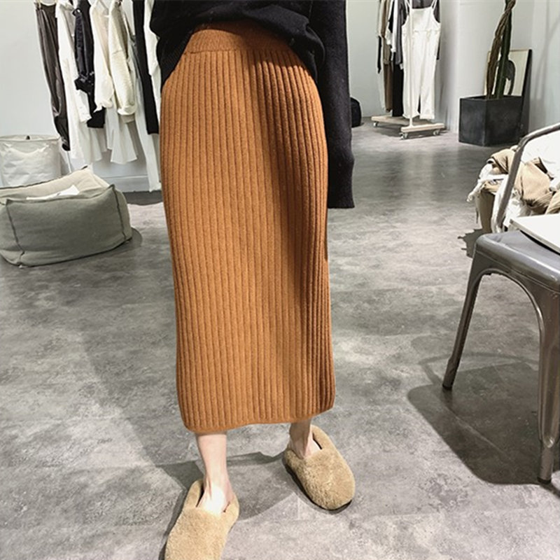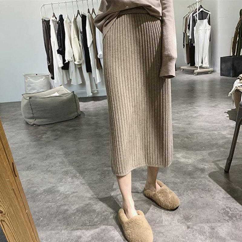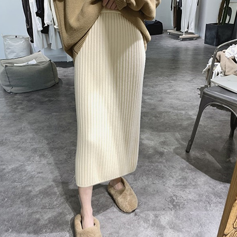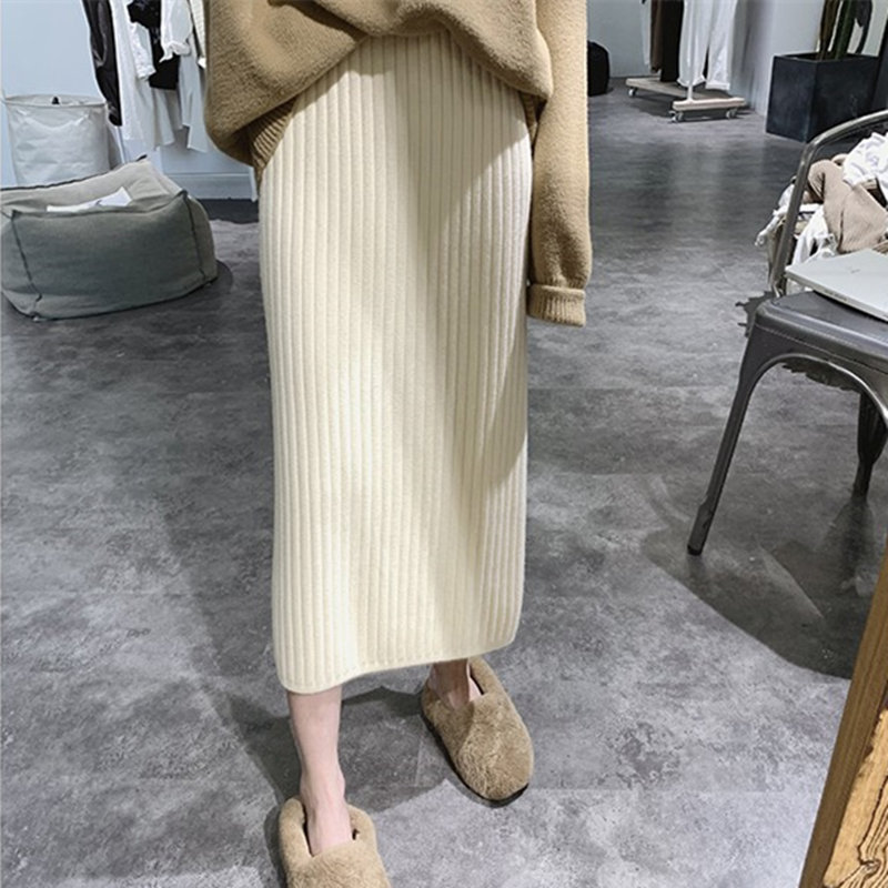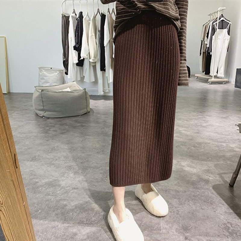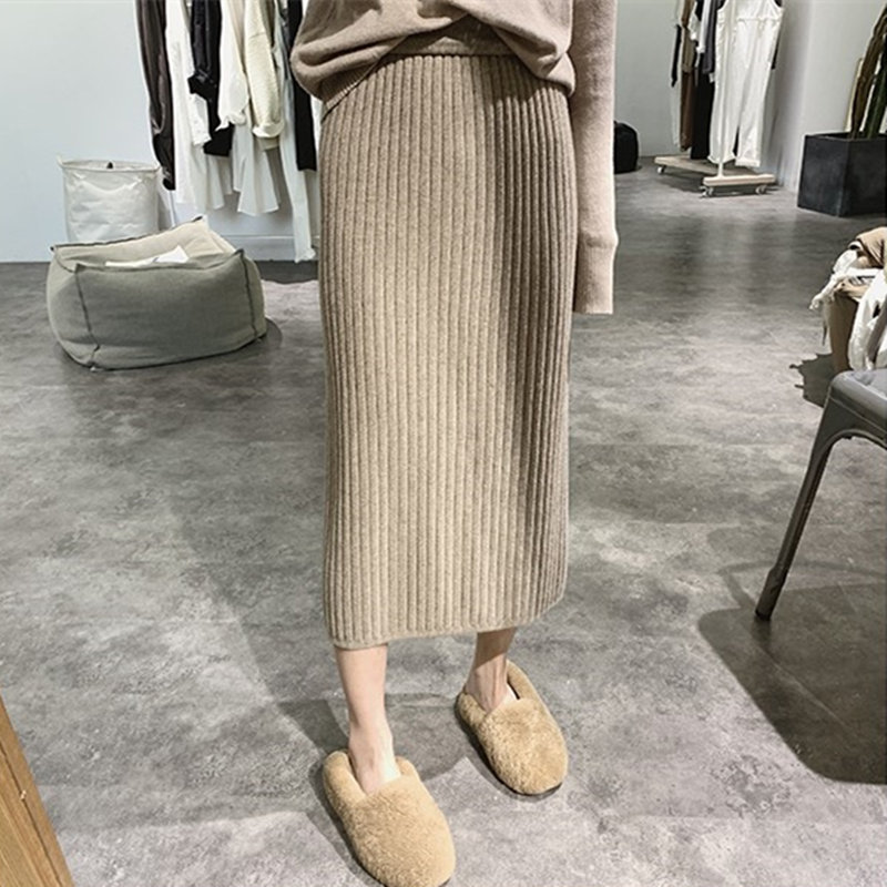 중간 길이의 니트 스커트 여성의 2024 년 가을과 겨울 새로운 슬림 핏 슬리밍 스트레치 높은 허리 수직 시트 스커트 트렌디스토어 가기