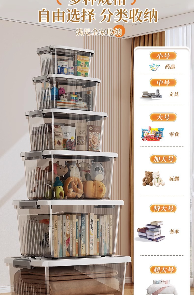 투명한 저장 상자 옷 장난감 플라스틱 마무리 상자 가정용 침실 거실 초대형 두꺼운 저장 상자 도매스토어 가기
