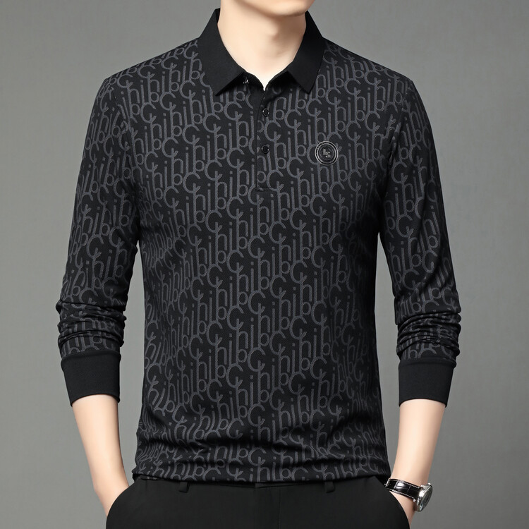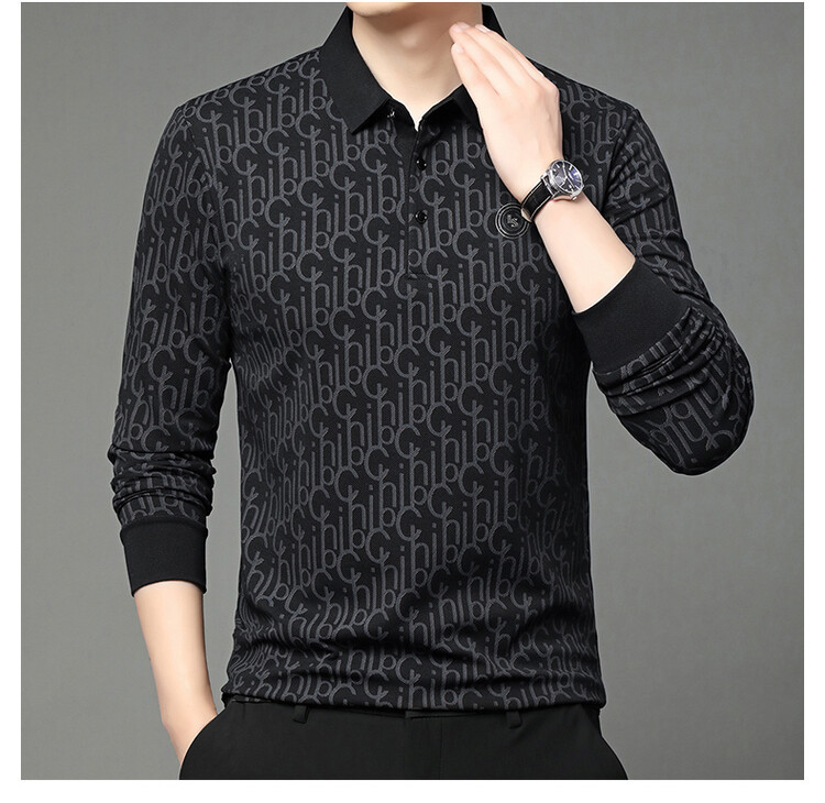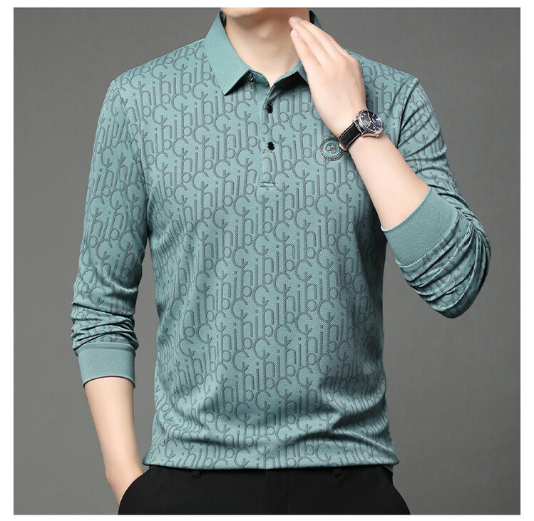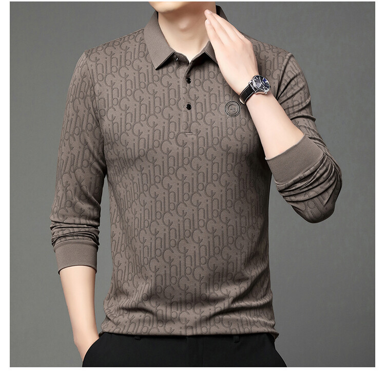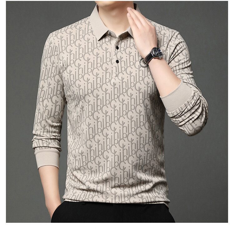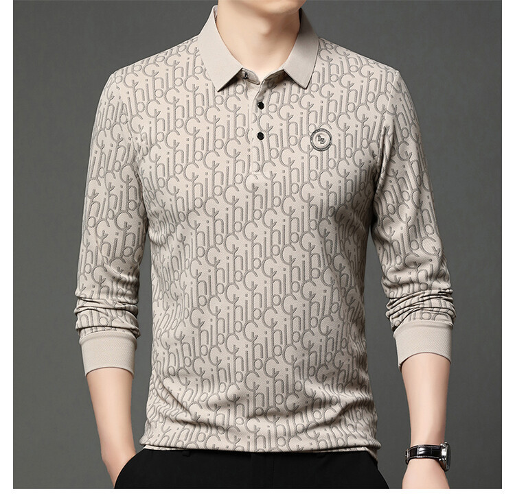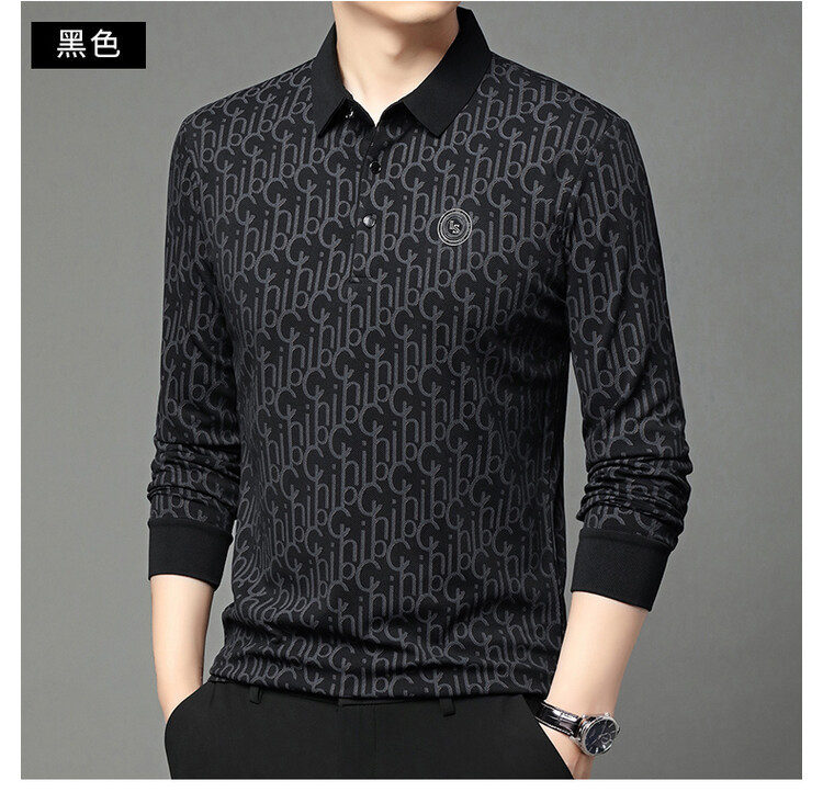 라이브 폭발 폴로 셔츠 긴 소매 남성 봄과 가을 새로운 남성 패션 캐주얼 옷깃 편지 티셔츠 최고 세대 헤어