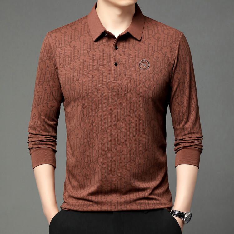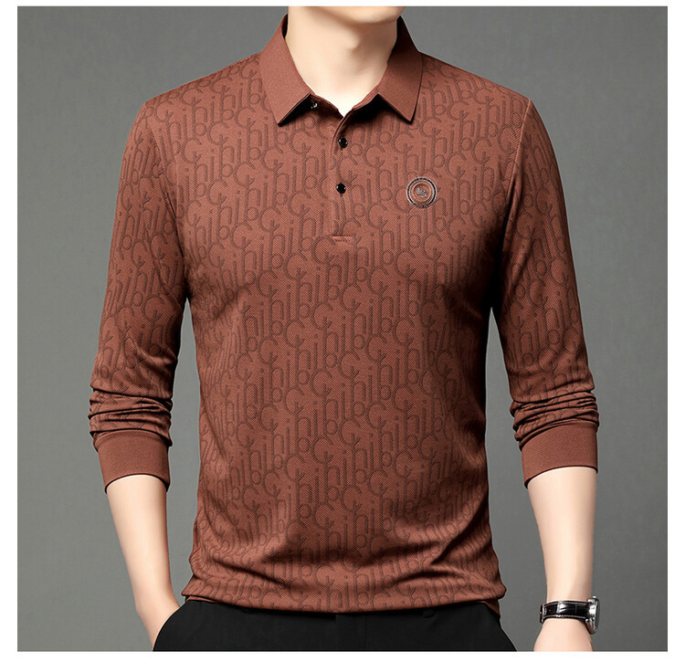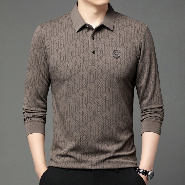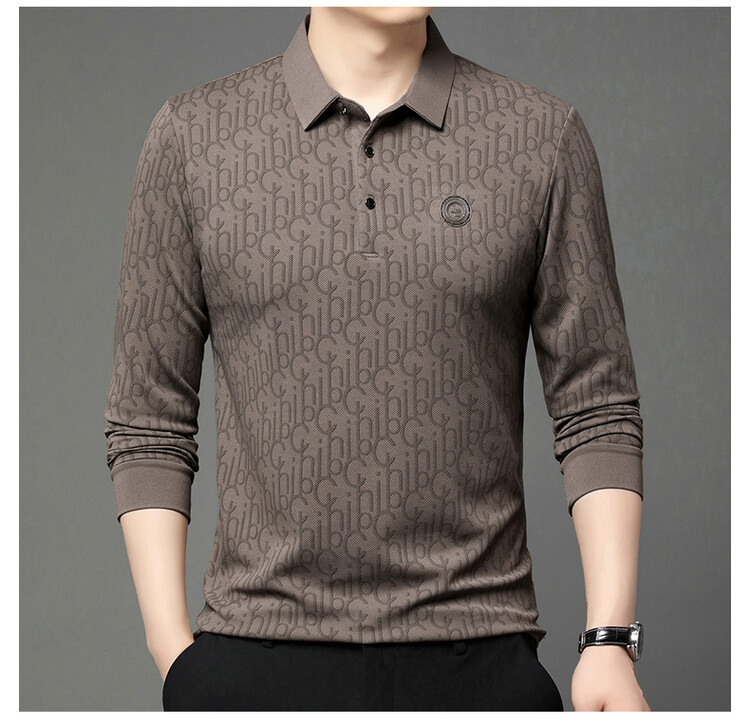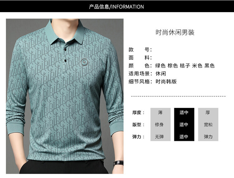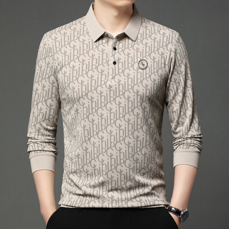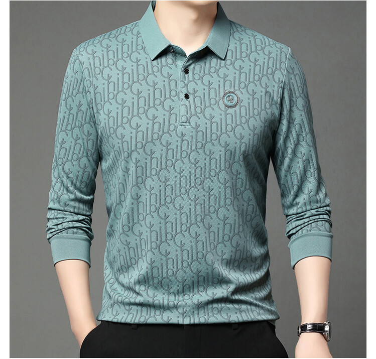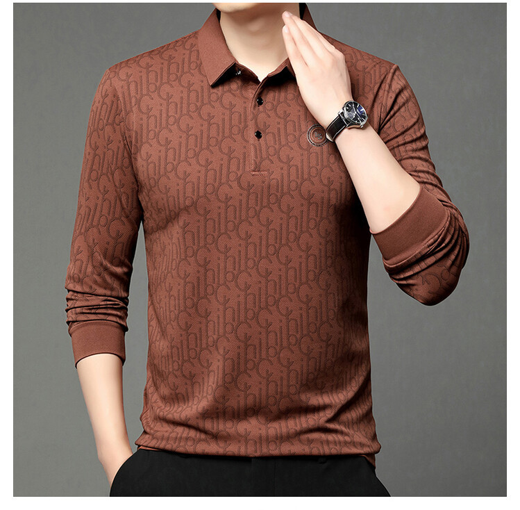 라이브 폭발 폴로 셔츠 긴 소매 남성 봄과 가을 새로운 남성 패션 캐주얼 옷깃 편지 티셔츠 최고 세대 헤어