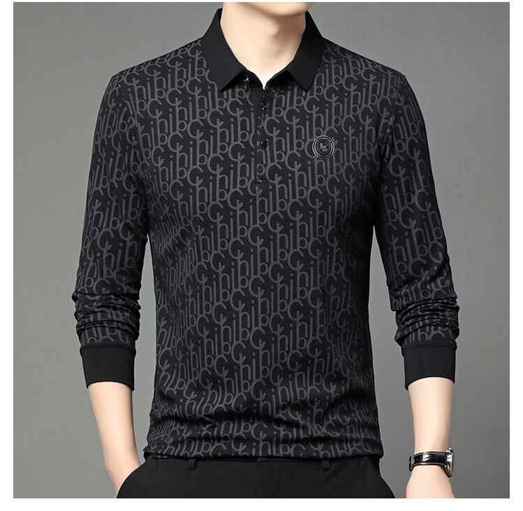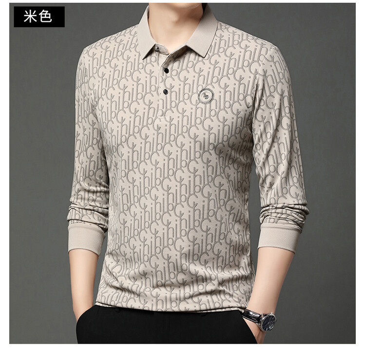 라이브 폭발 폴로 셔츠 긴 소매 남성 봄과 가을 새로운 남성 패션 캐주얼 옷깃 편지 티셔츠 최고 세대 헤어스토어 가기
