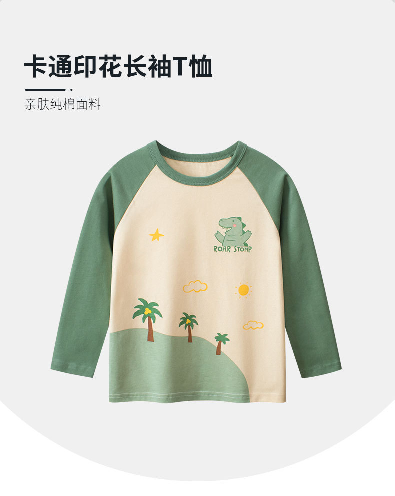 27 어린이 의류 긴팔 티셔츠 소년 가을 둥근 목 바닥 셔츠 공룡 만화 소년 아기 옷 도매스토어 가기