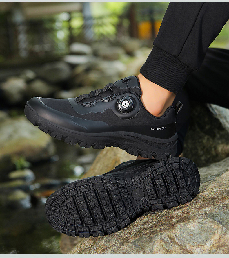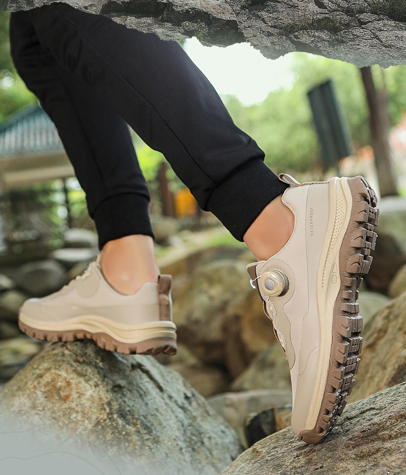 사계절 새로운 방수 가죽 남자 야외 운동화 남자 손잡이 버튼 캐주얼 경량 하이킹 러닝화