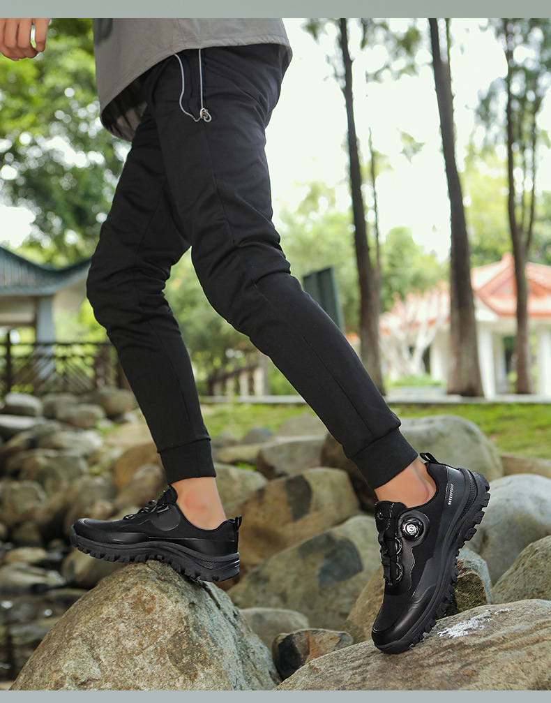 사계절 새로운 방수 가죽 남자 야외 운동화 남자 손잡이 버튼 캐주얼 경량 하이킹 러닝화스토어 가기