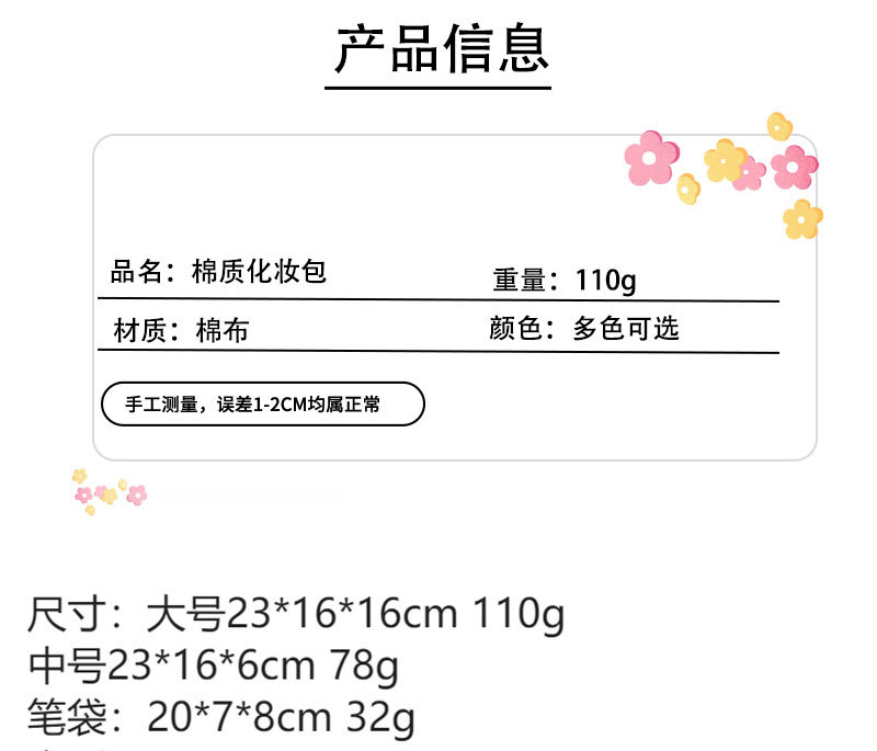 2024 작고 신선하고 귀여운 면 화장품 가방 틈새 휴대용 세면 용품 보관 가방 꽃 인 귀여운 상자 가방 상자