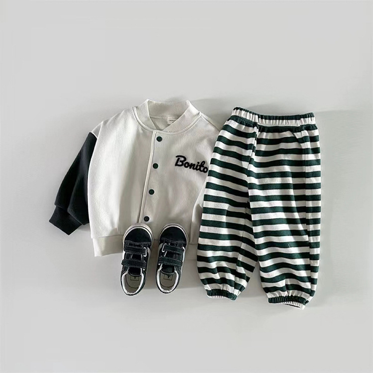 남학생과 여학생을위한 봄과 가을 옷의 한국 버전 아기 어린이 카디건 코트 새로운 긴 소매 컬러 매칭 볼 세트 올 매치 야구 세트