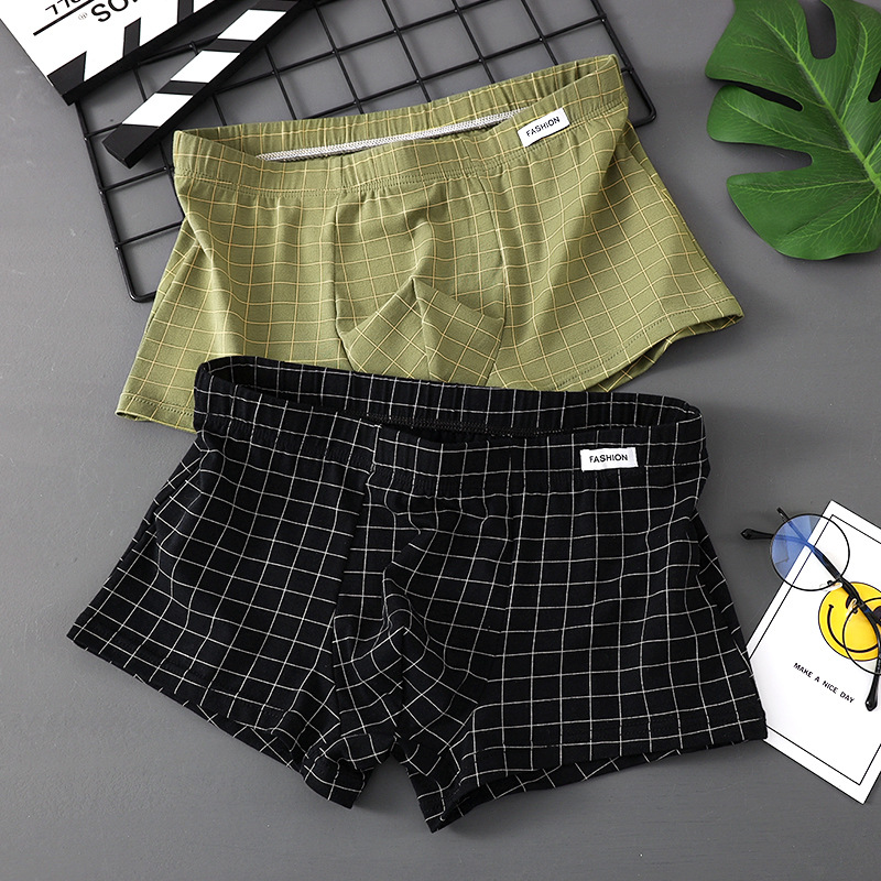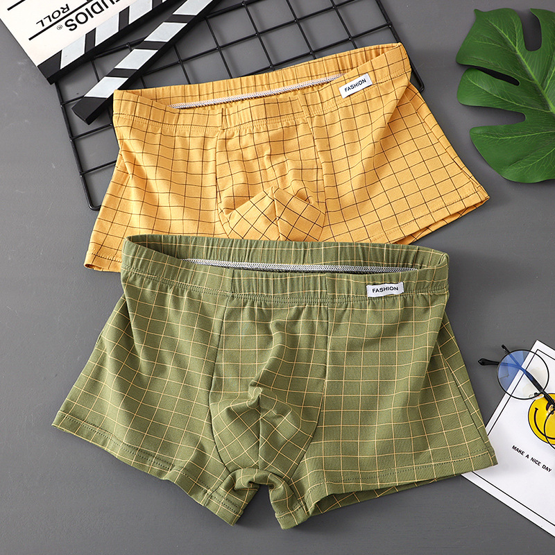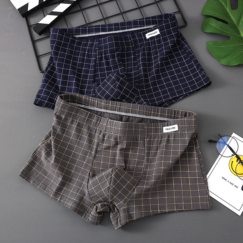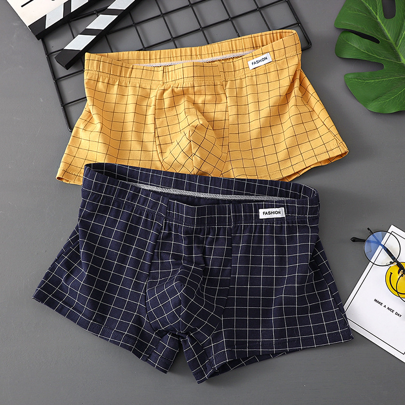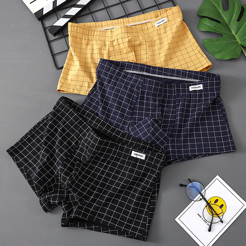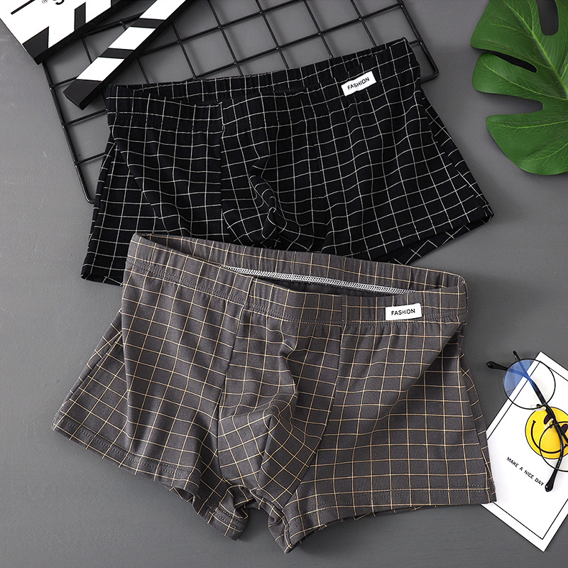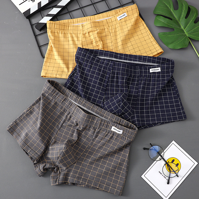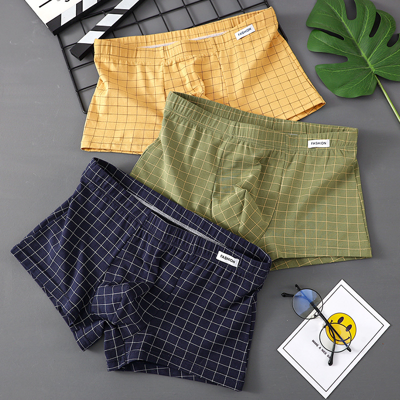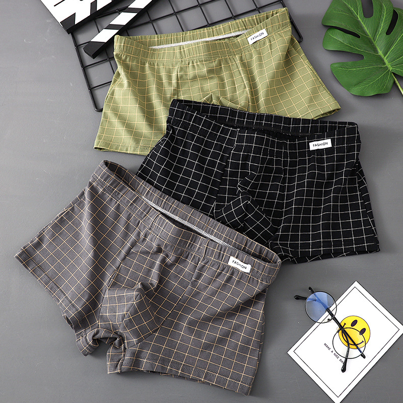 남성 속옷 퓨어 코튼 4 코너 트렌디 브랜드 뉴 스타일 코튼 소년 십대 소년 트렌디 한 격자 무늬 간단한 복서 머리스토어 가기