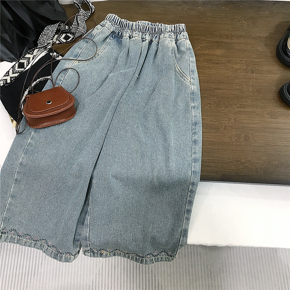 • 밑단에 미세한 자수가 돋보이는 데님 와이드 팬츠
