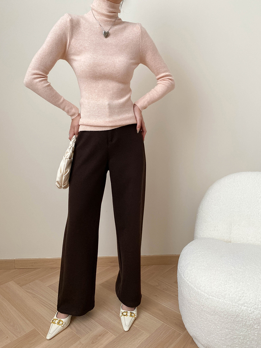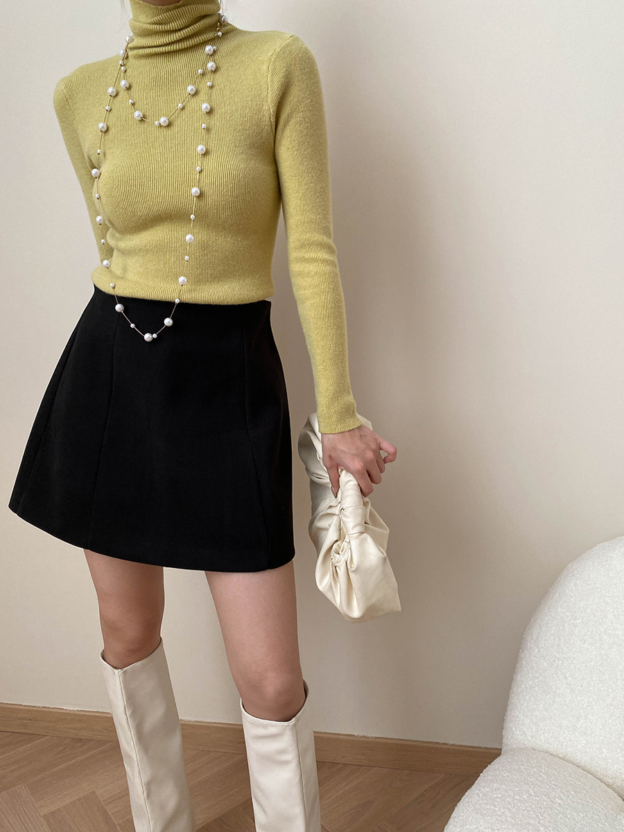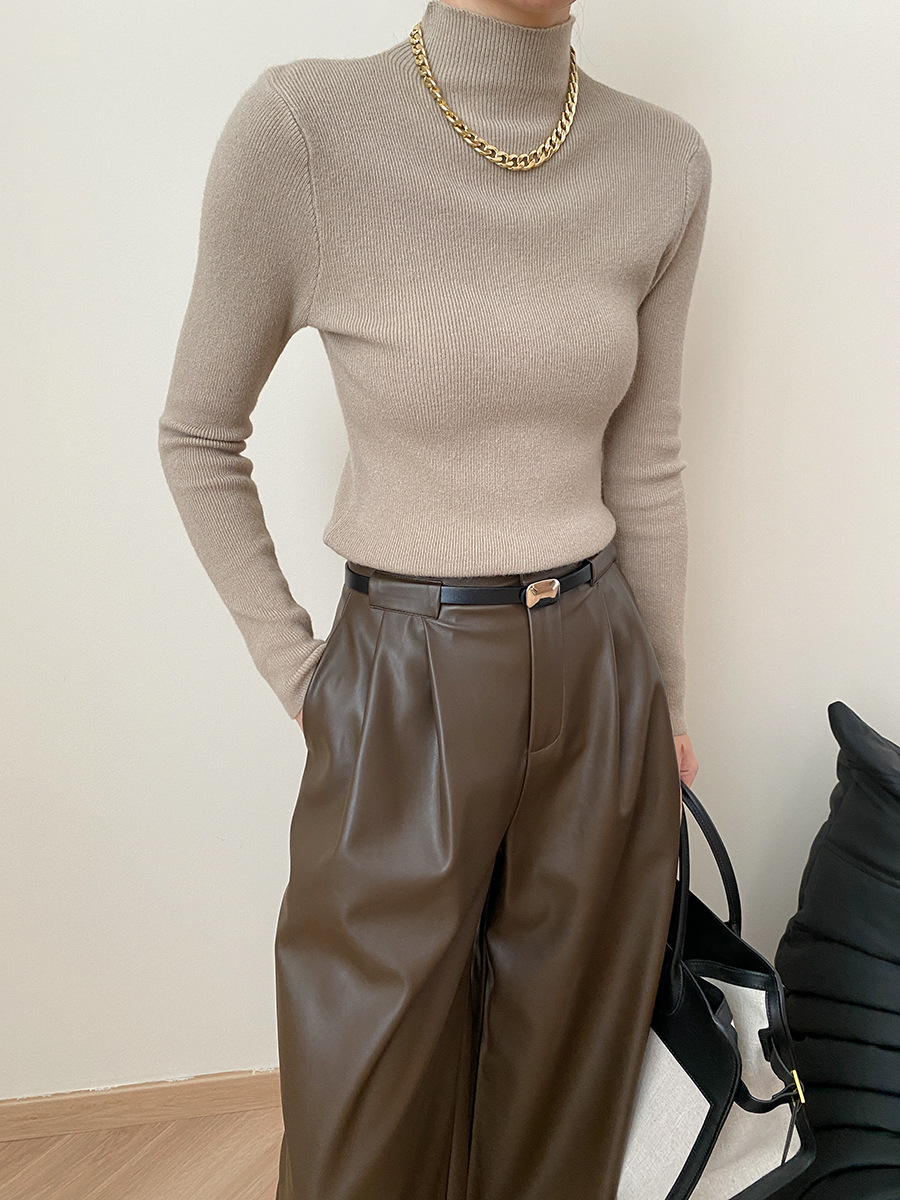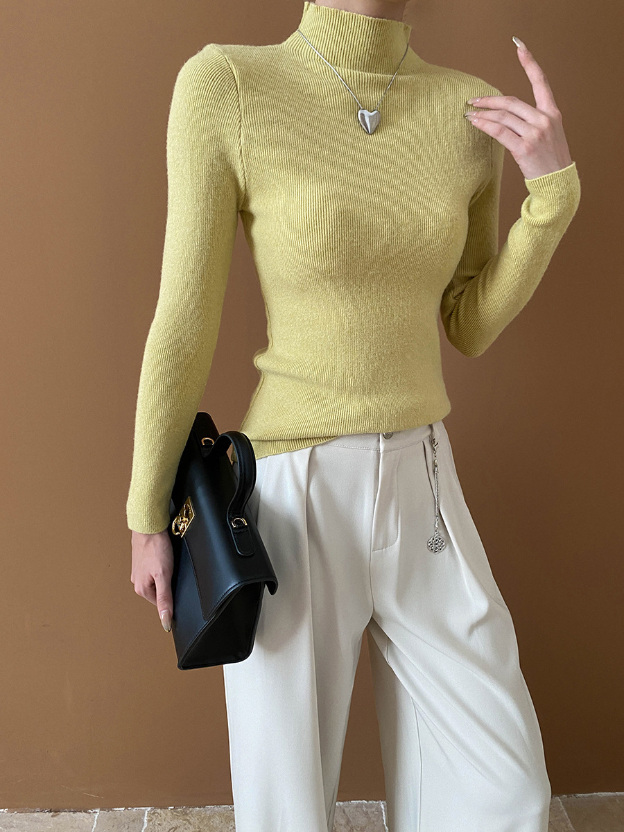 Sinan French 하이 엔드 기질 클래식 낮은 포화 중간 칼라/스택 칼라 슬림 피트 베이스 니트 SN6397