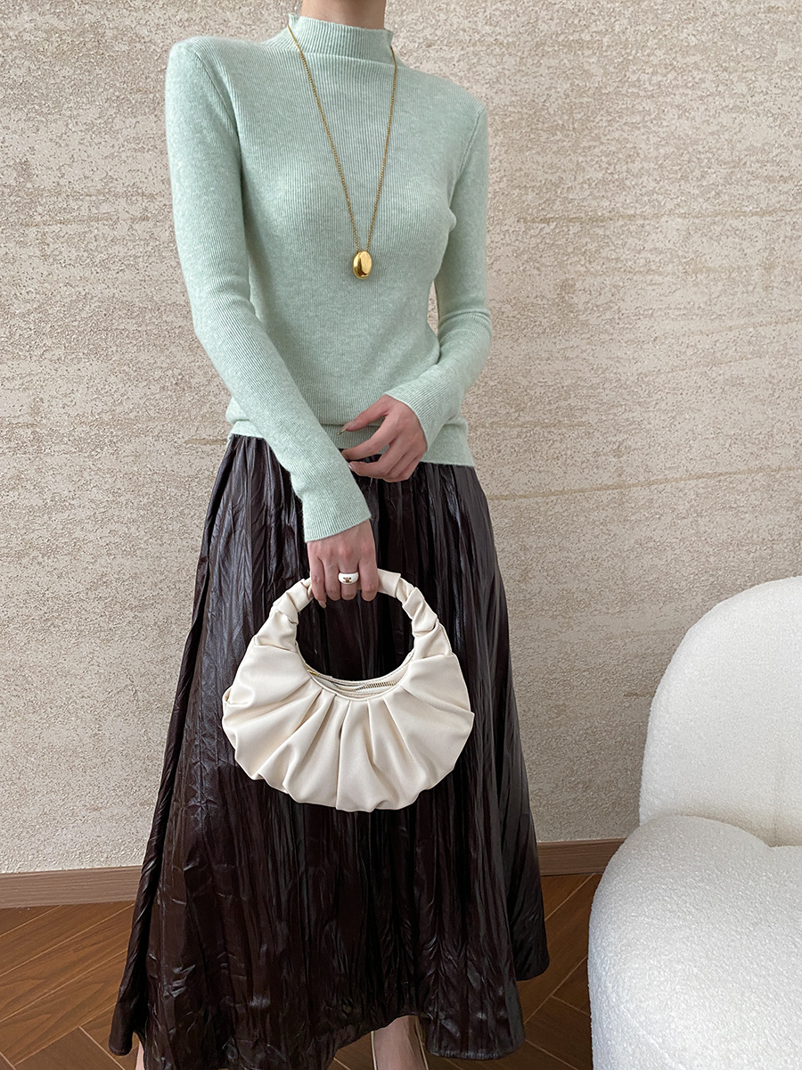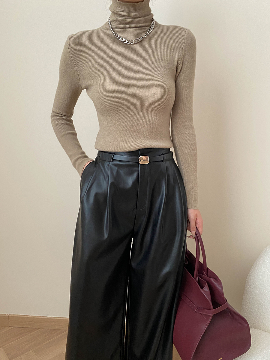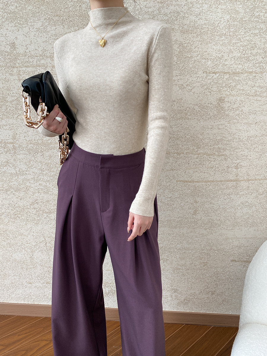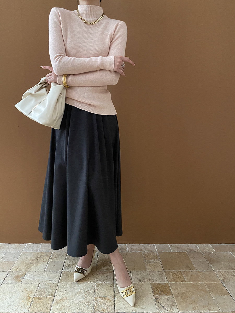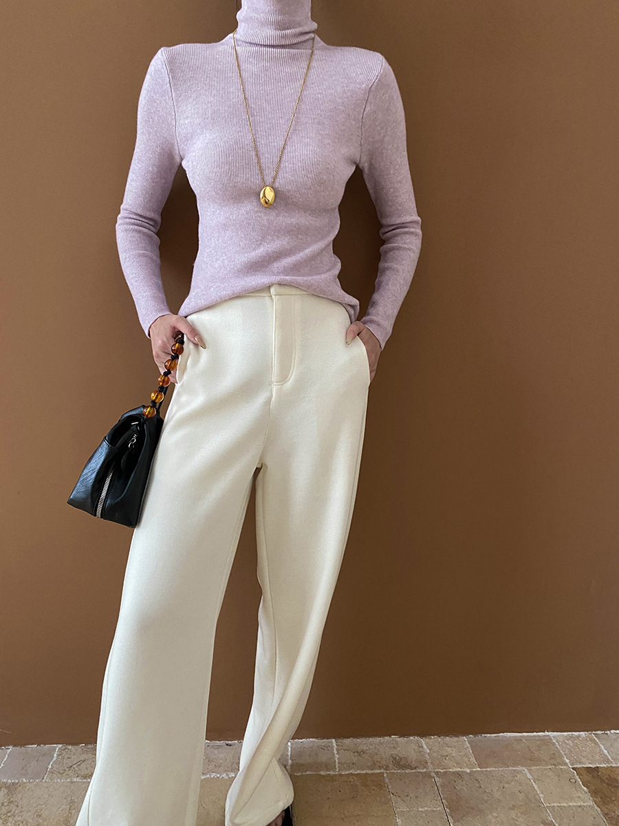 Sinan French 하이 엔드 기질 클래식 낮은 포화 중간 칼라/스택 칼라 슬림 피트 베이스 니트 SN6397