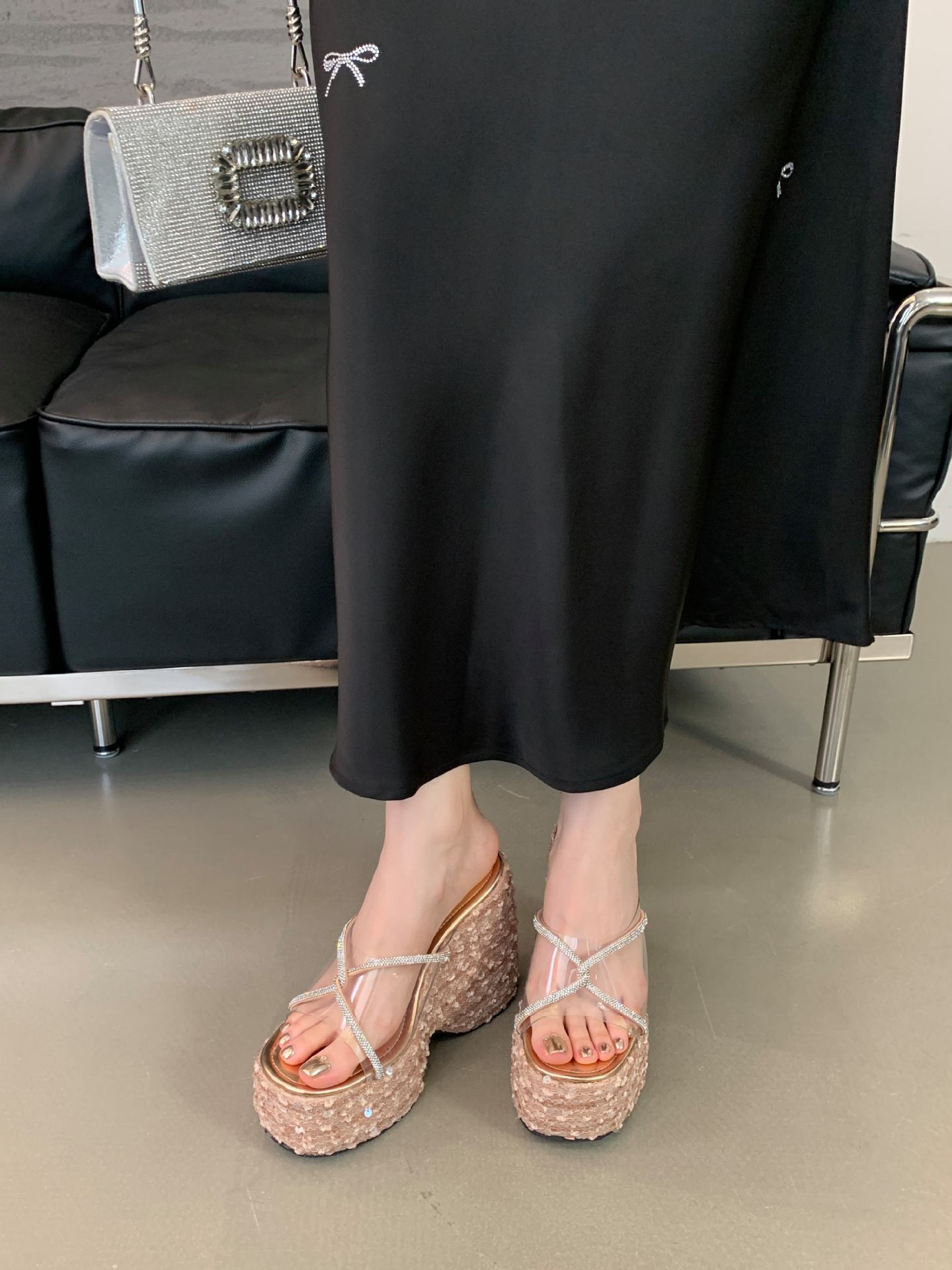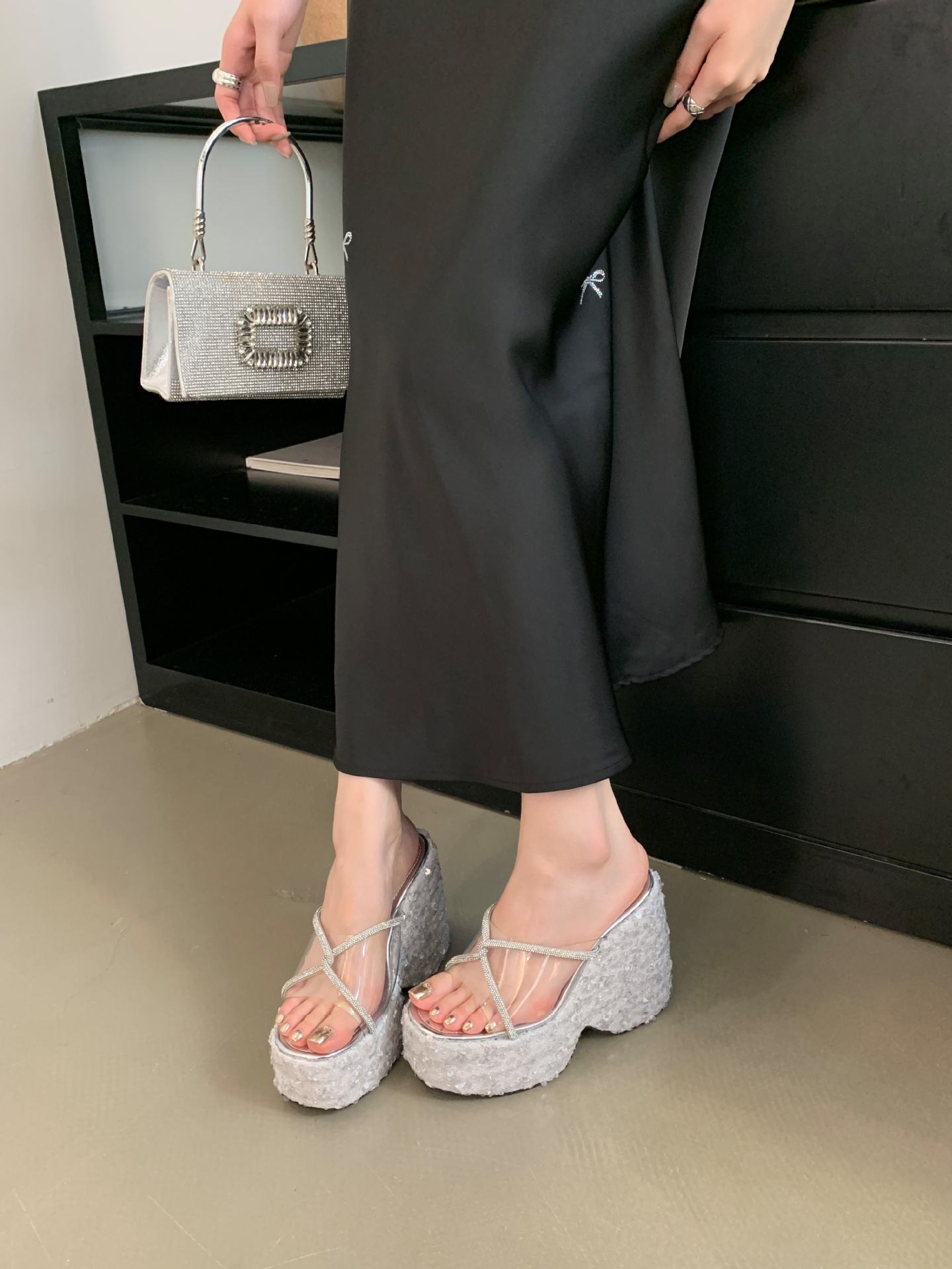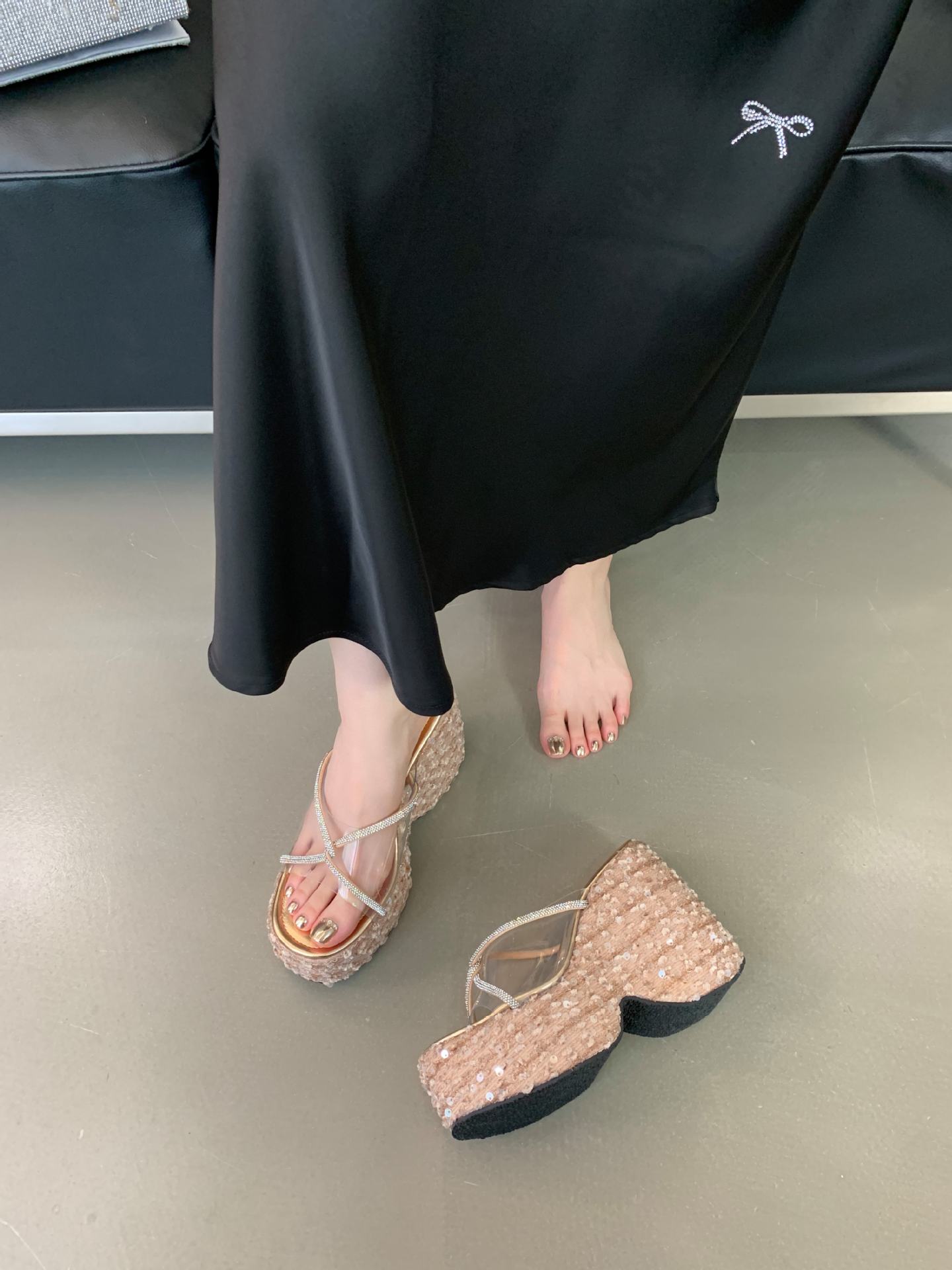 여성 플랫폼 신발 높이 12cm 복고풍 플러스 사이즈 투명 밀짚 패션 샌들 여성 여름 쐐기 슬리퍼스토어 가기