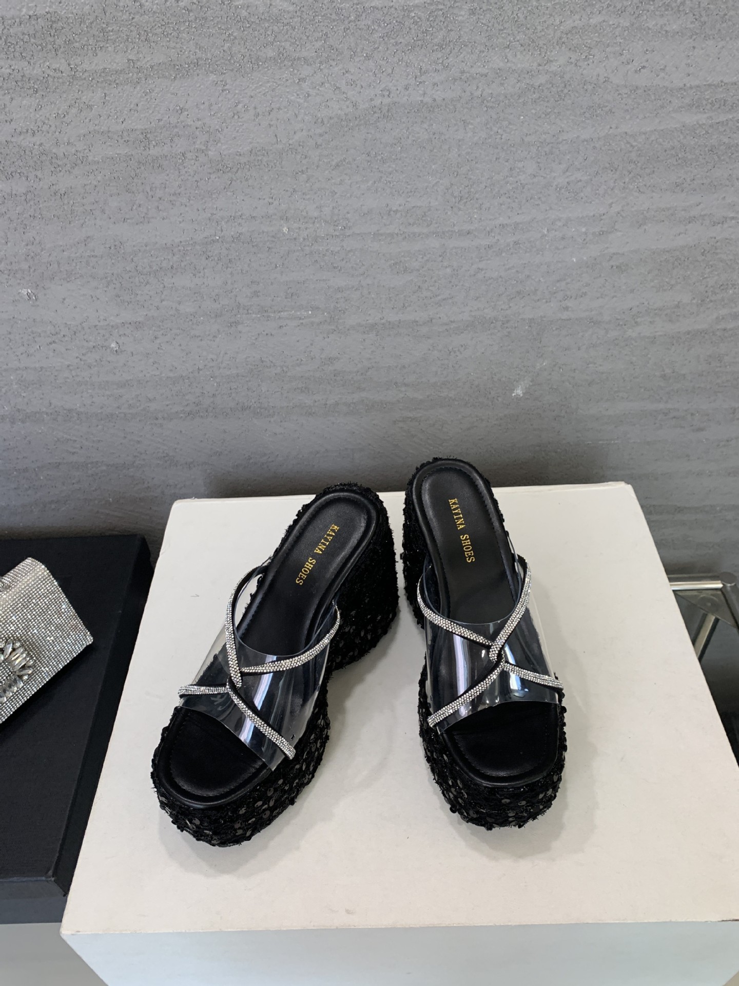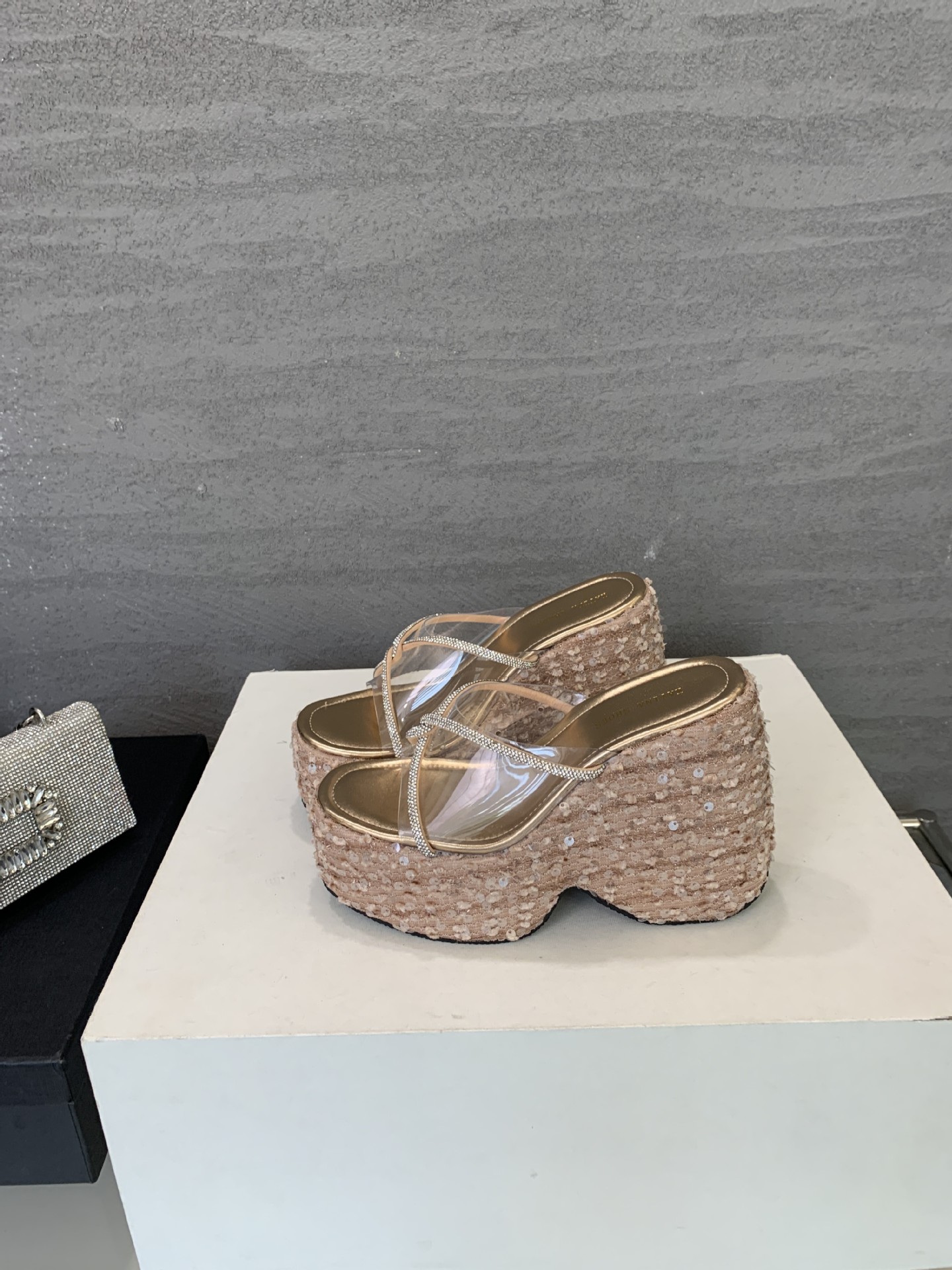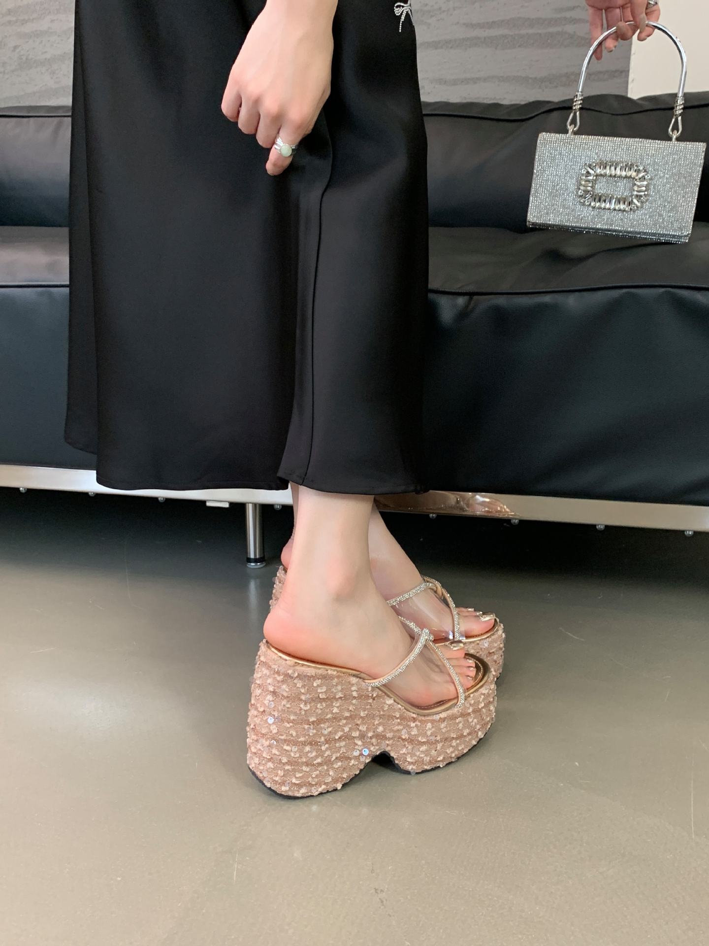 여성 플랫폼 신발 높이 12cm 복고풍 플러스 사이즈 투명 밀짚 패션 샌들 여성 여름 쐐기 슬리퍼스토어 가기