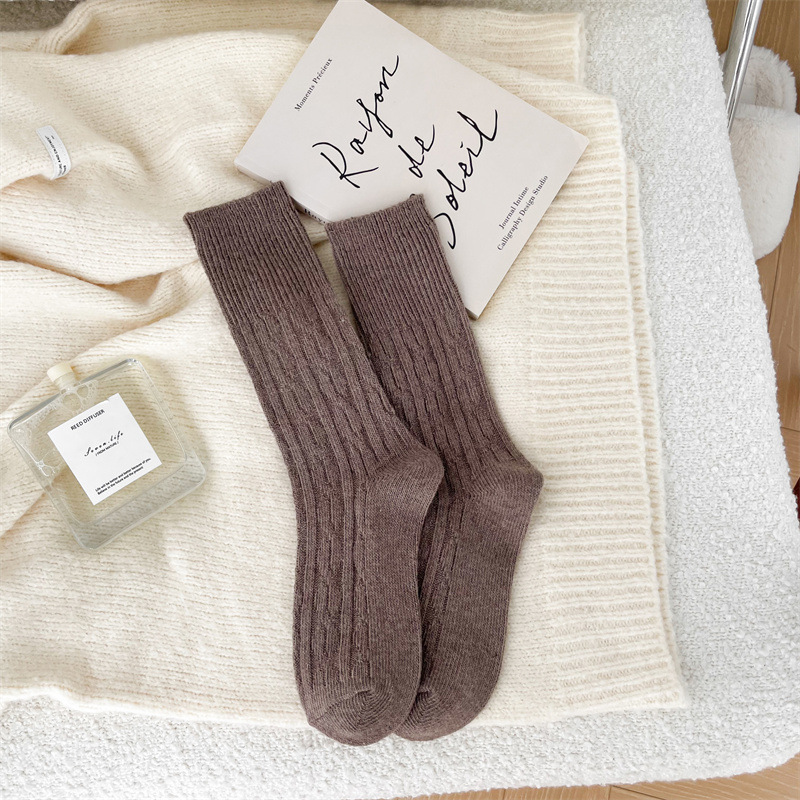 양말 여성의 가을과 겨울 빈티지 두꺼운 한국 인 대마 패턴 중간 튜브 양말 따뜻한 주름 양말 여성용 양모 단색스토어 가기