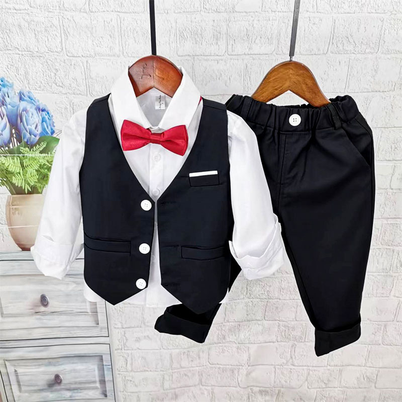 • 7088 검은색 조끼 바지 + 흰색 셔츠 (샴페인 나비넥타이 포함)