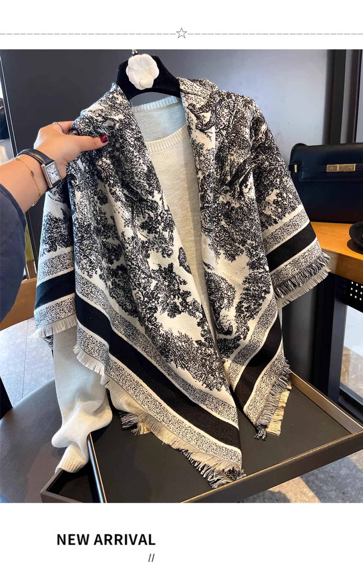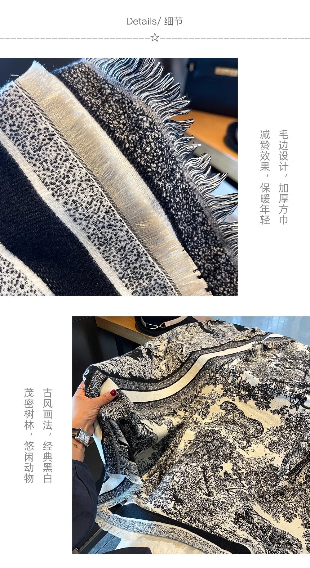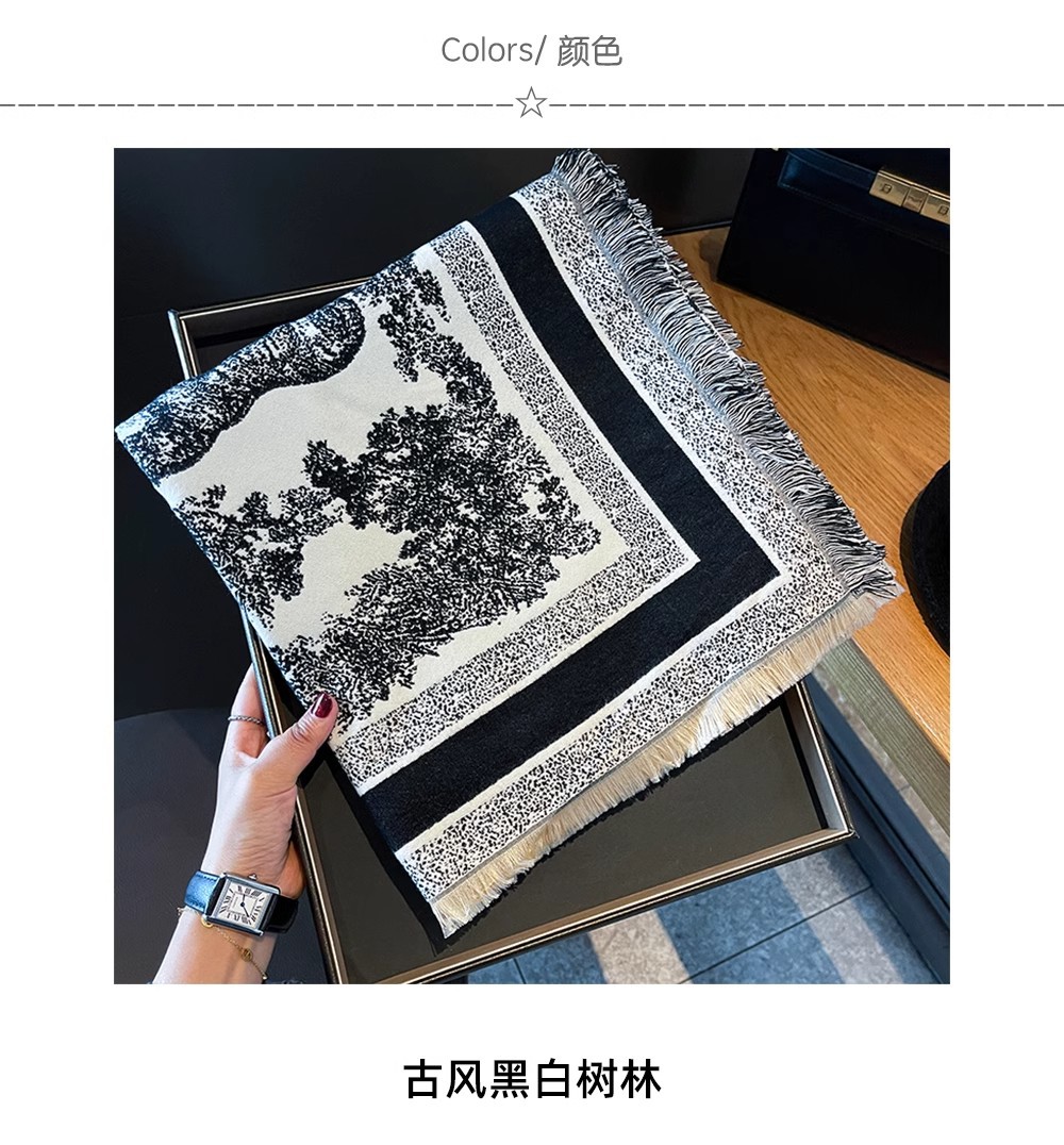 양면 캐시미어 정글 동물 최소 대형 스퀘어 스카프 여성의 겨울 고급 흑백 사무실 두꺼운 목도리스토어 가기