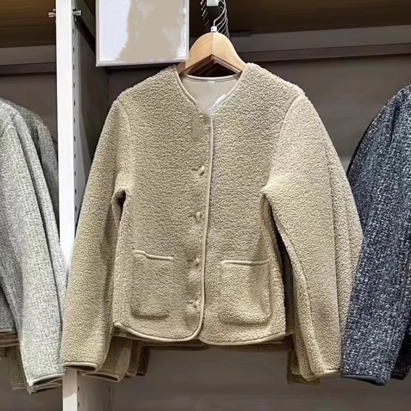뜨거운 판매 일본 싱글 여성 모조 양고기 양털 둥근 목 카디건 둥근 목 카디건 따뜻한 양털 재킷 472938