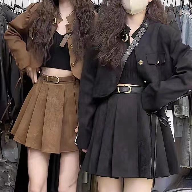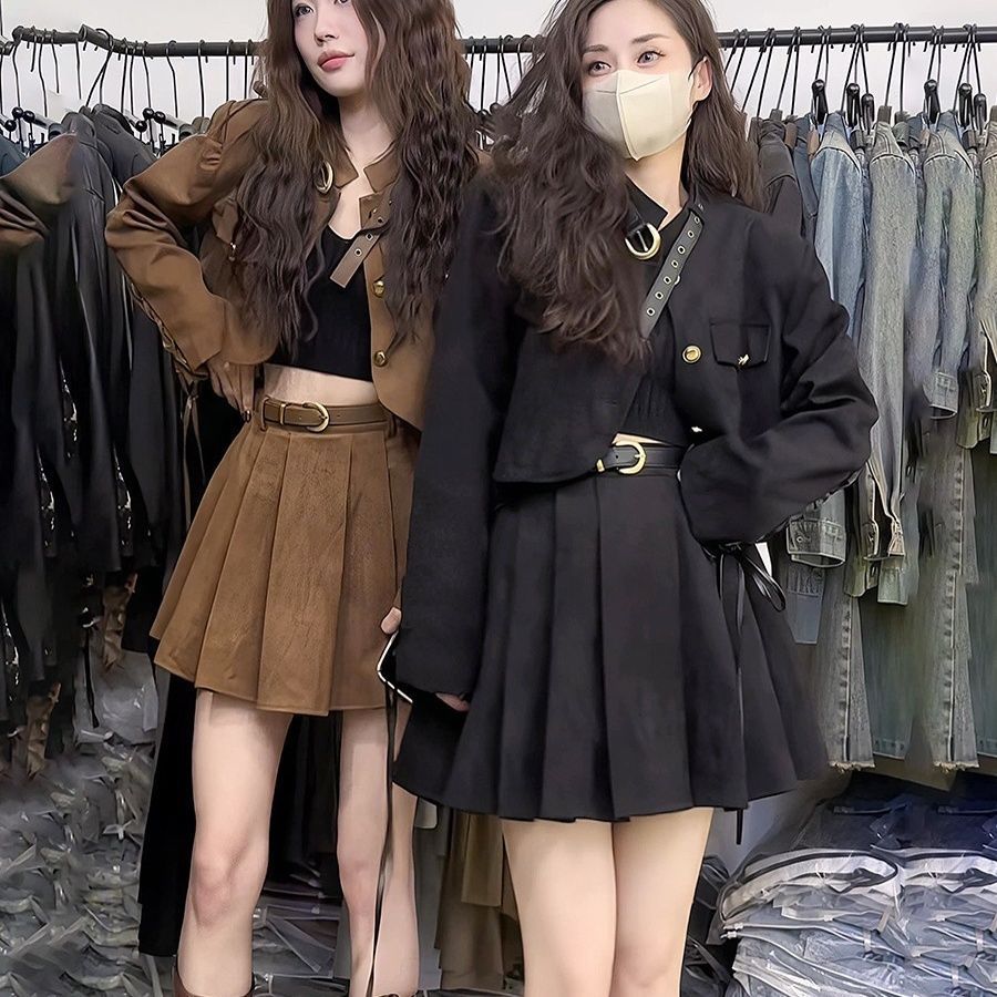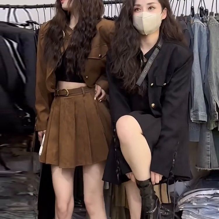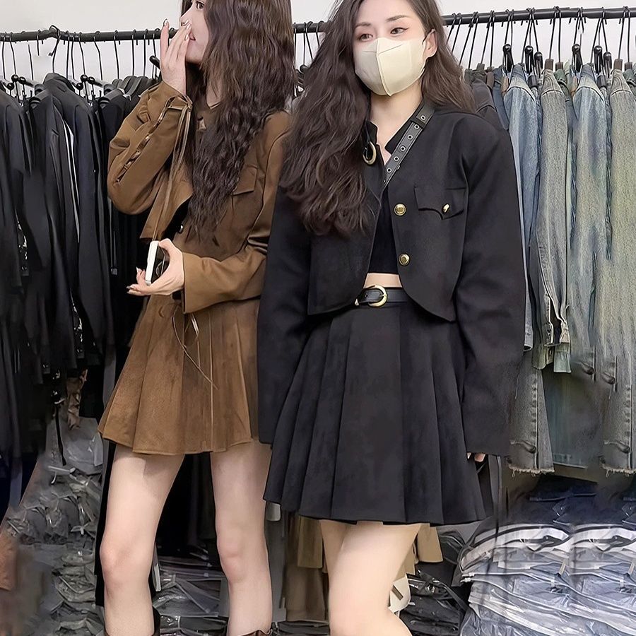 코트 주름 치마 샤넬 스타일 세트 여성 가을 새 플러스 사이즈 통통녀 디자인 센스 우아한 슬림 투피스 세트스토어 가기