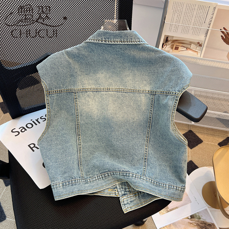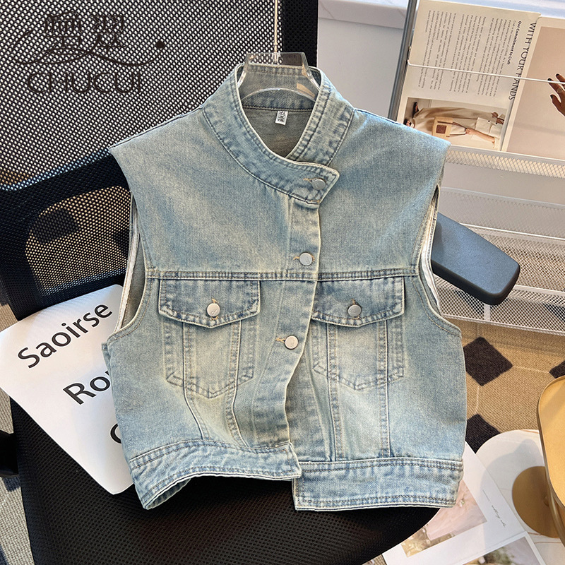 캐주얼 다재다능한 데님 조끼 여성 2024 년 여름 뉴 아우터 조끼 입고 한국 스타일 루즈 조끼 얇은 트렌디 재킷스토어 가기