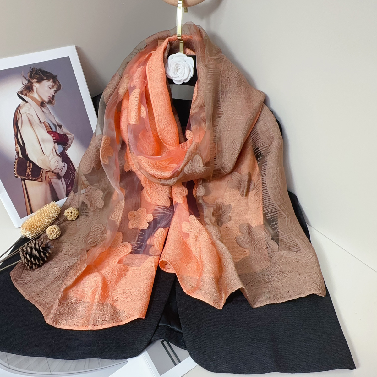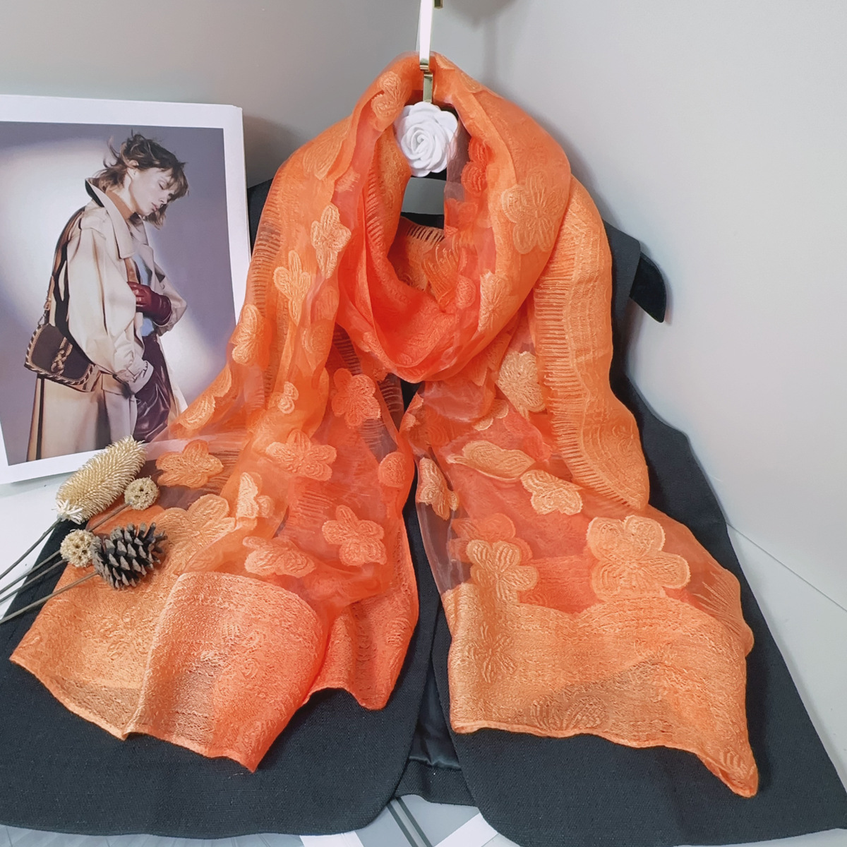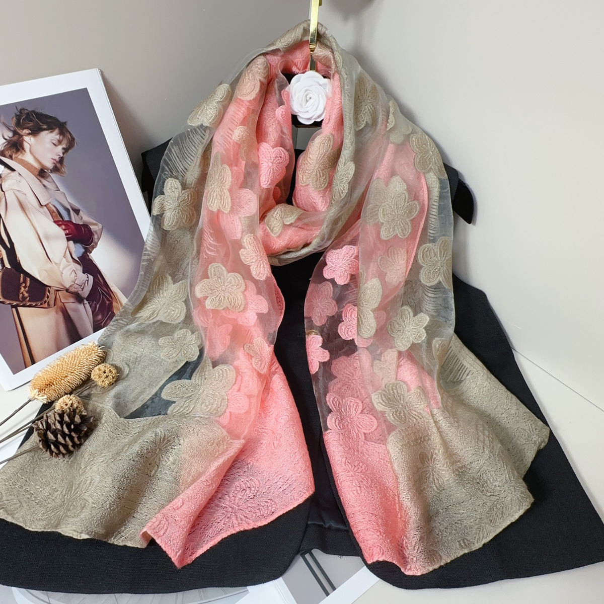 새 스타일 작은 매화 컷 꽃 그라디언트 실크 스카프 긴 하이 엔드 가을 겨울 한국 스타일 올매치 따뜻한 목도리 스카프 여성스토어 가기