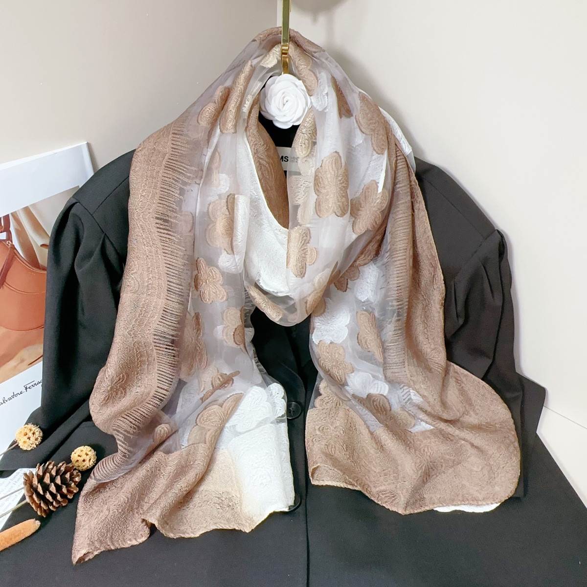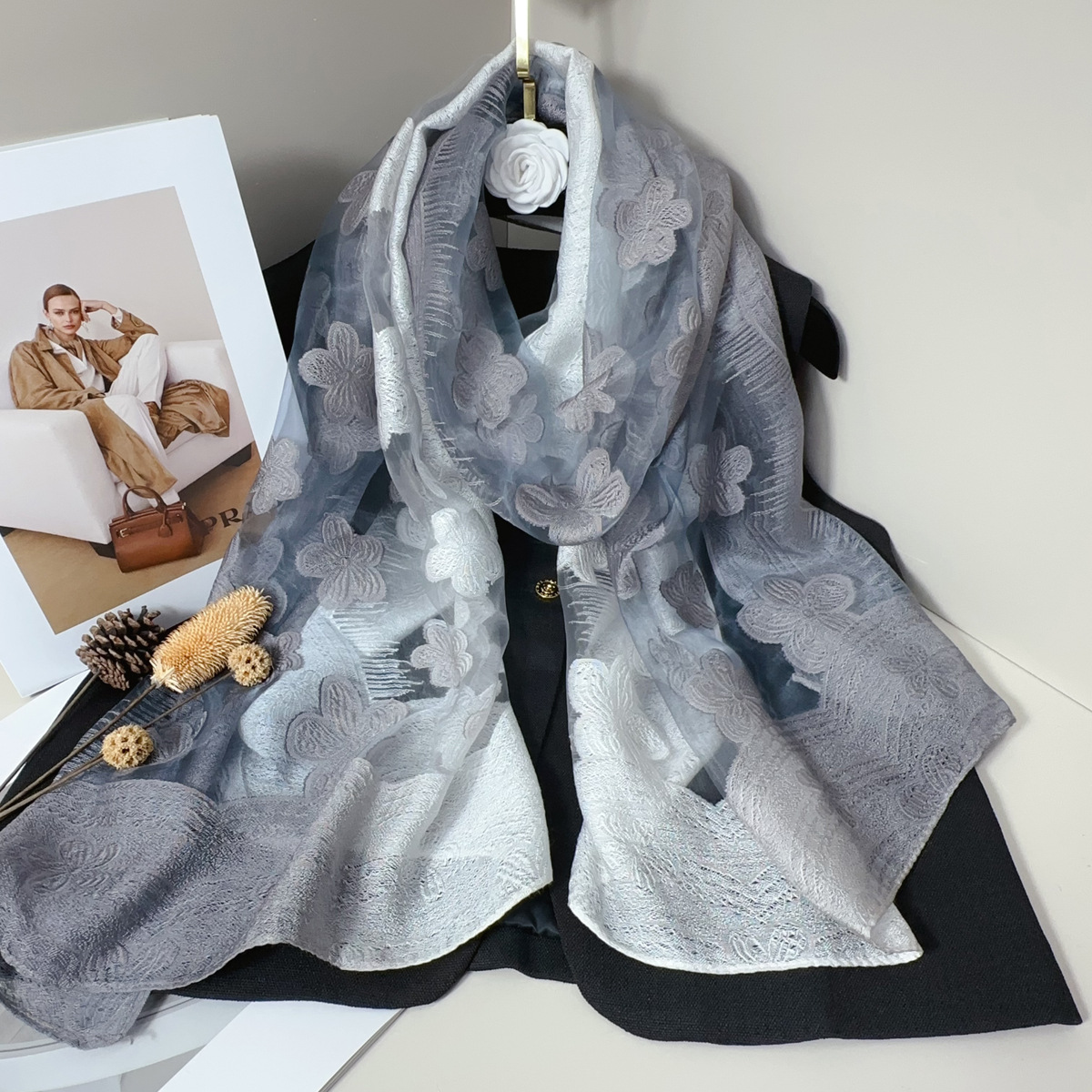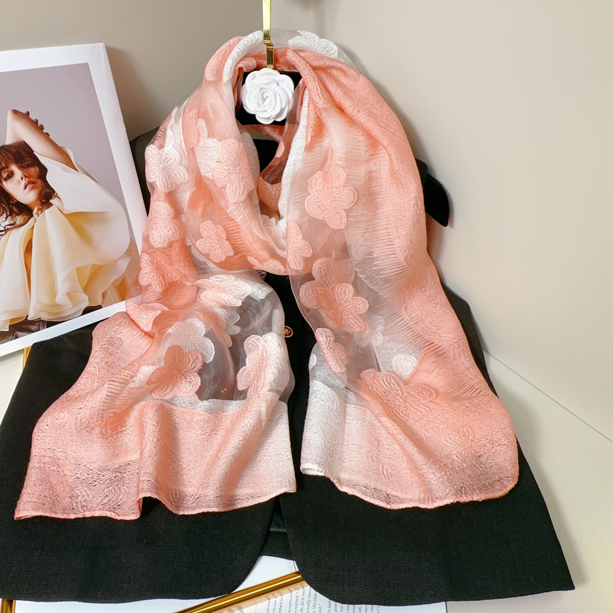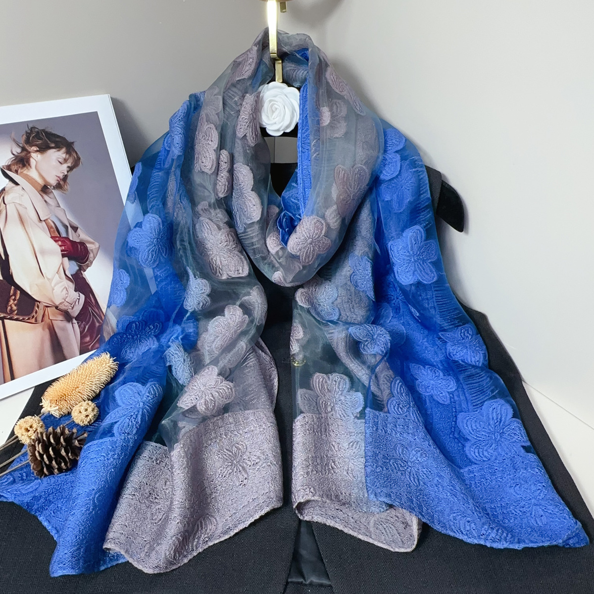 새 스타일 작은 매화 컷 꽃 그라디언트 실크 스카프 긴 하이 엔드 가을 겨울 한국 스타일 올매치 따뜻한 목도리 스카프 여성스토어 가기