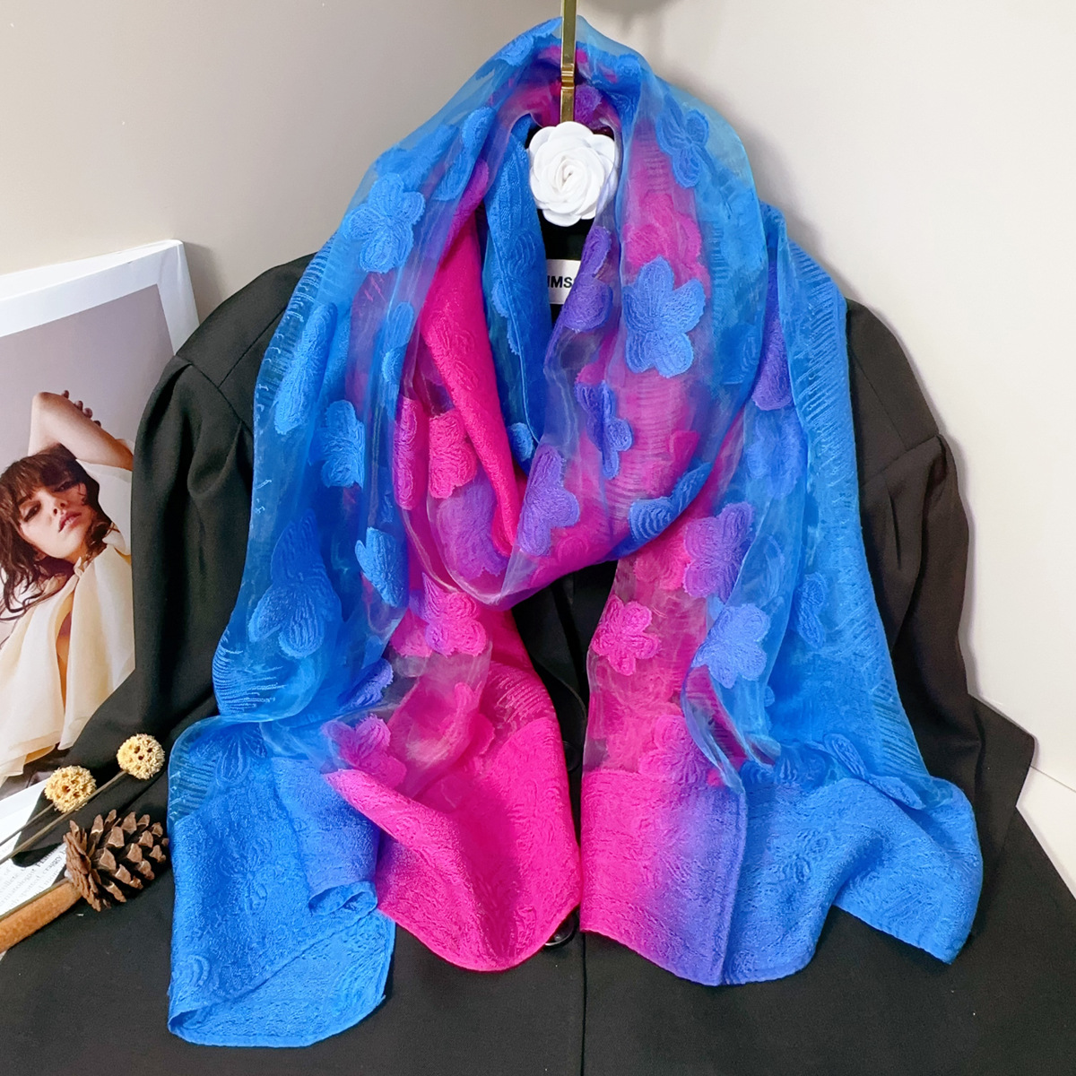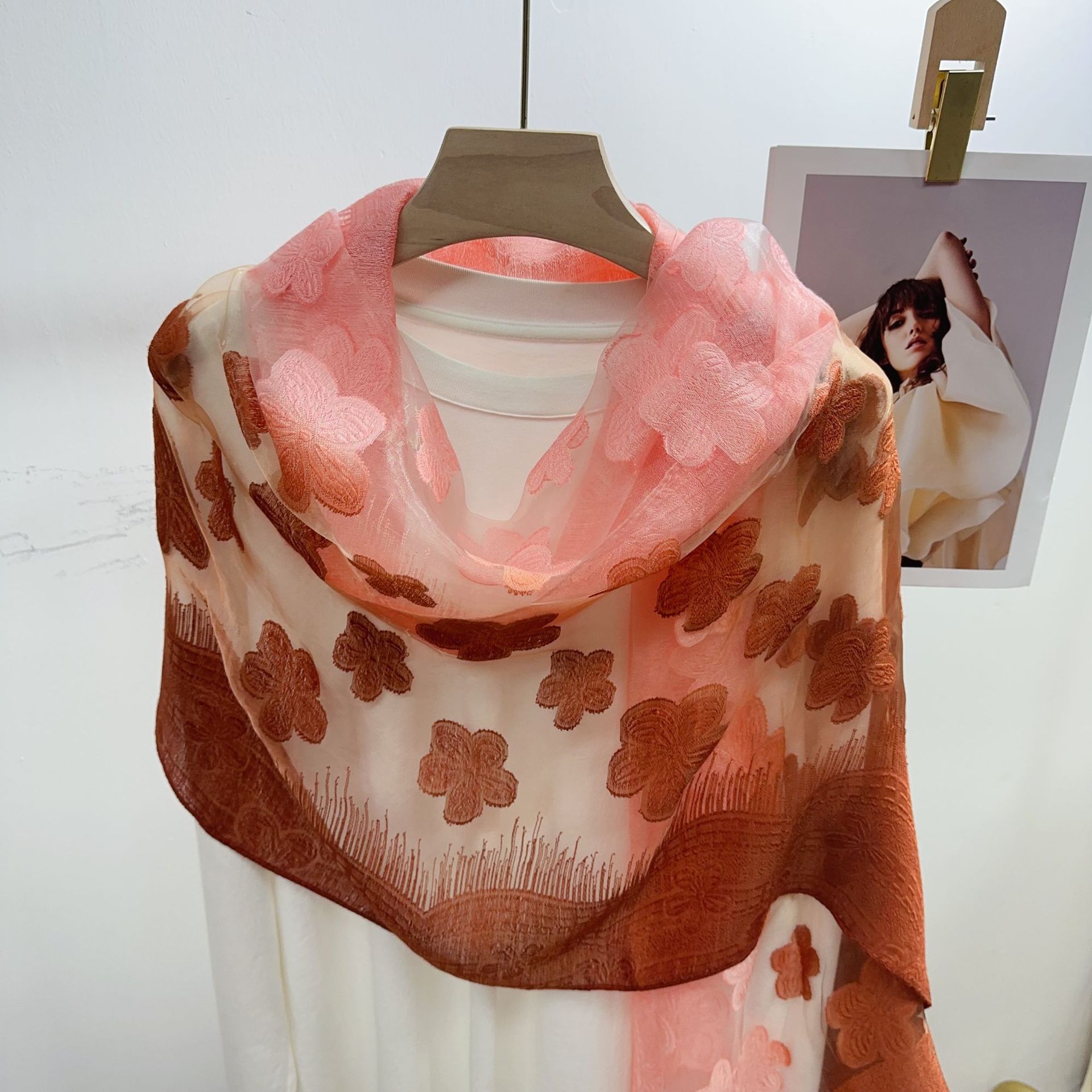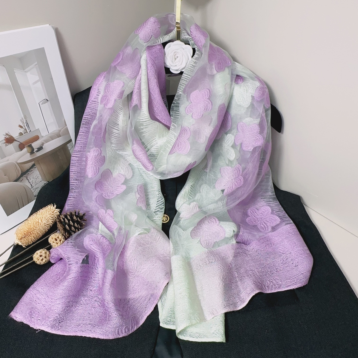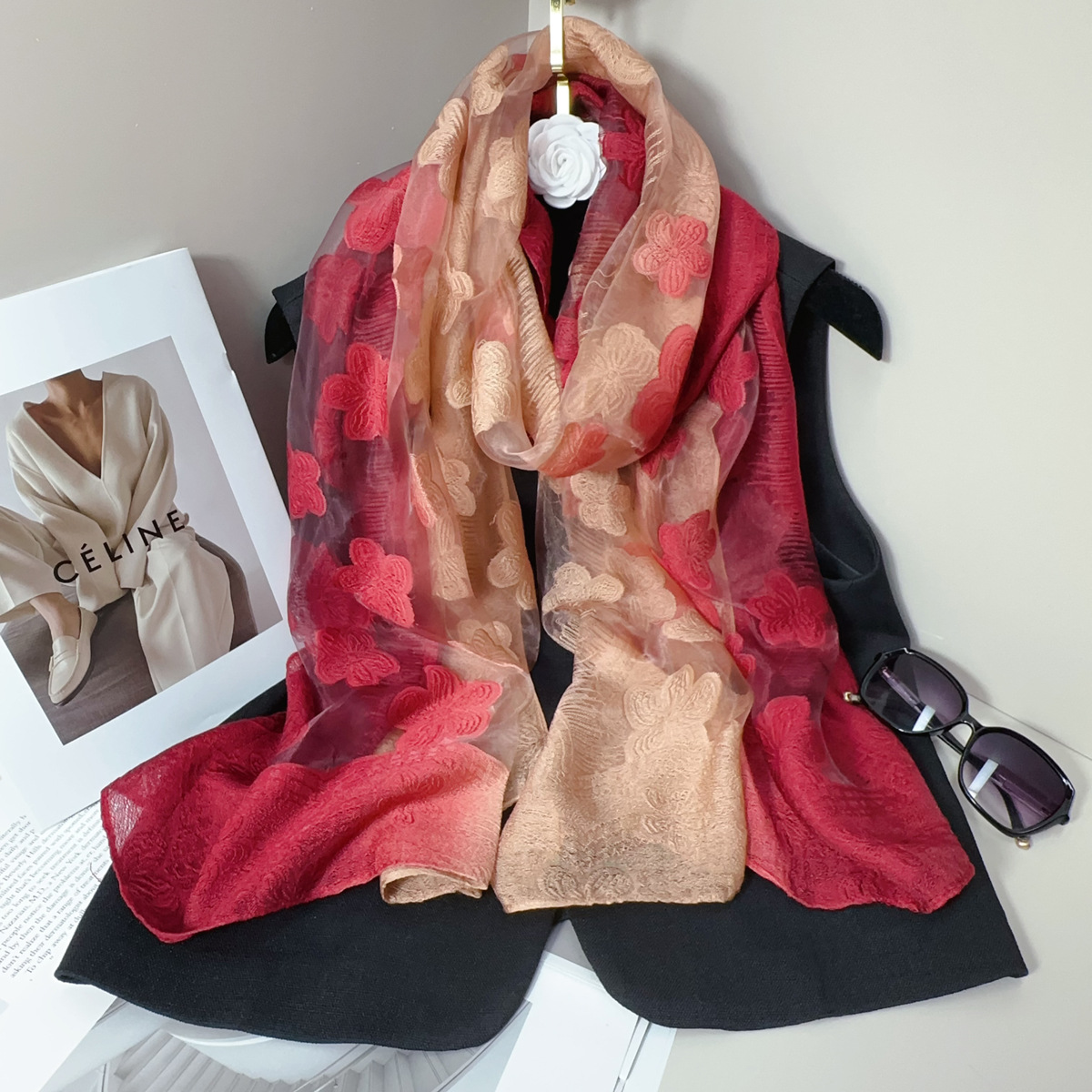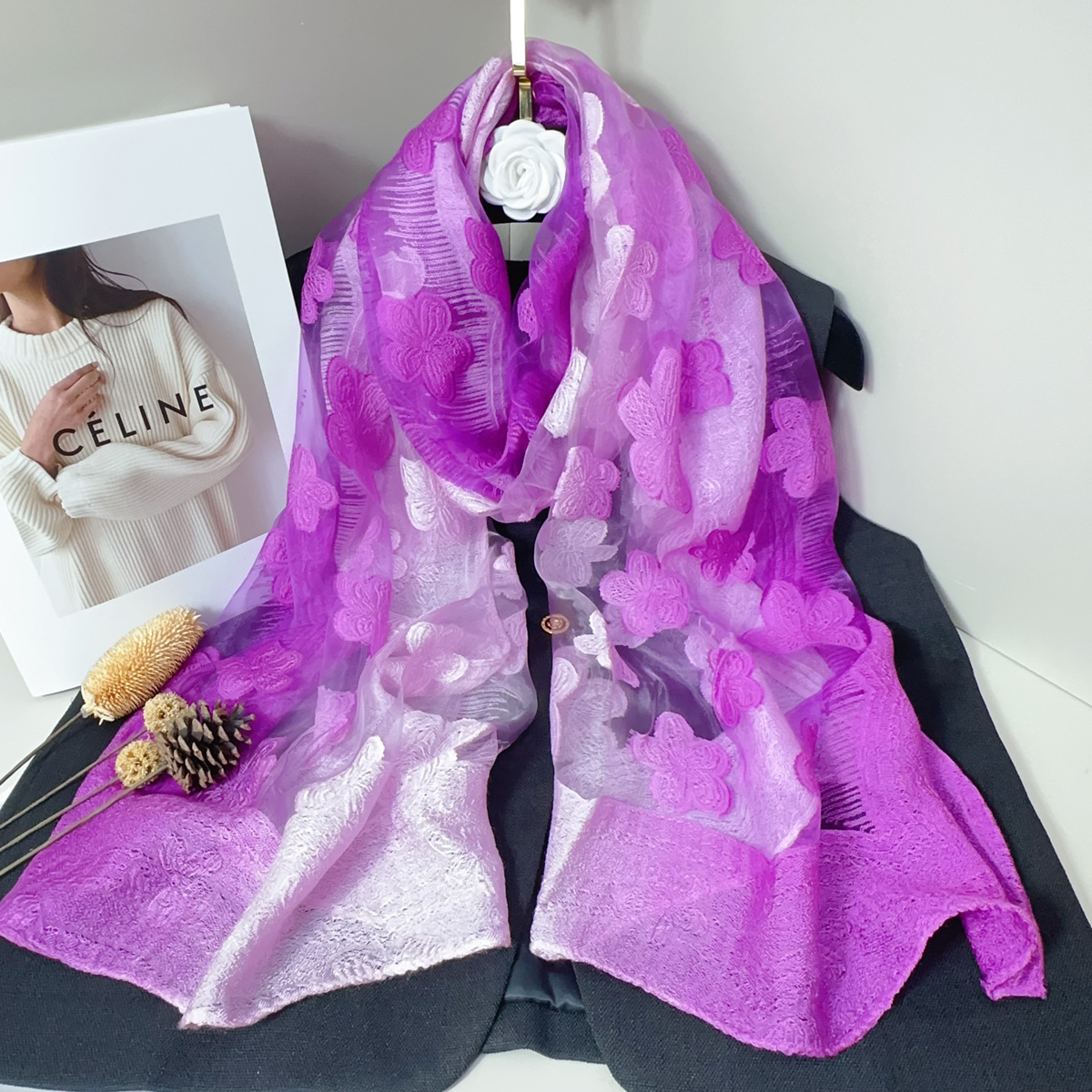 새 스타일 작은 매화 컷 꽃 그라디언트 실크 스카프 긴 하이 엔드 가을 겨울 한국 스타일 올매치 따뜻한 목도리 스카프 여성