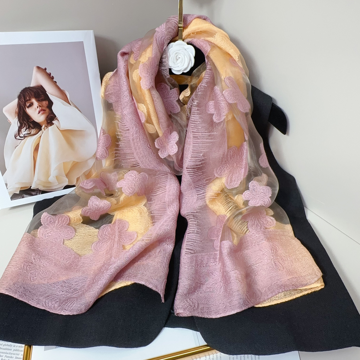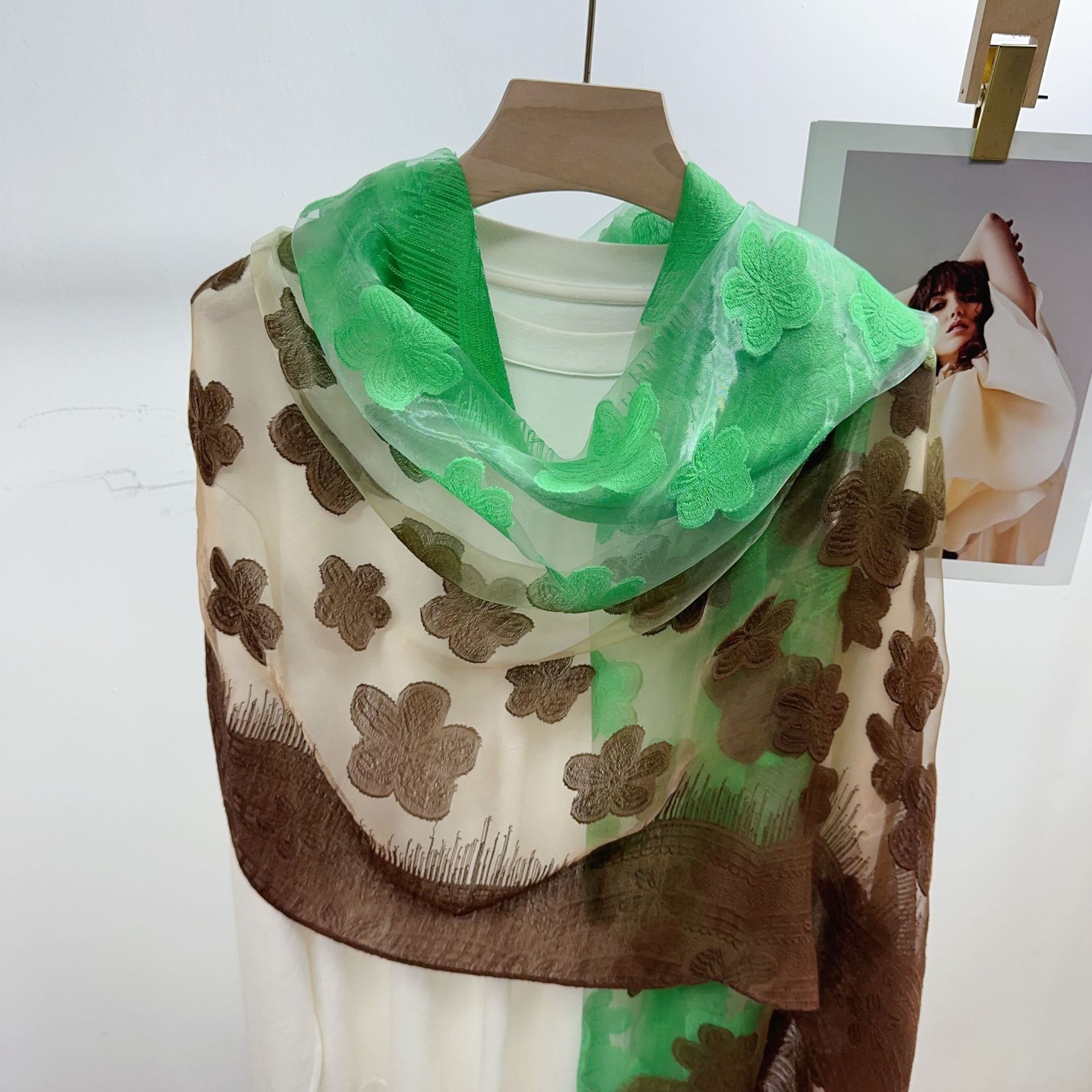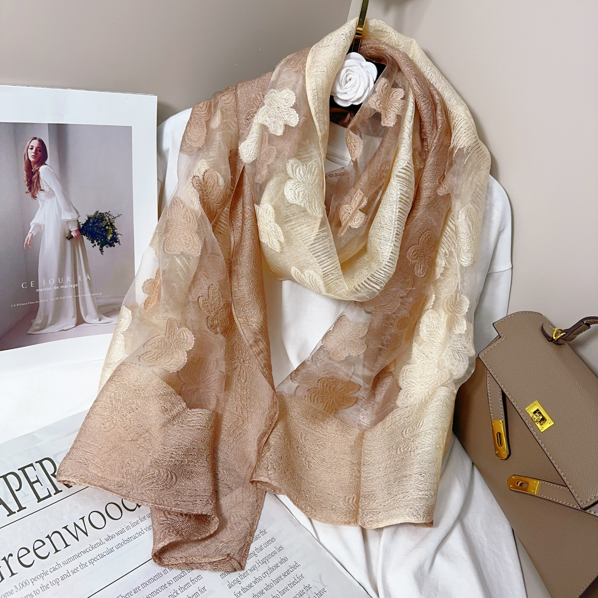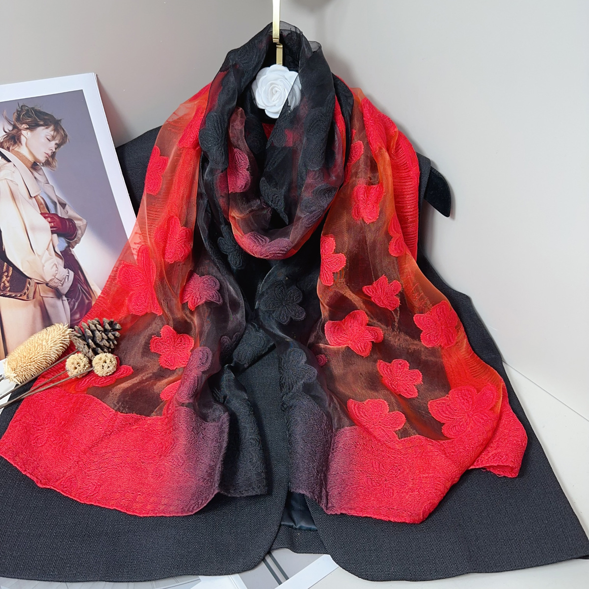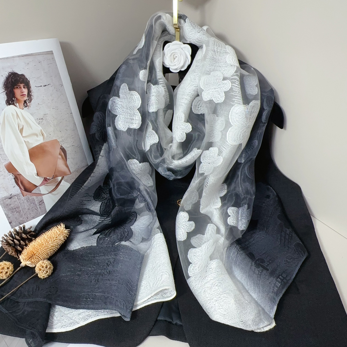 새 스타일 작은 매화 컷 꽃 그라디언트 실크 스카프 긴 하이 엔드 가을 겨울 한국 스타일 올매치 따뜻한 목도리 스카프 여성