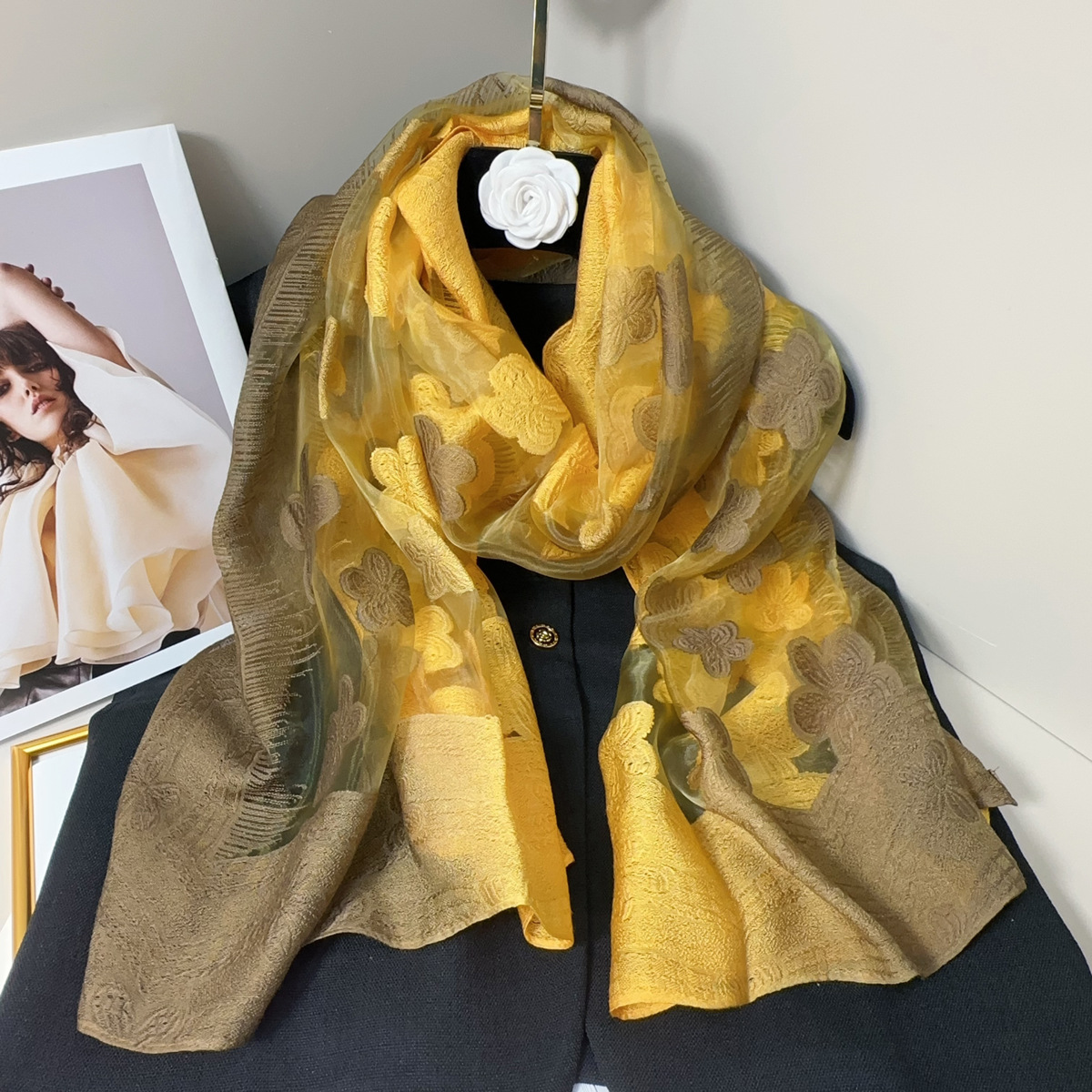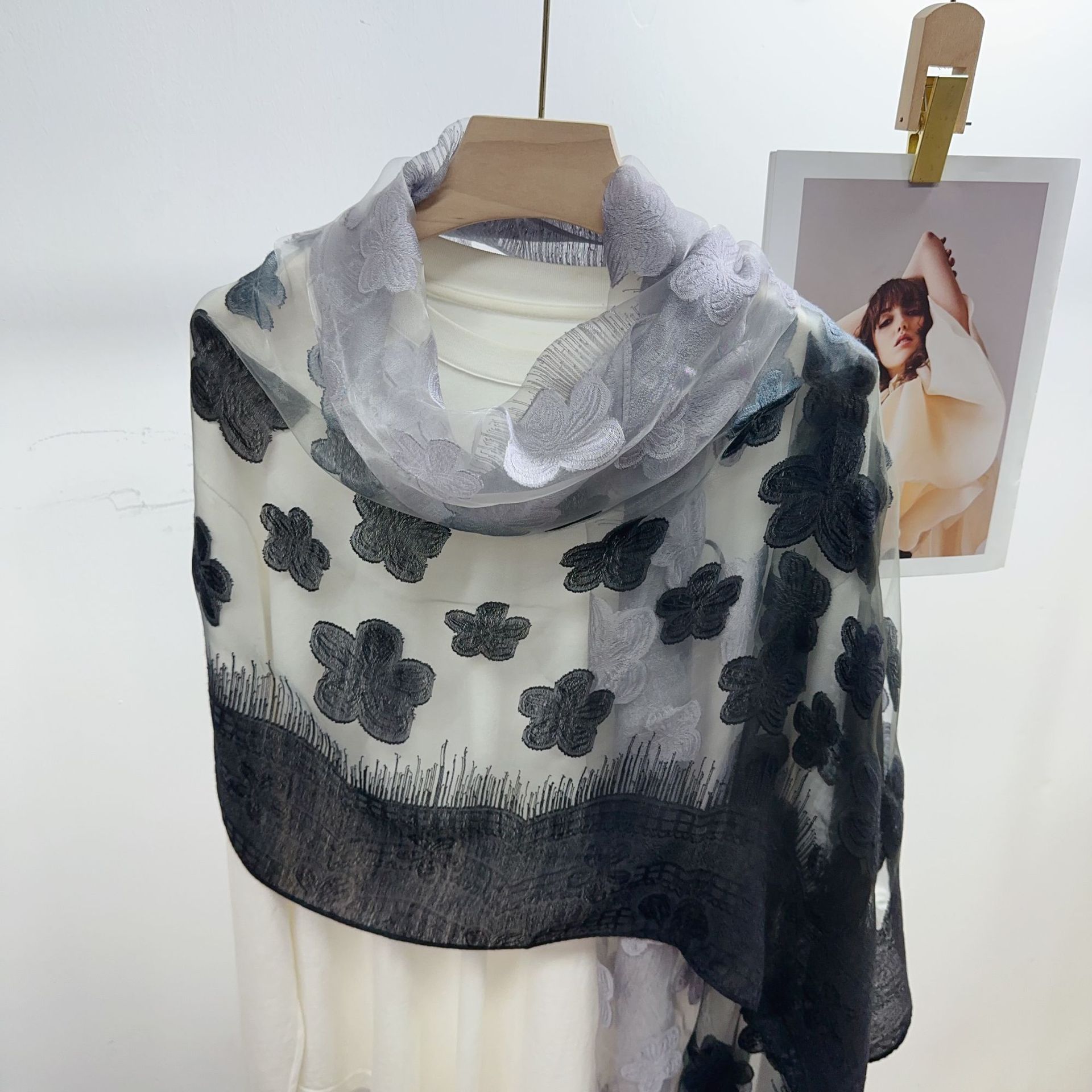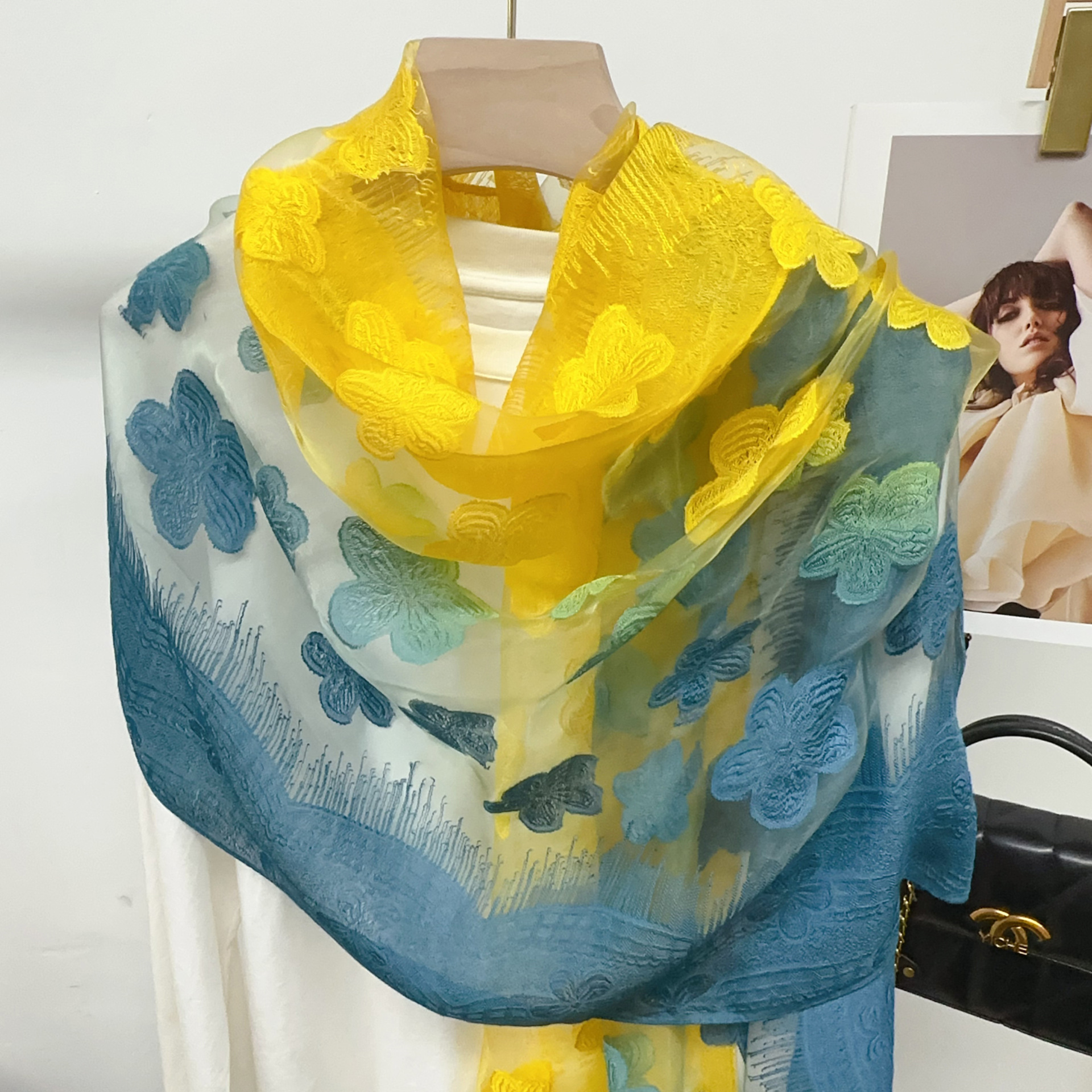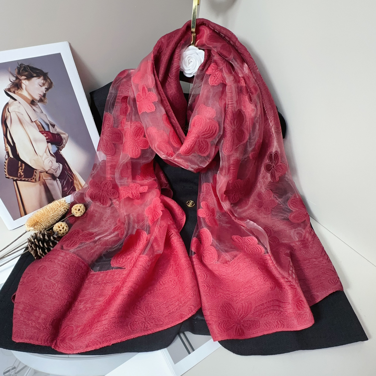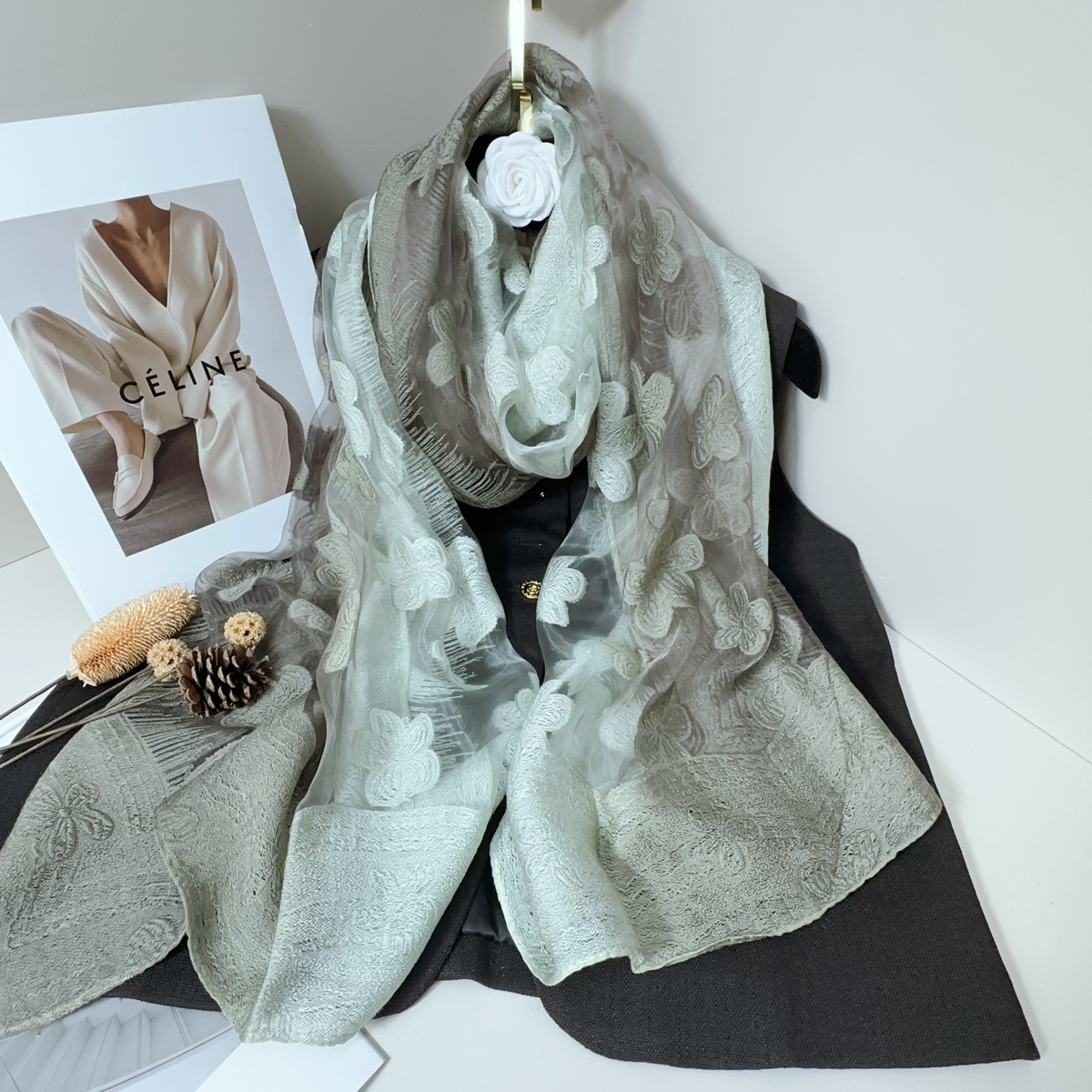 새 스타일 작은 매화 컷 꽃 그라디언트 실크 스카프 긴 하이 엔드 가을 겨울 한국 스타일 올매치 따뜻한 목도리 스카프 여성