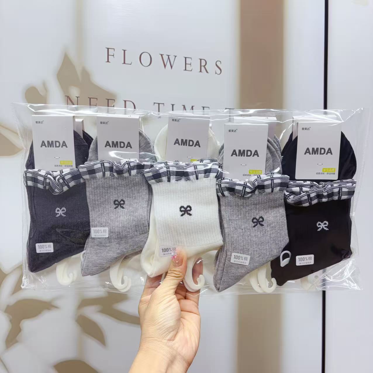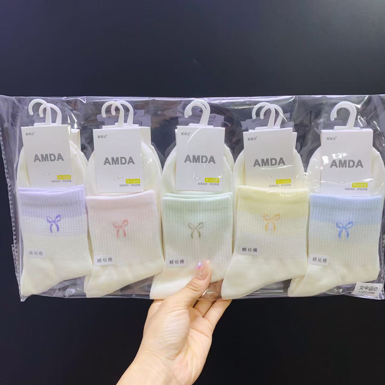 아미다 신상 가을 겨울 여성 양말 중목 스포츠 양말 일본 학생 귀여운 리본 심플 면 양말스토어 가기