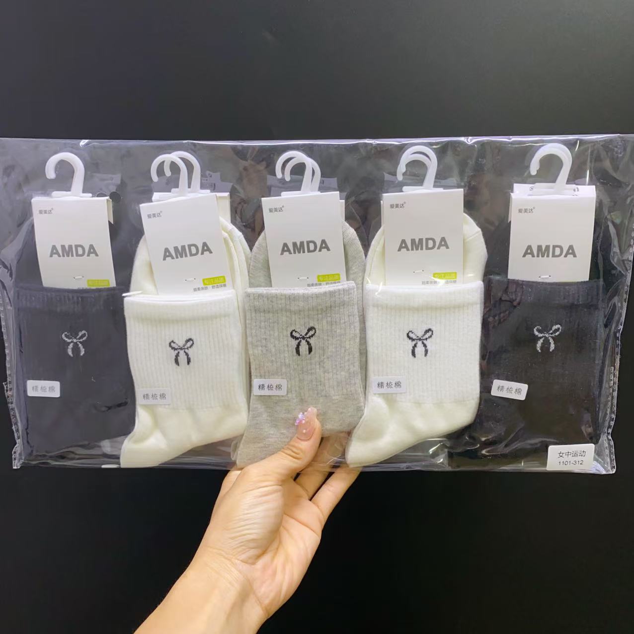아미다 신상 가을 겨울 여성 양말 중목 스포츠 양말 일본 학생 귀여운 리본 심플 면 양말