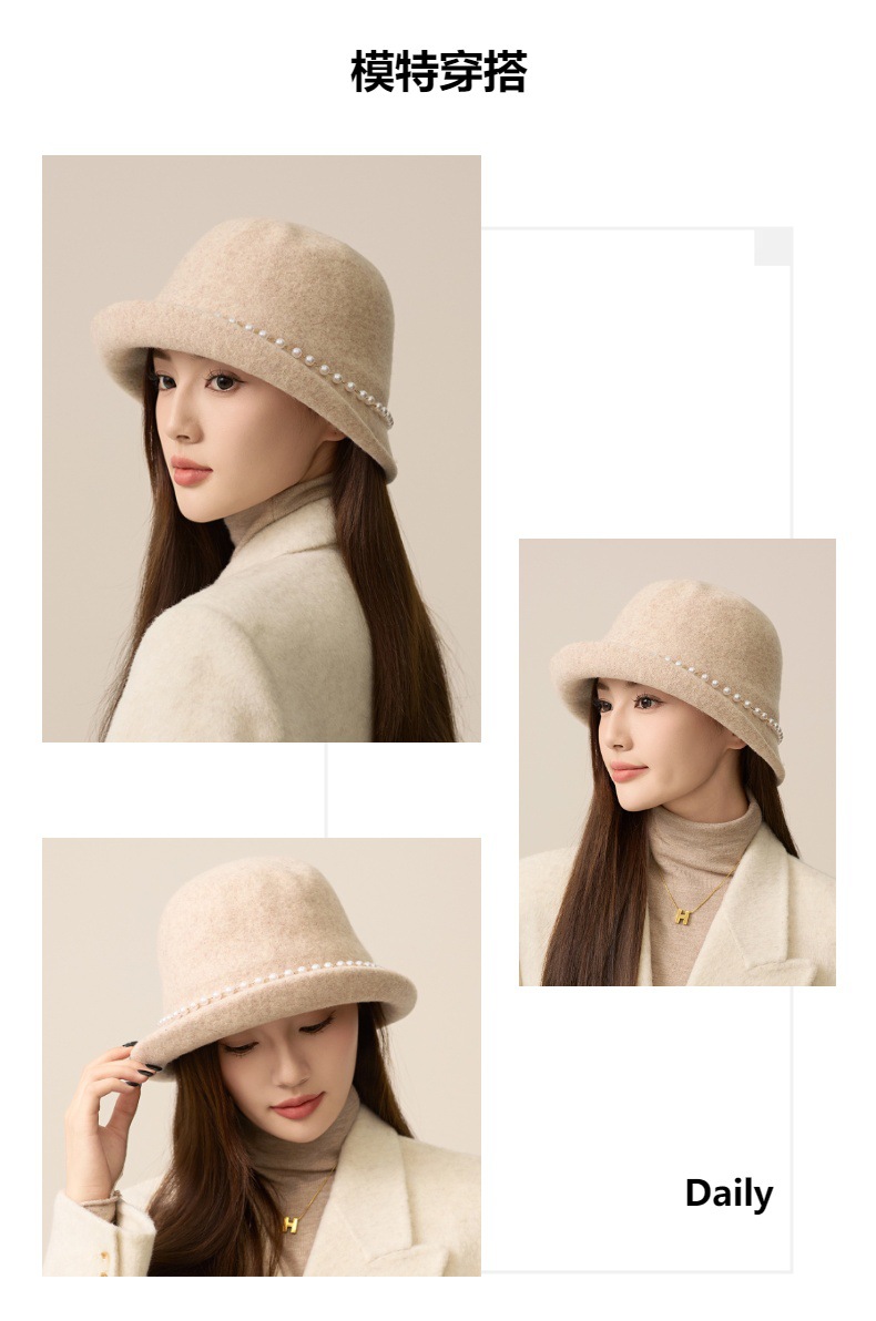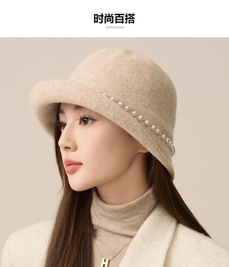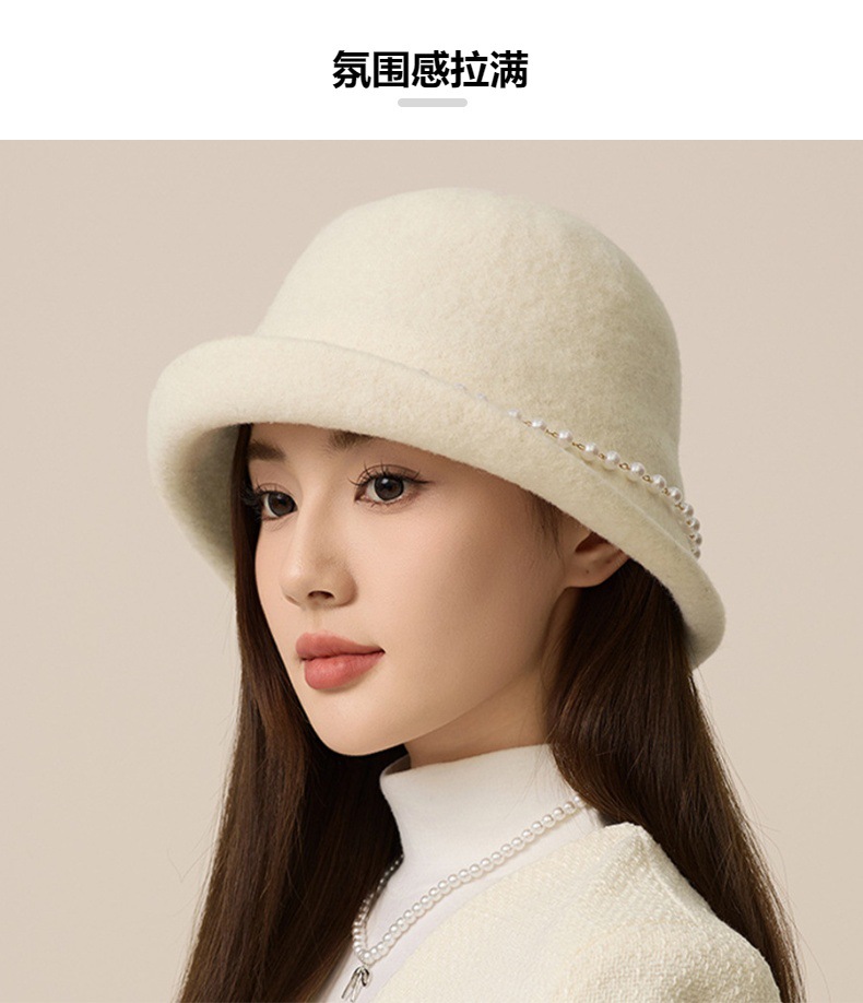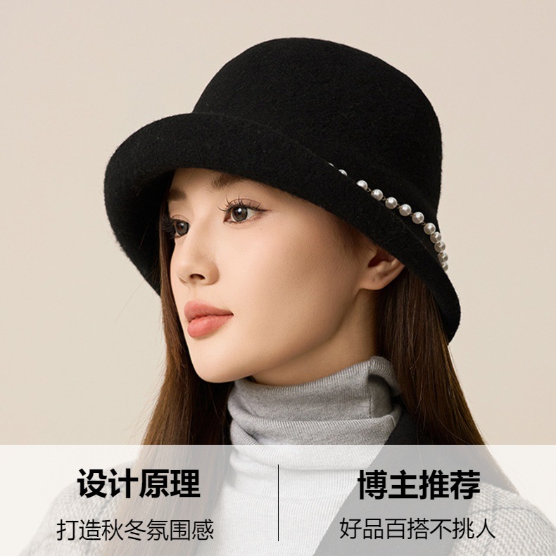 사교계 샤넬 진주 울 탑 모자 프랑스 우아한 돔 기질 분지 모자 가을과 겨울 따뜻한 모자 공장스토어 가기